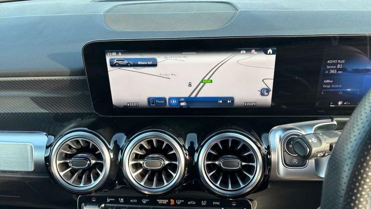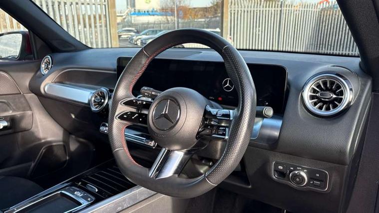 10.25 inch touchscreen central media display, 10.25" Digital instrument cluster display screen, 12 ultrasonic sensors in front and rear bumpers, 180 degree reversing camera with parking guidelines, Additional drive program "OFF-ROAD", Assisted parking: reversing backwards into perpendicular and parallel parking spaces, Attention assist - Monitors steering behaviour and long journey fatigue, Blind spot assist, Bluetooth connection, Brake pad wear indicator warning light, Car wash mode, Convenience opening and closing, Direct steering, DYNAMIC SELECT with a choice of driving modes (ECO, Comfort, Sport and Individual), ECO start/stop function, Engine start/stop button, Exit warning function, Fluid level warning indicator for fuel, oil, coolant and washer fluid, Hard disk navigation, Hey Mercedes Voice activation, Lamp failure indicator, Lane keep assist, MBUX navigation premium, Mercedes me connect including emergency call system, accident recovery, breakdown and maintenance management, Mercedes me remote services, Outside temperature gauge, Owners manual and service booklet in English, Pre-installation of private car share, Preinstallation for parking damage notification, Radio aerial integrated into front and rear windshields, Remote boot closing, Service indicator (ASSYST), Smartphone integration with Apple CarPlay and Android auto, Speed limit assist, Tailgate, Trip computer in multifunction display with current consumption indicator, Ultrasound sensors - positioned in the handle of the tailgate, Wireless charging, Comfort suspension with ride height lowering, Rear axle multi-link, 1 USB-C port in the oddments compartment (Charge + Data transfer), 2 USB-C ports for the rear on the centre armrest (Charge only), 2 USB-C ports under the front centre armrest (Charge + Data transfer), DAB digital radio tuner, MBUX multimedia system, Mercedes Benz sound system (225 W) with 10 speakers, 1 central speaker, speakers on doors, a tweeter on door, one sub woofer + boost amplifier, Pre installation for Mercedes Benz Link, Adaptive brake lights, Adaptive high beam assist, AMG front apron with front splitter in the colour of the vehicle with chrome trim element, AMG rear apron with visible tailpipe trim and chrome trim element, AMG specific/dual flow exhaust pipes in chrome (non-functional), Auto dimming rear view mirror, Beltline trim and window line trim strip in high gloss aluminium, Black grained side sill trim with chrome inlay, Body coloured door handles, Electric adjustable and heated door mirrors with integrated LED side indicators, Electric folding door mirrors, Front and rear electric windows, Headlamp assist automatic headlamp activation, Heat insulating dark-tinted glass starting from B-pillar, Heated glass rear windscreen + timer control, High level LED third brake light, Illuminated door sill panels with Mercedes-Benz lettering, Interior mirror with black reading lamps and frameless, LED high performance headlamps with integrated LED daytime running lights, LED tail lamp, Polished aluminium roof rails, Radiator grille as a diamond grille with chrome pins and central Mercedes star, Rain sensor windscreen wipers, Rear fog lamp, Rear side wing doors, Rear wiper, Single louvre in matt grey with chrome inserts and black highlights, Two visible tailpipe trim elements exhaust, Ultrasonic sensors - positioned in the front and rear bumpers, Wheel arch liners in the colour of the vehicle, 12V socket in the oddments compartment, 3 seat bench in 2nd row, 3 twin spoke flattened multifunction steering wheel in nappa leather - horizontal twin spoke in high gloss black, vertical twin spoke in silver chrome, 4 way adjustable lumbar support, 40:20:40 split folding rear seats, Air conditioning - Two zone thermotronic luxury automatic climate control with display, Air vents with silver chrome surrounds, AMG floor mats, AMG sports pedals with brushed stainless steel surfaces and black rubber studs, Automatic child seat recognition sensor, Black roof lining, Door handles with chrome inserts, Fluorescent jacket, Front and rear headrests, Front centre armrest with stowage, Galvanised steering wheel gearshift paddles in silver chrome, Handle recess lighting, Heated front seats, Height adjustable head restraints, Height/reach adjustable steering column, Interior lighting - 64 colour Ambient lighting, Luggage net on driver/front passenger seat backrest, Single front passenger seat, Sports seats, Stowage compartment with retractable cover, Sun visors with illuminated vanity mirrors, Third row of seats for two people on rear seat, Twin front cup holders, Two outer rear seat isofix and top tether child seat fixing points, Easy pack tailgate, Interior lighting with light and sight pack - GLB, Seat comfort package - GLB, 3 rear 3 point seatbelts, Active bonnet pedestrain safety measure which detects an impact and raises bonnet by 65mm, Active brake assist includes forward collision warning system with autonomous braking, Adaptive brake assist with hold function and hill start assist, Airbags - kneebag for driver, Anti-lock braking system (ABS) with brake assist, Black seatbelts, Bonnet with power domes, Childproof locks manually operated for rear doors and electrically operated for rear power windows, Crash responsive emergency lighting, Curve dynamic assist, Downhill speed regulation (DSR), Driver and front passenger head and sidebags, Driver and front passenger windowbags, Dual stage driver and front passenger airbags, Electric parking brake, Electronic stability programme with acceleration skid control, Front and rear seatbelt reminder, Front brake callipers with Mercedes Benz lettering, Front passenger seat occupancy sensor, Perforated front brake discs, Tyre pressure monitoring system, Warning triangle and first aid kit, Guard 360 degree vehicle protection - Anti theft alarm system, tow away protection with visual, acoustic warning and alarm, Interior monitoring system, Keyless Go Access and drive authorisation sy
