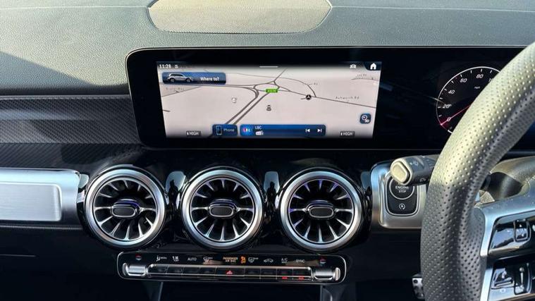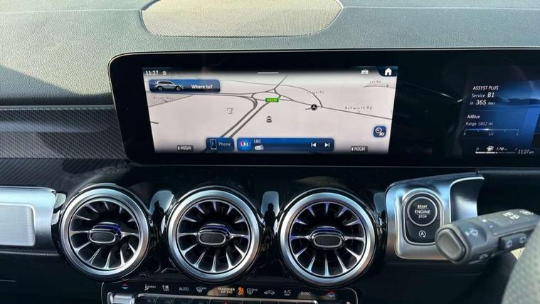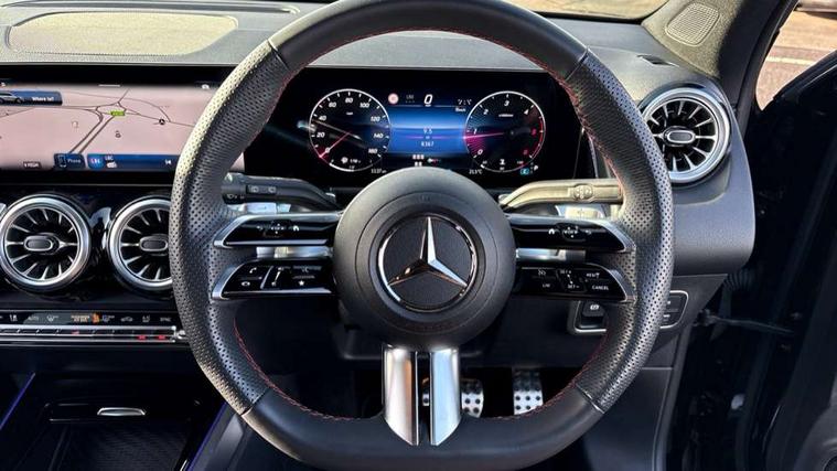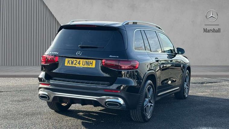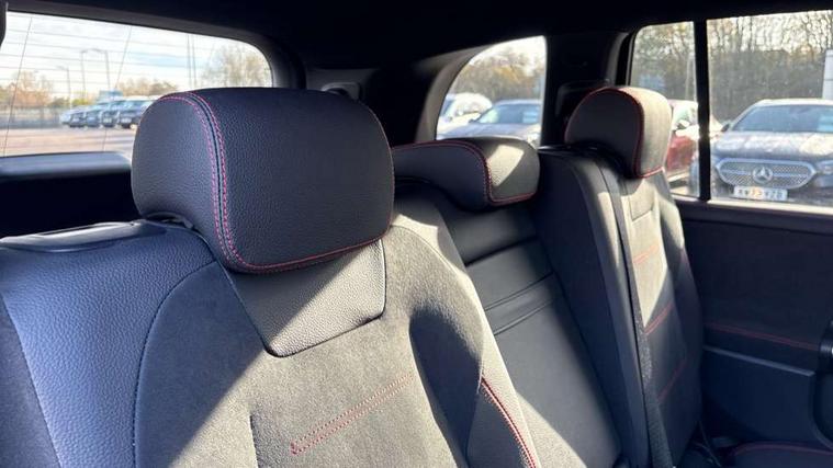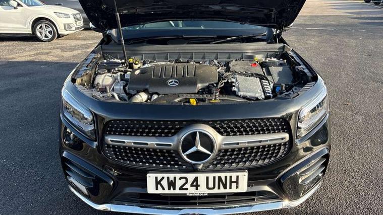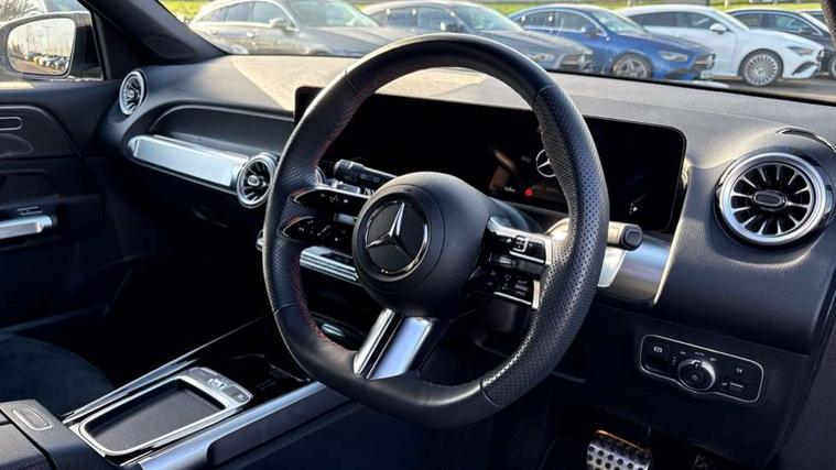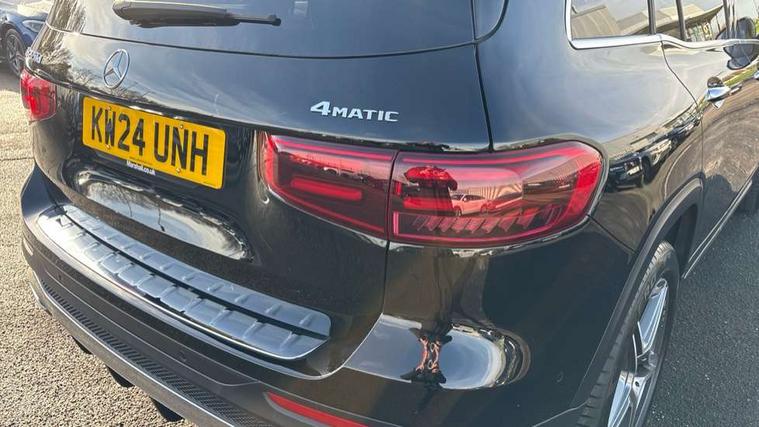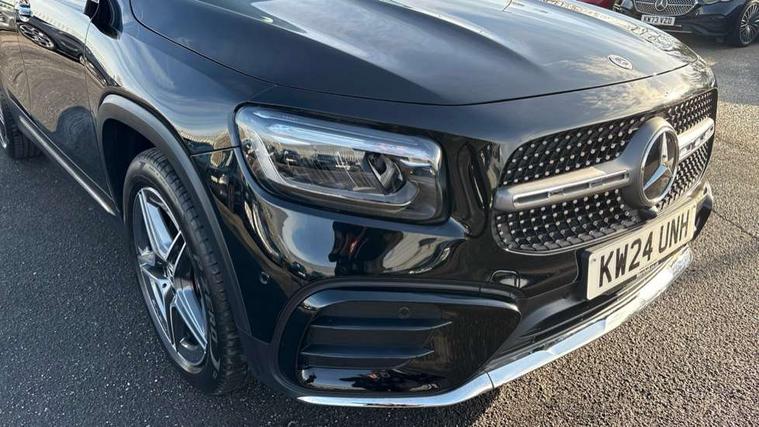 10.25 inch touchscreen central media display, 10.25" Digital instrument cluster display screen, 12 ultrasonic sensors in front and rear bumpers, 180 degree reversing camera with parking guidelines, Additional drive program "OFF-ROAD", Assisted parking: reversing backwards into perpendicular and parallel parking spaces, Attention assist - Monitors steering behaviour and long journey fatigue, Blind spot assist, Bluetooth connection, Brake pad wear indicator warning light, Car wash mode, Convenience opening and closing, Direct steering, DYNAMIC SELECT with a choice of driving modes (ECO, Comfort, Sport and Individual), ECO start/stop function, Engine start/stop button, Exit warning function, Fluid level warning indicator for fuel, oil, coolant and washer fluid, Hard disk navigation, Hey Mercedes Voice activation, Lamp failure indicator, Lane keep assist, MBUX navigation premium, Mercedes me connect including emergency call system, accident recovery, breakdown and maintenance management, Mercedes me remote services, Outside temperature gauge, Owners manual and service booklet in English, Pre-installation of private car share, Preinstallation for parking damage notification, Radio aerial integrated into front and rear windshields, Remote boot closing, Service indicator (ASSYST), Smartphone integration with Apple CarPlay and Android auto, Speed limit assist, Tailgate, Trip computer in multifunction display with current consumption indicator, Ultrasound sensors - positioned in the handle of the tailgate, Wireless charging, Comfort suspension with ride height lowering, Rear axle multi-link, 1 USB-C port in the oddments compartment (Charge + Data transfer), 2 USB-C ports for the rear on the centre armrest (Charge only), 2 USB-C ports under the front centre armrest (Charge + Data transfer), DAB digital radio tuner, MBUX multimedia system, Mercedes Benz sound system (225 W) with 10 speakers, 1 central speaker, speakers on doors, a tweeter on door, one sub woofer + boost amplifier, Pre installation for Mercedes Benz Link, Adaptive brake lights, Adaptive high beam assist, AMG front apron with front splitter in the colour of the vehicle with chrome trim element, AMG rear apron with visible tailpipe trim and chrome trim element, AMG specific/dual flow exhaust pipes in chrome (non-functional), Auto dimming rear view mirror, Beltline trim and window line trim strip in high gloss aluminium, Black grained side sill trim with chrome inlay, Body coloured door handles, Electric adjustable and heated door mirrors with integrated LED side indicators, Electric folding door mirrors, Front and rear electric windows, Headlamp assist automatic headlamp activation, Heat insulating dark-tinted glass starting from B-pillar, Heated glass rear windscreen + timer control, High level LED third brake light, Illuminated door sill panels with Mercedes-Benz lettering, Interior mirror with black reading lamps and frameless, LED high performance headlamps with integrated LED daytime running lights, LED tail lamp, Polished aluminium roof rails, Radiator grille as a diamond grille with chrome pins and central Mercedes star, Rain sensor windscreen wipers, Rear fog lamp, Rear side wing doors, Rear wiper, Single louvre in matt grey with chrome inserts and black highlights, Two visible tailpipe trim elements exhaust, Ultrasonic sensors - positioned in the front and rear bumpers, Wheel arch liners in the colour of the vehicle, 12V socket in the oddments compartment, 3 seat bench in 2nd row, 3 twin spoke flattened multifunction steering wheel in nappa leather - horizontal twin spoke in high gloss black, vertical twin spoke in silver chrome, 4 way adjustable lumbar support, 40:20:40 split folding rear seats, Air conditioning - Two zone thermotronic luxury automatic climate control with display, Air vents with silver chrome surrounds, AMG floor mats, AMG sports pedals with brushed stainless steel surfaces and black rubber studs, Automatic child seat recognition sensor, Black roof lining, Door handles with chrome inserts, Fluorescent jacket, Front and rear headrests, Front centre armrest with stowage, Galvanised steering wheel gearshift paddles in silver chrome, Handle recess lighting, Heated front seats, Height adjustable head restraints, Height/reach adjustable steering column, Interior lighting - 64 colour Ambient lighting, Luggage net on driver/front passenger seat backrest, Single front passenger seat, Sports seats, Stowage compartment with retractable cover, Sun visors with illuminated vanity mirrors, Third row of seats for two people on rear seat, Twin front cup holders, Two outer rear seat isofix and top tether child seat fixing points, Easy pack tailgate, Interior lighting with light and sight pack - GLB, Seat comfort package - GLB, 3 rear 3 point seatbelts, Active bonnet pedestrain safety measure which detects an impact and raises bonnet by 65mm, Active brake assist includes forward collision warning system with autonomous braking, Adaptive brake assist with hold function and hill start assist, Airbags - kneebag for driver, Anti-lock braking system (ABS) with brake assist, Black seatbelts, Bonnet with power domes, Childproof locks manually operated for rear doors and electrically operated for rear power windows, Crash responsive emergency lighting, Curve dynamic assist, Downhill speed regulation (DSR), Driver and front passenger head and sidebags, Driver and front passenger windowbags, Dual stage driver and front passenger airbags, Electric parking brake, Electronic stability programme with acceleration skid control, Front and rear seatbelt reminder, Front brake callipers with Mercedes Benz lettering, Front passenger seat occupancy sensor, Perforated front brake discs, Tyre pressure monitoring system, Warning triangle and first aid kit, Guard 360 degree vehicle protection - Anti theft alarm system, tow away protection with visual, acoustic warning and alarm, Interior monitoring system, Keyless Go Access and drive authorisation sy