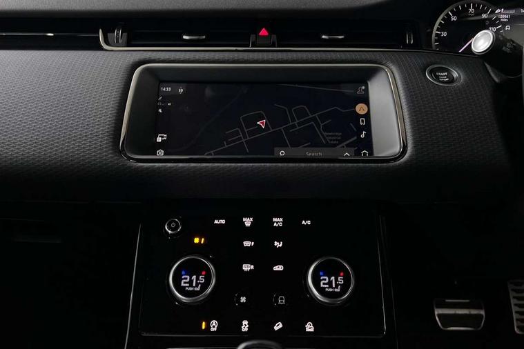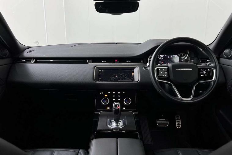 Android Auto, Apple car play, Bluetooth connectivity, Brake pad wear indicator warning light, Cruise control + speed limiter, Driver condition monitor, eCall emergency system, Electronic power assisted steering (EPAS), Front and rear parking aid, InControl remote, Land Rover InControl apps, Lane keep assist, Pivi pro connected includes upgraded infotainment, connected navigation pro, Nuance speech licence, Push button starter, Traffic sign recognition with adaptive speed limiter, Voice control system, All terrain progress control, Efficient Driveline, Passive suspension, Terrain Response 2 Auto, Digital Audio Broadcast radio-DAB, Steering wheel mounted controls, Auto headlights, Daytime running lights, Electric windows with one touch open/close and anti trap, Evoque and R-Dynamic badge, Flush deployable exterior door handles, Heated rear window with timer, Heated washer jets, Heated windscreen, Power fold, auto-dimming, heated door mirrors with approach lights and auto dimming driver side, Rain sensing windscreen wipers, Rear fog lights, Rear side wing doors, Rear wiper, Tailgate spoiler, Third brake light, 40:20:40 split folding rear seats with centre headrest and armrest, Ambient interior lighting, Bright metal pedals, Isofix system on outer rear seats, Overhead lighting console, Overhead stowage for sunglasses, Passive front head restraints, Rear air vents, Rear centre headrest, Rear head restraints, Satin chrome gearshift paddles, Single passenger seat, Sunvisors with illuminated vanity mirrors, Twin sliding front centre armrest, 3 rear 3 point seatbelts, Anti-lock braking system (ABS), Customer configurable autolock, DSC - Dynamic Stability Control, Electronic brake force distribution, Electronic parking brake, Electronic traction control, Emergency braking, Front and rear seatbelt reminder, Hill descent control, Hill launch assist, Low traction launch, Power operated child locks, Roll stability control, Six airbags - Driver and passenger airbags/driver knee airbag/front side airbag and curtain airbags, Torque vectoring brake, Tyre pressure monitoring system, Alarm, Immobiliser, Intrusion sensor, Locking wheel nuts,