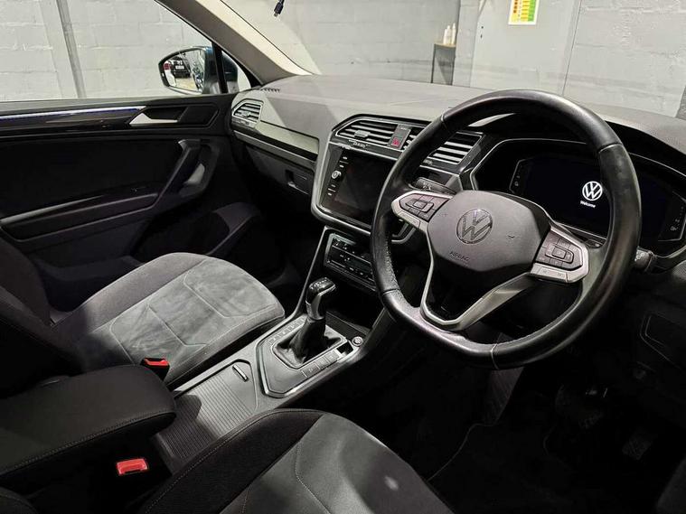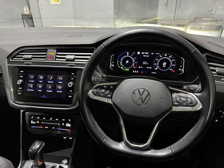 Adaptive cruise control ACC stop and go including speed limiter, App-Connect incl. App-Connect Wireless for Apple CarPlay and Android Auto, Bluetooth phone integration system, Distance control assist, Driver alert system, Driver profile selection, Dynamic road sign display, eCall emergency call system, Electromechanical speed sensitive power steering, Engine start/stop button, Lane keeping system Lane Assist, Lights on warning, Motorised electric tailgate operated via key fob, drivers door and foot movement under tailgate, Multifunction front facing camera, Outside temperature display, Premium multifunction display with multi colour display, Remote control boot opening, Rev counter, Revision / skills operating concept travel assistant, Service interval indicator, Speed limit display, Start/stop system with regenerative braking, Tailgate/trunk lid unlocking from outside, Trip computer, Warning sound and light for doors and tailgate open, Battery regeneration during braking, Charging cable Mode 3 Type 2 / 3 (16A), XDS electronic differential lock for improved traction and handling, 4 X 20 watt output, 8 Speakers, Diversity antenna for FM reception, Radio, SD card slot, Simultaneous pairing of 2 compatible mobile devices, SMS functionality - read, compose and send SMS messages using touch-screen display, Title and cover art display, USB C ports, Aluminium door sill protectors, Auto dimming interior rear view mirror, Automatic headlight control system, Body colour door handles, Body coloured bumpers, Body coloured door mirrors with integrated indicators, Coming/leaving home lighting function, Dynamic headlight range control, Front and rear electric windows, Heated rear window, High level 3rd brake light, IQ light-Adv high beam, Dynamic light assist for LED matrix headlamp+LED separate DRL+DCL, dark red rear LED tech, Poor weather light+ cornering light, Laminated safety glass windshield, heat and sound insulating, LED rear number plate lights, Privacy glass for rear side windows and rear window, Rain sensor windscreen wipers, Rear exhaust tailpipe, Rear fog lamp, Rear side wing doors, Rear windscreen washer and wiper with interval delay, Side and rear windows in heat insulating glass, Tilting and sliding panoramic sunroof with rear panoramic sunroof, Trailer Stability Programme, Windscreen wipers/ intermittent wipe + 4 position delay, 12V outlet in center console rear and in luggage compartment, 12V outlet in front and tray, 2 cup holders in front, 2 LED front reading lights, 2 LED rear reading lights, 3 bench rear seats in 2nd row, 3 rear headrests, 4 load lashing points, 40:20:40 split folding rear seats, Air Care Climatronic 3 zone automatic climate control with enhanced air filter and controls in the rear, Backrest release for left front seat, Climate control unit rear with touch function, Door and side trim panel in foam film and woven fabric, Front centre armrest, Front footwell illumination, Front seats head restraints (x-adjustment), Height adjustable front seats, Height/reach adjust steering wheel, Instrument lighting white adjustable panel illumination, Interior light with delay, Isofix Preparation 2 Rear child seats, Leather gear knob, Lockable cooled glovebox, Luggage compartment lighting, Luggage net, Rear bench seat asymetrically split folding, longitudinally movable and folding with load-through hatch and center armrest, Remote unlocking for rear seat backrest, Removable luggage cover, Removable rear headrests, Safety optimised front head restraints, Single front passenger seat, Sliding/reclining rear seats, Standard rear seat release, Storage compartment in driver's door, Storage compartment in passenger's door, Storage compartment in rear doors, Storage compartments in luggage area left and right, Storage tray on dashboard, Sun visors with illuminated vanity mirrors, Top front comfort seats, Variable boot floor, height adjustable and removable, Easy open and close pack with safelock - Tiguan, Park assist pack - Tiguan, 3 point seat belt for centre rear seats, 3 point seat belts with seat belt pretensioners for the outer rear seats, Active bonnet, Curtain airbags for front and rear passengers, Driver/Front Passenger airbags, Drivers knee airbag, Electronic parking brake with auto hold, Electronic Stability Control with driver steering recommendation, ABS, ASR, EDL, EDTC and trailer stabilization, Front assist with autonomous emergency braking (for Adaptive Cruise Control ACC up to 130 mph), Front disc brakes, Front passenger airbag deactivation, Front side airbags, Height adjustable front 3 point seatbelts + pretensioners, Hill hold control, Manual child proof rear door locks, Pedestrian monitoring system, Power assisted brakes, Proactive passenger protection system in combination with front assist, Rear disc brakes, Rigid safety cell with front and rear crumple zones, Two tone horn, Tyre pressure loss indicator, Warning sound and light for front seat belts if unfastened, Anti theft alarm system with interior monitoring, backup horn and towing protection, Anti theft wheel bolts, Central locking system with safelock radio remote control and 2 remote control folding keys, Electronic engine immobiliser, Tool kit, Tyre mobility kit Includes 12V compressor and tyre sealant,