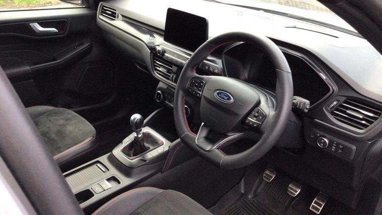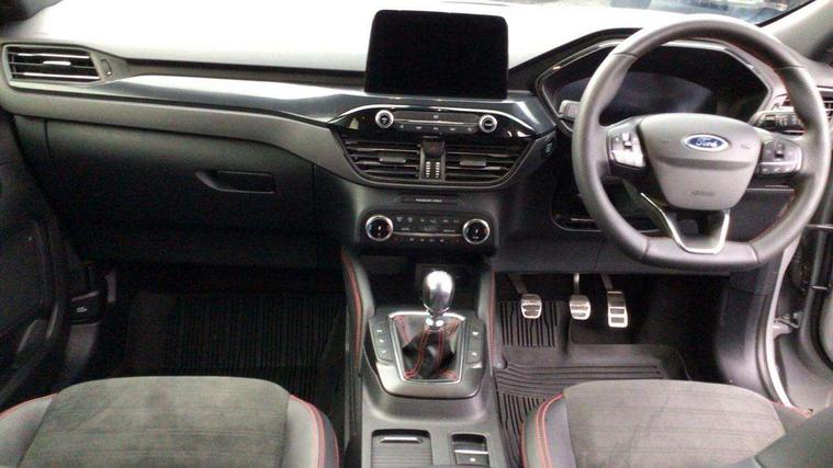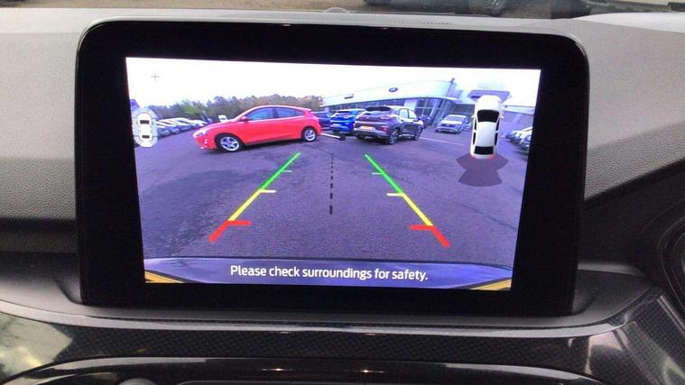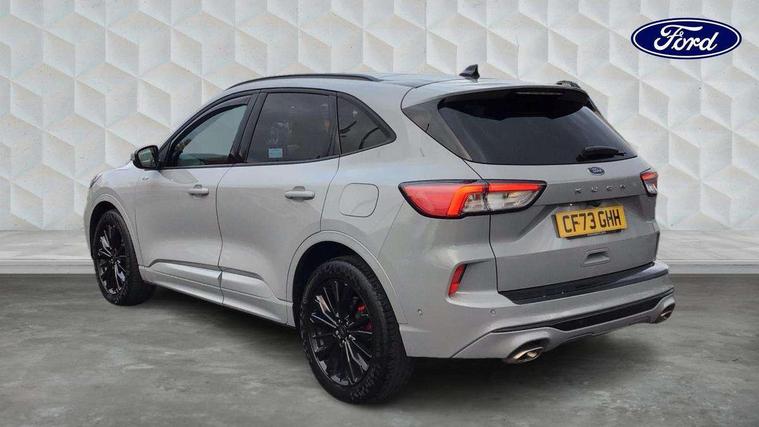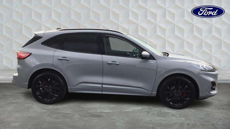 12.3" digital colour instrument cluster, Ford SYNC 3 with 8" TFT LCD touchscreen, App Link, andriod auto/apple carPlay, emergency assistance and navigation with Ford pass connect, Front and rear parking sensors, Hands free power tailgate, Lane keeping aid with lane departure warning, Power assist steering, Rear view camera, Selectable drive modes, Sports suspension, B&O premium audio system with 10 speakers and subwoofer, 2 USB ports, DAB radio/CD, Black roof rails, Exclusive paint, Large rear spoiler, LED daytime running lights, LED rear lights, Power folding heated door mirrors with puddle lights, Power front/rear windows with global close, Power opening panoramic roof, Quickclear heated windscreen, Rear privacy glass, Rear side wing doors, Rear wiper, Third brake light, 2nd row sliding seats with 60:40 split, Electronic automatic temperature control (EATC), Front and rear head restraints, Heated passenger and driver seats, Heated rear seats, Heated steering wheel, Partial premium touch Sensico with black cloth inserts and red stitching, Single front passenger seat, Driver assistance pack - Kuga with front camera system, Technology pack - Kuga with LED headlights, 3x3 point rear seatbelts, Electronic stability control (ESC) and ABS, Manual child proof rear door locks, Post collision braking, Pre collision assist with autonomous emergency braking, Red brake calipers, Keyless entry and Ford power start button (Keyless start),