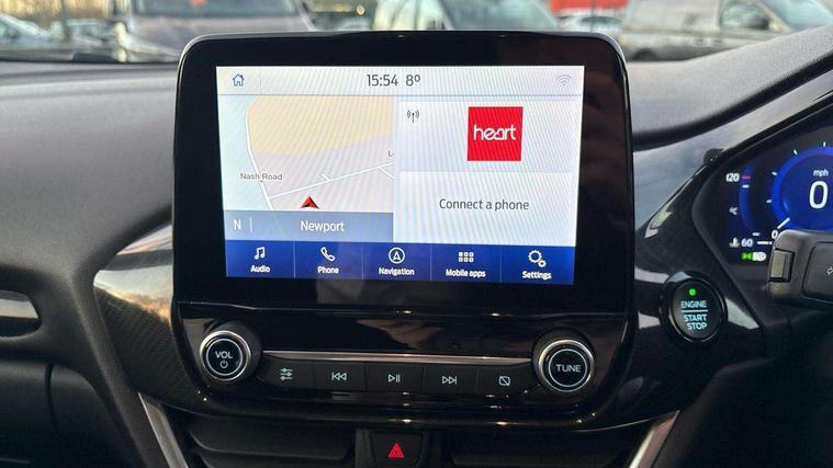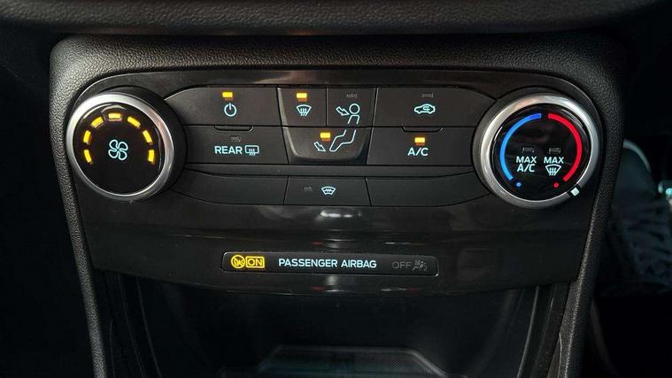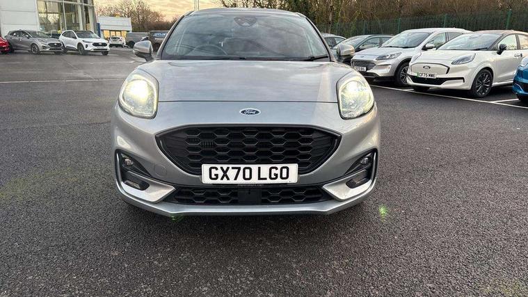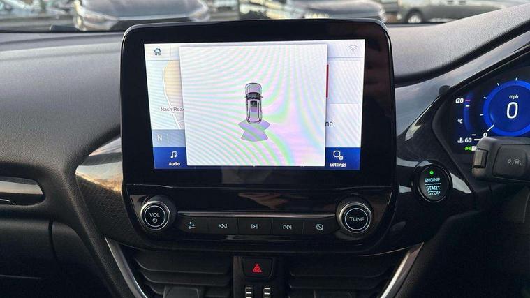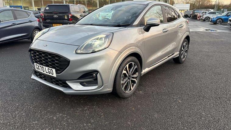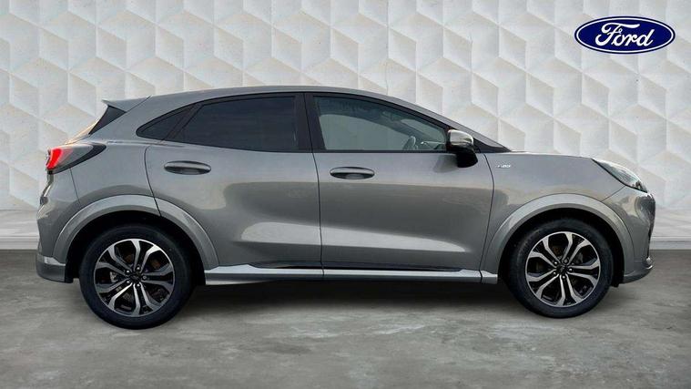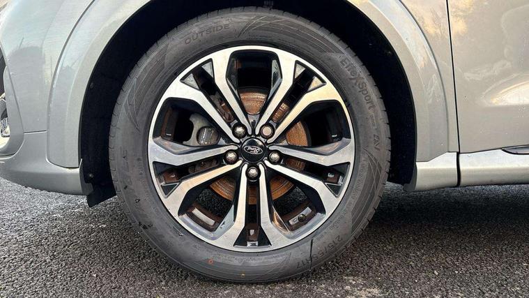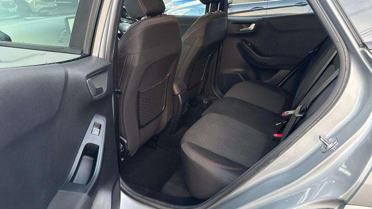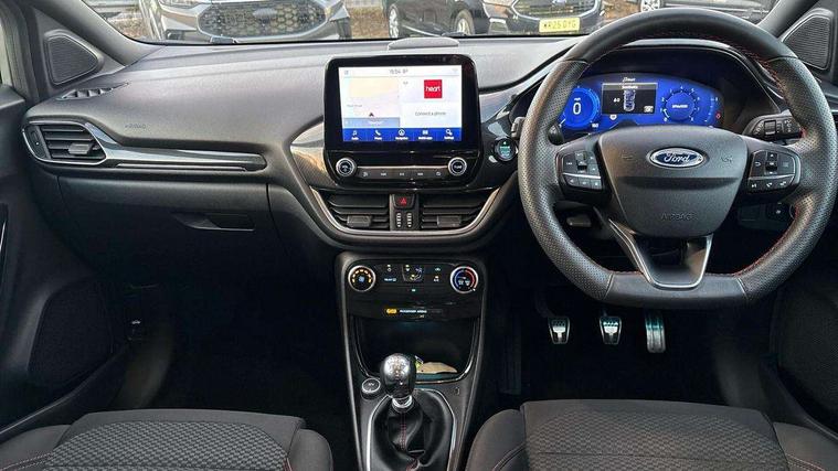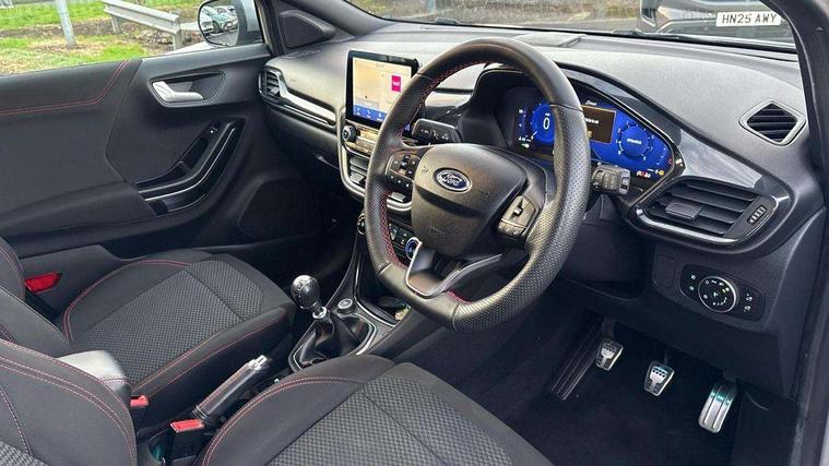 Ford easy fuel, Full digital 12.3" instrument cluster, Lane keeping aid with lane departure warning, Power assist steering, Rear parking sensor, Selectable drive modes(Normal, sport, Eco, trail, slippery), Wireless charging pad, Automatic headlights with rain sensing wipers and auto high beam, Body coloured door mirrors, Front fog lights with cornering lights and LED rear lamps, Power foldable heated door mirrors with puddle lamps, Quickclear heated windscreen, Rear wiper, ST-Line body kit with large rear spoiler wth sports suspension, Alloy sports pedals, Centre console with armrest and stowage, Court cloth upholstery with belgrano bolsters, Driver seat height/lumbar adjust, Ford megabox extended bootspace, Front and rear floor mats, Front and rear head restraints, Manual air conditioning, ST-Line flat bottomed sensico leather steering wheel with leather handbrake and aluminium gear knob, 3 rear seatbelts, Electronic stability control (ESC) and hill start assist, Pre-collision assist with autonomous emergency braking, pedestrian/cyclist detection & post-collision braking, Tyre pressure monitoring system (TPMS), Thatcham alarm, Tyre inflation kit,