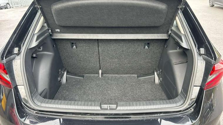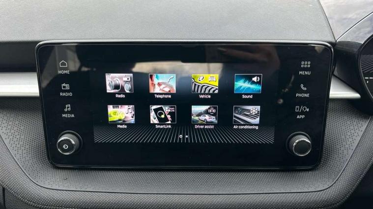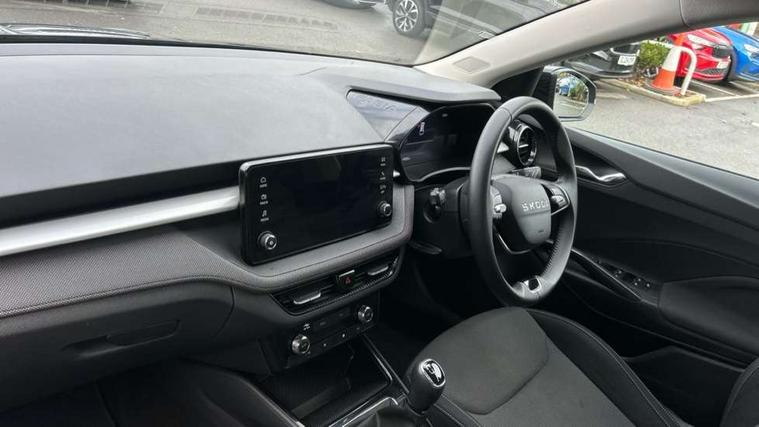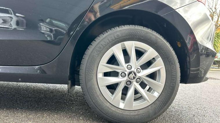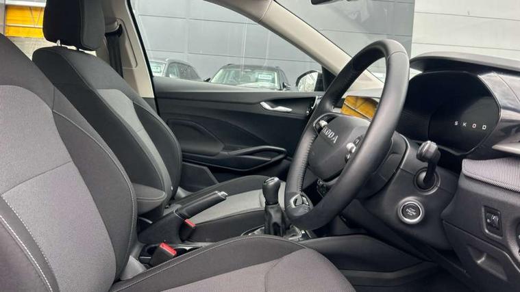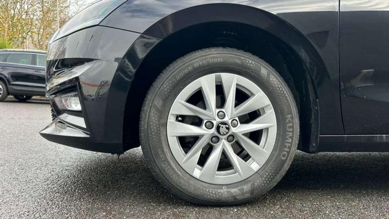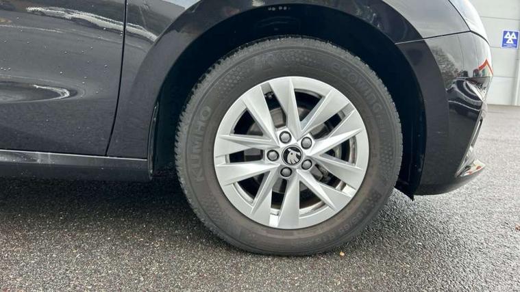 8" Digital instrument display, Advanced driver attention and drowsiness monitor, Bluetooth connection, Electromechanical power steering, Exterior temperature gauge, Service interval indicator, Traffic sign recognition, Wireless SmartLink for Apple CarPlay and Android Auto, 6 Speakers (4 in front and 2 in rear), 8.25" Skoda infotainment touchscreen display, Auxiliary socket for external MP3 player, DAB digital radio reception, Auto dimming rear view mirror, Body colour door mirrors, Body coloured bumpers, Door mirror integrated indicators, Front and rear electric windows, Front window wiper intermittent control, Headlight range control - Automatic, Ice scraper in fuel cap, LED 3rd brake light, LED daytime running lights with coming and leaving home feature, LED rear lights, Rear LED fog light, Rear side wing doors, Rear window wiper with washing nozzles, Roof mounted spoiler, SKODA tailgate lettering in chrome, Unique dark chrome design logo on alloy wheels, 2 reading lights in front and 2 reading lights in rear, 3 rear headrests, Backrest split and folding, Central console with removable cup holder and storage box, Chrome handbrake release button, Dual zone air conditioning with climatronic electronic control, Fabric upholstery, Front centre armrest, Gearshift knob/handle in leather, Grain satin black interior door handles, Hand brake lever handle in leather, Height adjustable front headrests, Height adjustable front seats, Height adjustable steering wheel, ISOFIX and TopTether anchorage points to the outer rear seats, ISOFIX and TopTether on the front passenger seat, Luggage compartment lighting, Manually adjustable lumbar support in front seats, Pollen filter, Rear seat bench unsplit, Single front passenger seat, Skoda lettering on steering wheel, Storm grey headlining, Sun visors with mirror and airbag label on passenger side, Textile floor mats, Ticket holder, Umbrella in drivers door, 3-point height adjustable front seats belts with pretensioner and force limiter, Automatic warning lights in case of crash, Driver and passengers airbag with switch off function, e-Call+, ESC including ABS, MSR, ASR, EDS, HBA and XDS, Front and rear seat belt warning, FRONT ASSIST (AEB City and AEB Inter Urban), Front side airbags, Head airbags, One tone horn, Pedestrian protection, Three rear 3-points safety seat belts with pretensioner and force limiter including stop function for outer rear seat belts, Tyre pressure monitoring system, Anti-theft alarm system including immobiliser, interior monitoring, backup horn, and towing protection, Central locking with radio remote control, interior controls, SAFE function and 2 foldable keys, Black painted air vents, Grain satin black central console cover, Metallic grey upper decorative trim, Satin black door and side trim panel in front, Textile Kota grey lower decorative inserts, Anti-theft wheel bolts protection, Super-low rolling resistance tyres,
