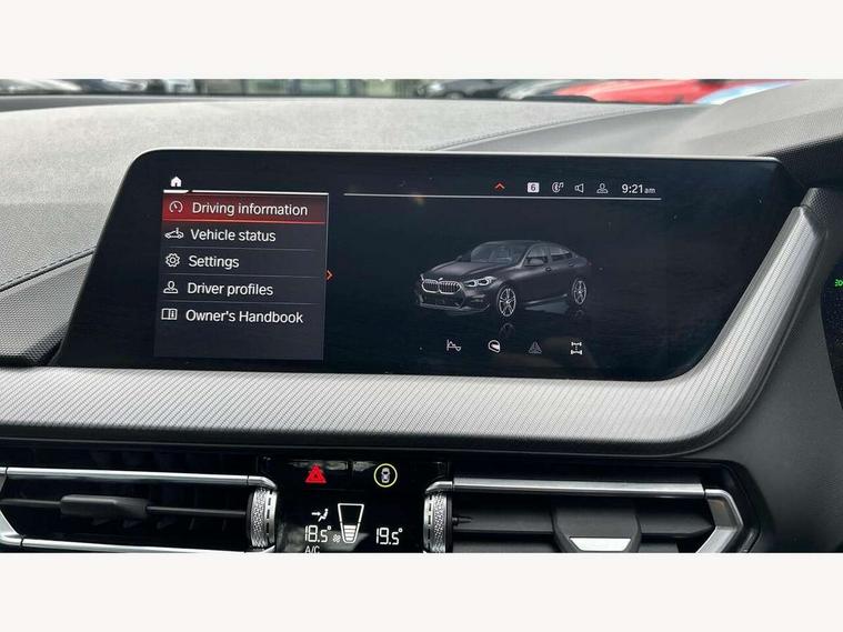 Active guard plus, Attentiveness assist, Auto start-stop, BMW Intelligent Personal Assistant, BMW Live Cockpit Professional with 10.25" high resolution instrument and control display, BMW Online services, BMW operating system with 7.0 mid interface, BMW Teleservices, Check Control warning system for monitoring of lights and door/luggage compartment open warning, Cruise control with braking function, iDrive controller with 7 short cut favourite buttons on centre console, Integrated navigation data with map data via USB +features such as 3D landmarks and micro city models, Integrated owners handbook, Intelligent voice assistant, Lane departure warning system, M Sports steering, On board computer - average speed+fuel consumption, service interval, clock/date, odometer/trip meter, outside temperature display and ice warning, Optimum shift indicator, Personal Profile, Pull away assistant, Speed limiting function, 6 speed manual transmission, Aluminium lightweight construction, Balancer shaft, Double VANOS, Drive performance control with ECO PRO comfort + sport mode, Electronic differential lock, High precision injection, M Sport suspension with stiffer spring/damper set-up and vehicle lowered by 10mm + twin tube gasfilled shock absorbers and Anti roll bars, Performance Control, Petrol Particulate Filter, VALVETRONIC engine management, 2x USB Type C ports (for charging and data transfer), 4G LTE Connectivity with hard wied 4G network sim card, DAB digital radio, MP3 players and RDS double tuner, Auto wipers, Automatic headlight beam throw control, Automatically dimming rear view mirror, Body colour door handles, Body colour mirror caps, Chrome 'M' logo side designation, Chrome exhaust single tailpipe, round, Direction indicator side lights integrated exterior mirrors, Electric windows - front and rear, with open/close fingertip control and trap release, Exterior mirrors - electrically folding with anti-dazzle, Fading support, Follow me home headlights, Front and rear bumper system with replaceable deformation elements, Front door sill finishers in black plastic with M designation in metallic look, Heated, electrically adjustable exterior mirror aspheric on driver side, convex on passenger side, High gloss black B pillar finish, High gloss shadow line exterior trim, High level third brake light, LED daytime running lights, LED front fog lights, LED Headlights, Lightweight engineering, Model designation on right side of tailgate, Preparation for high beam assistant, Rain sensor with automatic headlight activation, Rear boot, Rear fog lights, Rear side wing doors, Reversing light in rear light cluster, Welcome lighting, 12V power socket in centre console, 2 cupholders in front centre console, 3 rear seat head restraints, 3 rear seats, 3 spoke M sports design leather steering wheel finished in nappa leather with specific M badge, Anthracite finished floor mats with contrasting surround, Anthracite headlining, Automatic two zone climate control air conditioning, Child seat ISOFIX attachment for two outer rear seats and front passenger seat with anchorage points, Conditioned based service, Driver and front passenger seat heating, Front and rear door pockets including bottle trays, Front and rear side armrests integrated into door trim, Front armrest foldable with integrated storage compartment, Front centre interior light over interior mirror and rear centre automatic interior light when door is opened/ignition switched off or via remote key, Front head restraints, Front passenger seat, Front sports seats with electric side bolster adjustment, Gearshift lever with M designation, Glove compartment, Glovebox with light, Luggage compartment lighting, Manually adjustment steering wheel column, Multi-function controls for steering wheel, Sun visors with vanity mirrors and insert tab, Through loading system with 40/20/40 split folding rear seat, Two lashing eyes, Additional interior lighting pack - 2 Series Gran Coupe, Extended storage pack - 2 Series Gran Coupe, M Sport exterior styling aerodynamics pack - 2 Series Gran Coupe, 2 tone horn, Airbag - Front driver and passenger, front and rear head, front side, curtain head protection, manual deactivation of front passenger airbag possible, Anti lock braking system (ABS) with cornering brake control, BMW emergency call, Brake drying, Braking readiness, City braking function, Crash sensor activating of airbags, Unlocking doors, hazard warning lights, interior light, safety battery terminal, Dynamic stability control + (DSC+), Dynamic Traction Control - DTC, Electrically operated hand brake, Rear brake discs, Rear child proof door locks, Seat belt security check for driver and front passenger, Seatbelt warning, Side impact protection, Three point seat belts on all seats including front belt stopper, pyrotechnic belt tensioners and belt force limiters, Trailer stability control, Tyre pressure monitoring system, Ventilated front disc brakes, Warning triangle and first aid kit, Central locking switch for all doors, fuel filler cap and luggage compartment, Deadlocking function system to all doors, Drive away locking system on all doors and luggage compartment, Locking wheel bolts, Start/Stop button (illuminated) in centre console with keyless engine start and Auto Start-Stop deactivation button, Thatcham Cat.1 alarm and immobiliser, Two remote control key with integrated key - open/close doors/fuel flap/tailgate +1 button for unlock compartment with M design high gloss black inlay, Contrast stitching on instrument panel, 18" Burnished M double spoke bi-colour alloy wheels finished in orbit grey - style 819M, Reduced rolling resistance tyres,