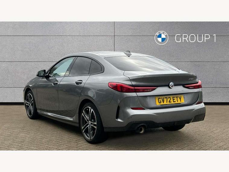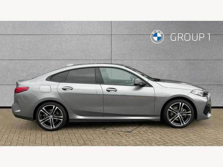 Active guard plus, Attentiveness assist, Auto start-stop, BMW Intelligent Personal Assistant, BMW Live Cockpit Professional with 10.25" high resolution instrument and control display, BMW Online services, BMW operating system with 7.0 mid interface, BMW Teleservices, Check Control warning system for monitoring of lights and door/luggage compartment open warning, Cruise control with braking function, iDrive controller with 7 short cut favourite buttons on centre console, Integrated navigation data with map data via USB +features such as 3D landmarks and micro city models, Integrated owners handbook, Intelligent voice assistant, Lane departure warning system, M Sports steering, On board computer - average speed+fuel consumption, service interval, clock/date, odometer/trip meter, outside temperature display and ice warning, Optimum shift indicator, Personal Profile, Pull away assistant, Speed limiting function, Aluminium lightweight construction, Balancer shaft, Double VANOS, Drive performance control with ECO PRO comfort + sport mode, Dual clutch automatic transmission, Electronic differential lock, High precision injection, M Sport suspension with stiffer spring/damper set-up and vehicle lowered by 10mm + twin tube gasfilled shock absorbers and Anti roll bars, Performance Control, Petrol Particulate Filter, VALVETRONIC engine management, 2x USB Type C ports (for charging and data transfer), 4G LTE Connectivity with hard wied 4G network sim card, DAB digital radio, MP3 players and RDS double tuner, Auto wipers, Automatic headlight beam throw control, Automatically dimming rear view mirror, Body colour door handles, Body colour mirror caps, Chrome 'M' logo side designation, Chrome exhaust single tailpipe, round, Direction indicator side lights integrated exterior mirrors, Electric windows - front and rear, with open/close fingertip control and trap release, Exterior mirrors - electrically folding with anti-dazzle, Fading support, Follow me home headlights, Front and rear bumper system with replaceable deformation elements, Front door sill finishers in black plastic with M designation in metallic look, Heated, electrically adjustable exterior mirror aspheric on driver side, convex on passenger side, High gloss black B pillar finish, High gloss shadow line exterior trim, High level third brake light, LED daytime running lights, LED front fog lights, LED Headlights, Lightweight engineering, Model designation on right side of tailgate, Preparation for high beam assistant, Rain sensor with automatic headlight activation, Rear boot, Rear fog lights, Rear side wing doors, Reversing light in rear light cluster, Welcome lighting, 12V power socket in centre console, 2 cupholders in front centre console, 3 rear seat head restraints, 3 rear seats, 3 spoke M sports design leather steering wheel finished in nappa leather with specific M badge, Anthracite finished floor mats with contrasting surround, Anthracite headlining, Automatic two zone climate control air conditioning, Child seat ISOFIX attachment for two outer rear seats and front passenger seat with anchorage points, Conditioned based service, Driver and front passenger seat heating, Front and rear door pockets including bottle trays, Front and rear side armrests integrated into door trim, Front armrest foldable with integrated storage compartment, Front centre interior light over interior mirror and rear centre automatic interior light when door is opened/ignition switched off or via remote key, Front head restraints, Front passenger seat, Front sports seats with electric side bolster adjustment, Glove compartment, Glovebox with light, Luggage compartment lighting, Manually adjustment steering wheel column, Multi-function controls for steering wheel, Sun visors with vanity mirrors and insert tab, Through loading system with 40/20/40 split folding rear seat, Two lashing eyes, Additional interior lighting pack - 2 Series Gran Coupe, Extended storage pack - 2 Series Gran Coupe, M Sport exterior styling aerodynamics pack - 2 Series Gran Coupe, 2 tone horn, Airbag - Front driver and passenger, front and rear head, front side, curtain head protection, manual deactivation of front passenger airbag possible, Anti lock braking system (ABS) with cornering brake control, BMW emergency call, Brake drying, Braking readiness, City braking function, Crash sensor activating of airbags, Unlocking doors, hazard warning lights, interior light, safety battery terminal, Dynamic stability control + (DSC+), Dynamic Traction Control - DTC, Electrically operated hand brake, Rear brake discs, Rear child proof door locks, Seat belt security check for driver and front passenger, Seatbelt warning, Side impact protection, Three point seat belts on all seats including front belt stopper, pyrotechnic belt tensioners and belt force limiters, Trailer stability control, Tyre pressure monitoring system, Ventilated front disc brakes, Warning triangle and first aid kit, Central locking switch for all doors, fuel filler cap and luggage compartment, Deadlocking function system to all doors, Drive away locking system on all doors and luggage compartment, Locking wheel bolts, Start/Stop button (illuminated) in centre console with keyless engine start and Auto Start-Stop deactivation button, Thatcham Cat.1 alarm and immobiliser, Two remote control key with integrated key - open/close doors/fuel flap/tailgate +1 button for unlock compartment with M design high gloss black inlay, Contrast stitching on instrument panel, 18" Burnished M double spoke bi-colour alloy wheels finished in orbit grey - style 819M, Reduced rolling resistance tyres,