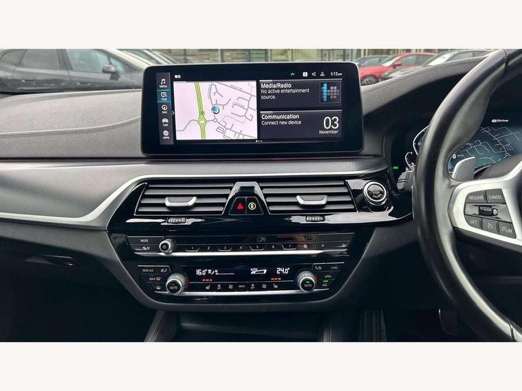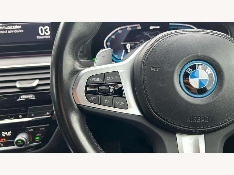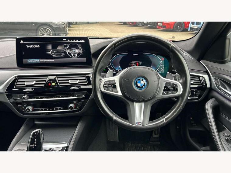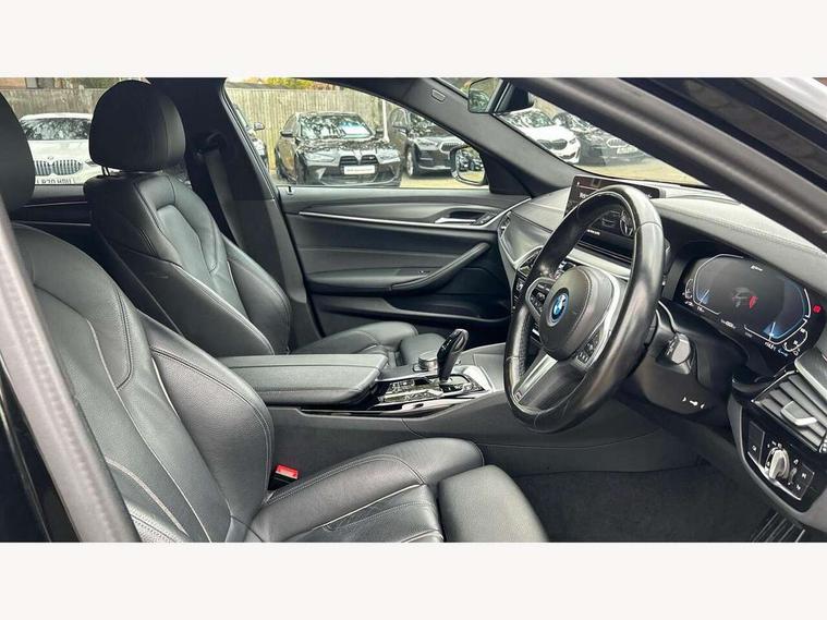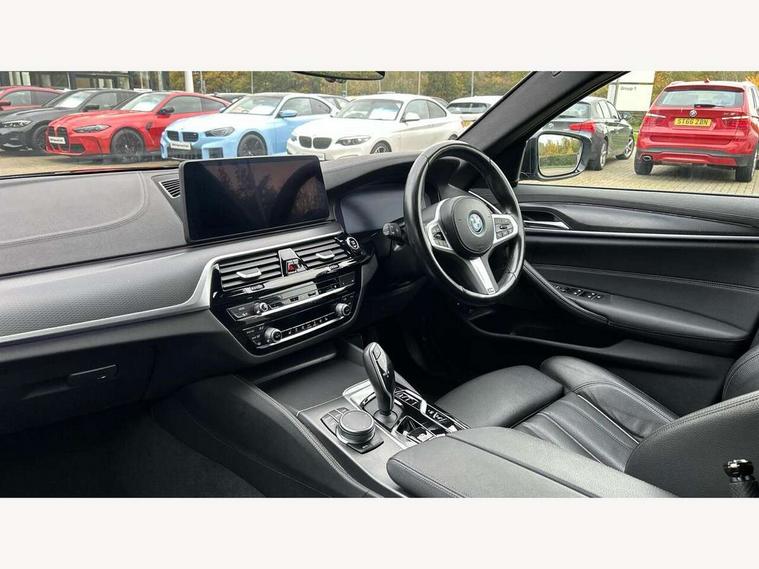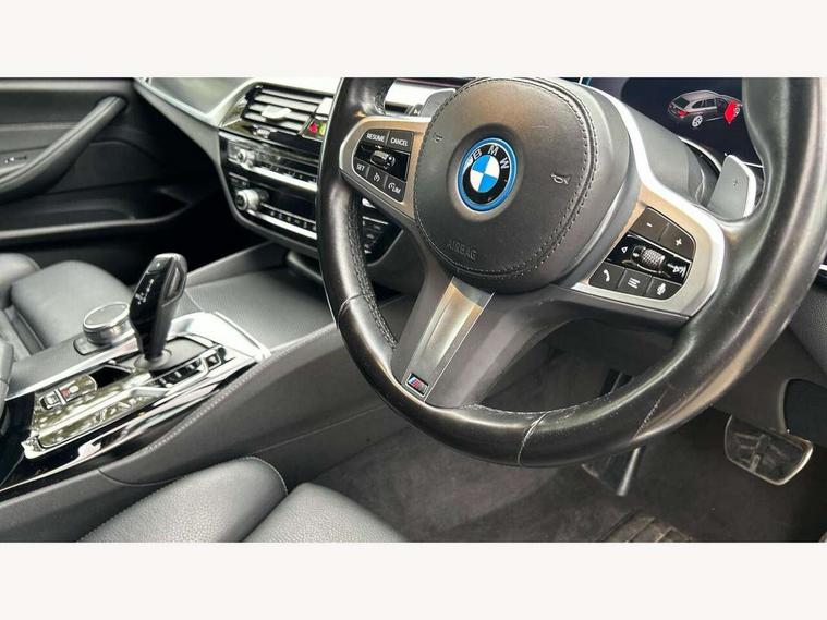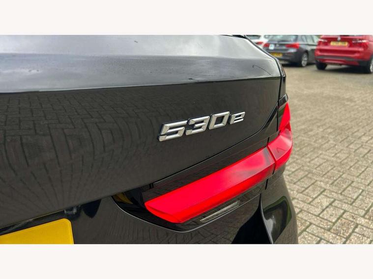 32GB hard disc drive (HDD) memory, Active Guard, Bluetooth connection, BMW Live Cockpit Professional sat nav system with 12.3" instrument display and high resolution control display, BMW Teleservices, Brake pad wear indicator, Connected eDrive Services, Cruise control with brake assist, Digital Instrument display with hybrid specific functions, Driving experience switch specific to 530e/530e xDrive, eCall emergency call system, Electric boot lid - electrically opening/closing rear tailgate, Electric Power Steering (EPS) with Servotronic, Electronic display of drivetrain information and battery range and temperature, iDrive controller with shortcut buttons, Intelligent emergency call, Multifunctional instrument panel, Oil sensor for level and grade, On board computer inc. average speed, fuel consumption, liquid crystal Info display, journey computer, outside temperature display, personal profile, On-board diagnosis - OBD, Powered by Operating System 7.0, Service interval indicator, Speed limiting function, Stop/start button, XtraBoost driving mode, 5 metre standard charge cable, AC Fast charge cable, Charging flap in front side panel - left, Drive performance control with ECO PRO comfort + sport mode, eDrive exterior sound, Electric motor, Engine cover with twin turbo designation, Standard Charging cable (Mode 2) for home socket, Steptronic transmission with gearshift paddles on steering wheel, DAB Digital radio, Favourite buttons, "Electrified by i" exterior badging on charging flap, Acoustic glazing, All round anti-corrosion system, Aluminium radiator, Automatic windscreen wipers and automatic headlight, Automatically dimming rear view mirror, BMW Individual high gloss shadow line includes exterior mirror frame, window frame surround, B pillar finish, air breather in high gloss black, BMW roundel with BMW i blue surround on steering wheel, wheel centre caps, tailgate and bonnet, Body colour door handles, Body coloured bumpers, Door handle illumination, Dynamic brake lights with LED technology, Electric front and rear windows with fingertip open/close + anti-trap facility and comfort closing function, Electrically adjustable and heated exterior mirrors includes integrated direction indicators and automatic parking function, Folding exterior side mirror with auto- dimming, Follow me home headlight function, Heated windscreen washer jets, High gloss black active air stream kidney grille, High gloss shadow line roof rails, Independent opening for tailgate window, LED daytime running lights, LED Headlights, LED third brake light, M designation on front side panels, left and right in chrome, M Sport exterior styling, Preparation for high beam assistant, Rear side wing doors, Rear wiper, Trapezoidal visible exhaust tailpipes, 12V power socket in front and rear, 3 seat bench in 2nd row, 40/20/40 split folding rear seats with additional mechanism in luggage compartment, Anthracite headlining, Armrest - front and rear integrated door trim, centre console includes storage compartment, rear centre includes 2 cupholders, Child seat ISOFIX attachment with rear outer seats includes top tether, Cup holders (2 front and 2 rear), Front and rear footwell lights, Front reading lights, Height and length adjustable steering column and activation via lateral lever on the steering column, Illuminated charging socket with visual display of charge status, Lockable glove compartment with light, M door sill finishers, M specific pedals, M specific velour floor mats, Multifunction controls for leather steering wheel, Rear headrests, Retractable luggage compartment dividing net, Single front passenger seat, Stationary cooling, Three spoke sport M leather steering wheel, Ambient lighting pack - 5 Series, Connected package professional - 5 series 530e/545e, M Aerodynamic pack - 5 Series, Acoustic protection for pedestrians, Airbags - driver/front passenger, rear and side, first and second row seats head airbags, front passenger seat airbag deactivation, Anti-lock braking system (ABS), Automatic Stability Control (ASC), Brake assist function, Brake energy regeneration, Cornering brake control (CBC), Crash sensor activating central locking release, hazard warning lights, fuel cut off and interior lighting, Deformation zones - front and rear with door reinforcements and bumpers up to 2.5 mph, DSC - Dynamic Stability Control, Dynamic brake control, Dynamic Traction Control - DTC, Electromechanical parking brake with automatic drive away release and auto hold function, Electronic brake force distribution, Engine drag torque control, Front and rear brake discs with interior ventilation, Front head restraints with anti-whiplash, Hill start assist, M Sport brakes in high gloss blue painted brake callipers with M designation, Mechanical child proof lock on rear doors, Rear door child safety locks, Side impact protection, Three point seat belts for all four seats, Two tone horn, Tyre pressure indicator, Warning triangle and first aid kit, Alarm system (Thatcham 1) with remote control and electronic engine immobiliser, Locking wheel bolts, Tyre repair kit,