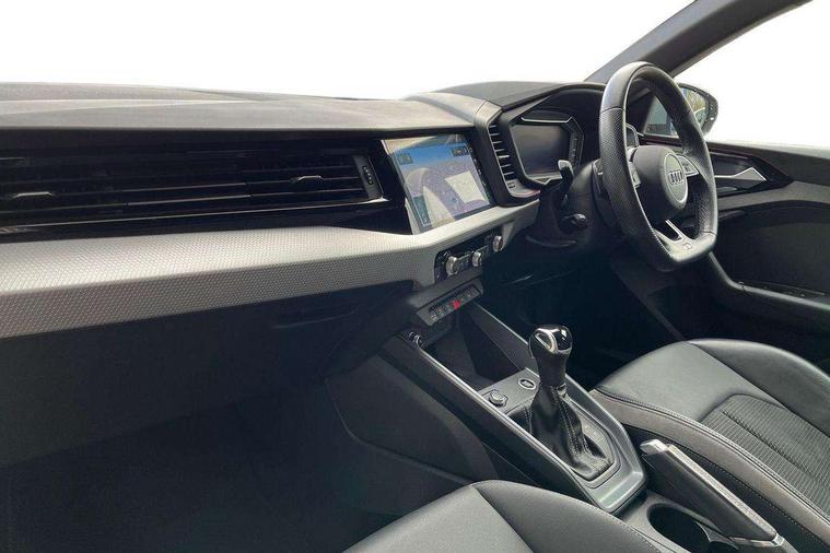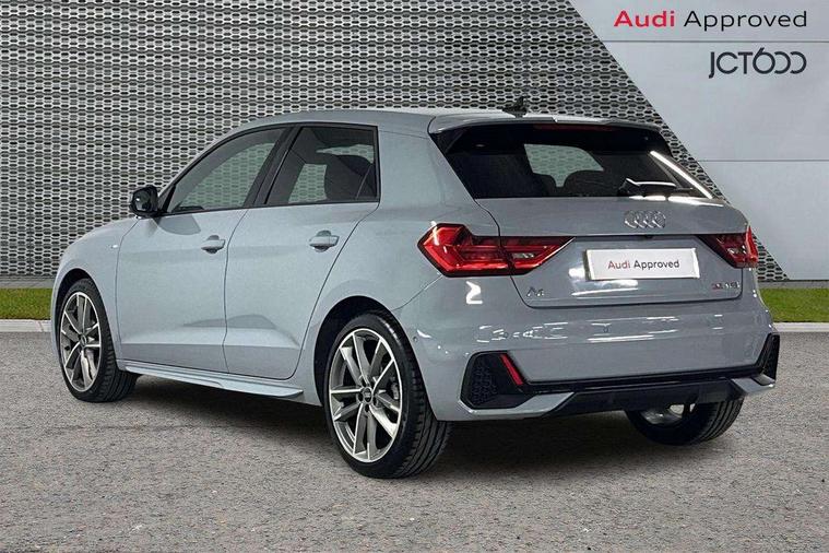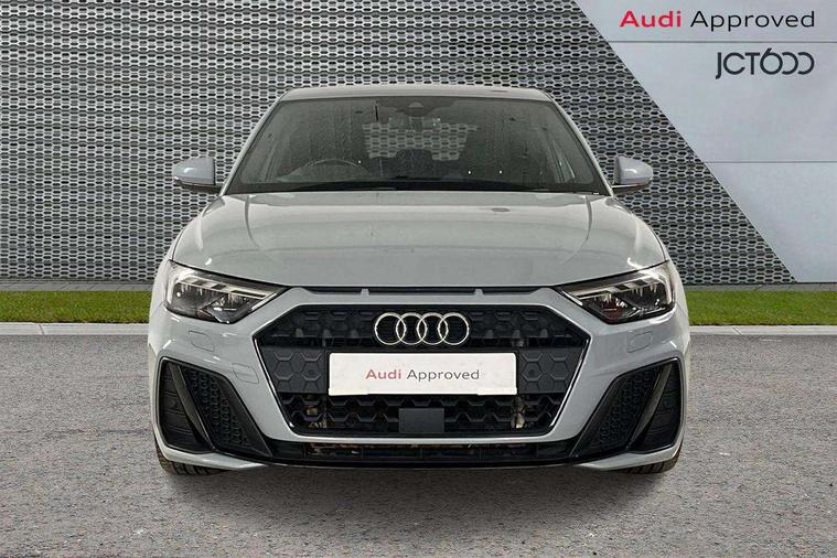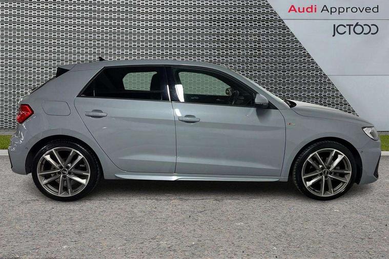 Adaptive speed assist, Audi connect safety emergency and service including E-call, Audi drive select - power steering assistance + engine + gear shift 3 preset modes (auto, dynamic, efficiency and an Individual mode), Audi phone box with wireless charging, Automatic start/stop system, Bluetooth interface, Cruise control, Driver's information system, Electromechanical power steering, Lane departure warning system, Service interval indicator, Speed limiter, Washer fluid level indicator, Sports suspension, 1 x SDXC card reader, 2 x USB type C connection points, DAB Digital radio, Auto dimming rear view mirror, Body coloured door mirrors, Door sills with aluminium inlays and S Line logo, Electric front and rear windows, Electrically adjustable, heated, folding door mirrors with integrated LED side indicator, Front side air inlets in grained matt black and C frame in titanium black, Heat insulating glass windscreen and side windows, Heated rear windscreen, LED headlights with LED rear lights + dynamic rear indicators + headlight adjustment and high beam, turning light + LED daytime running lights, Radiator grille and rear diffuser in matt titanium black, Radiator protective grille frame in matt aluminium silver, Rain and light sensors, Rear fog lights, Rear wiper, S line badges on front wings, Side front spoiler lips in grained matt black, 12V socket in centre console with two cup holders, 3 rear seats with headrests, 3 spoke flat bottomed multi-function plus leather steering wheel with S badging, grips in preforated leather, contrast stitching and paddle shift, 40:60 Split folding rear seat or folded fully, Black cloth headlining, Driver and passenger seat with manual height adjust with forward and backwards adjustment, Frequency alcantara/leatherette upholstery with contrast stitching in fine silver and S embossed logo + front sports seats, Front and rear black floor mats with contrast stitching in fine silver, Front head restraints, Height and reach adjustable steering wheel, ISOFIX child seat mounting for front passenger and outer rear seats including top tether attachment point of outer rear seats, Leather gear knob with aluminium trim, Luggage compartment light with front and rear reading lights, Manually adjustable lumbar support in front seats, Stainless steel pedals, Black exterior styling pack - A1 Sportback Vorsprung, Comfort and sound pack - A1 Sportback, Luggage compartment pack - A1, Multicoloured LED Ambient lighting pack - A1 Sportback, Plus pack - A1 Sportback, Technology pack - A1 Sportback, 3x3 point rear seatbelts, Audi pre-sense front with pedestrain and cyclist recognition, Brake assist function, Driver and front passenger airbag with front side and head airbags, Electronic Stability Control including ABS, EBD, ASR and EDL, Front and rear seatbelt reminder, Front passenger airbag deactivation switch, Hill hold assist, Seatbelt height adjustment for front seats, Seatbelt monitoring, Tyre pressure warning light, Warning triangle and first aid kit, Advanced key, Anti theft alarm, Anti theft wheel bolts and loose wheel warning, Immobiliser, Remote central locking with 2 foldaway keys, Aluminium trim for control switches, air vents and digital instrument cluster, Silver grey inlays polygon structure in diamond paint finish, Structured grey accent areas including air vents, door handle recesses and centre console in quartz paint finish, 18" 5 double arm design alloy wheels in matt titanium look with diamond cut finish,
