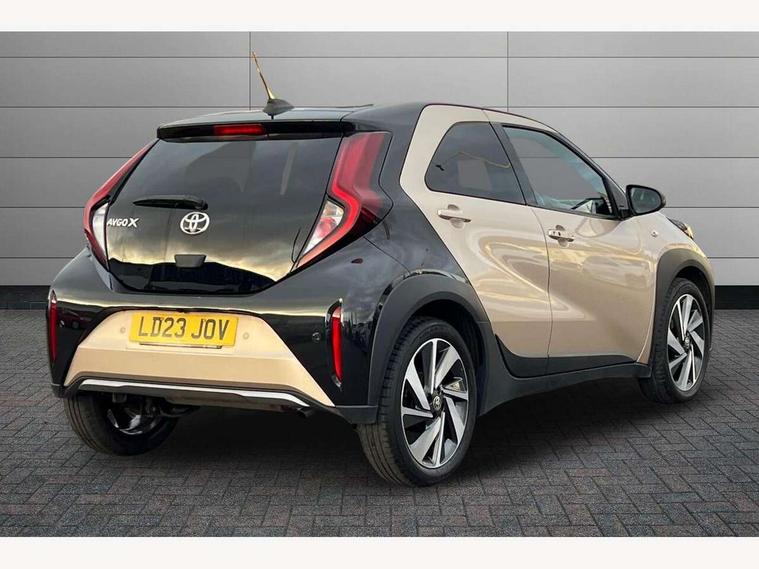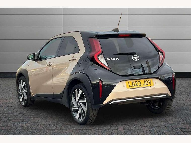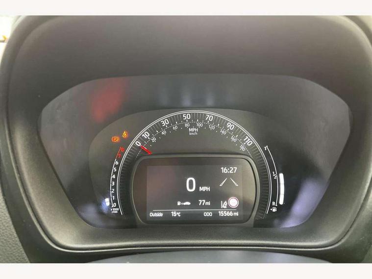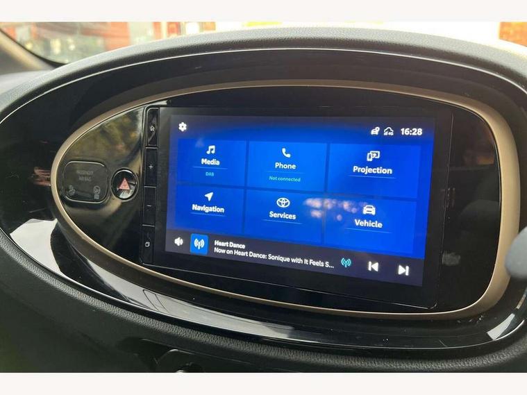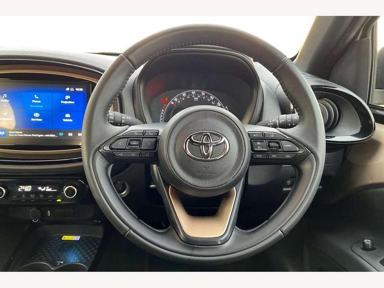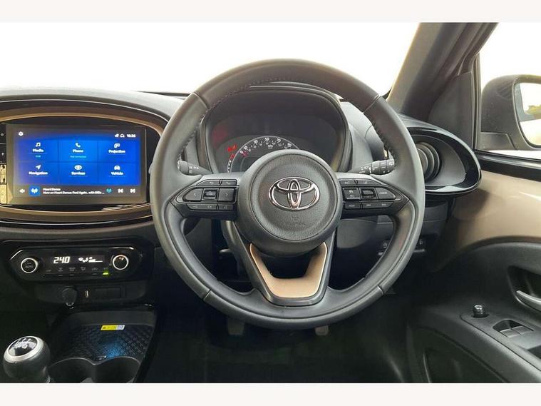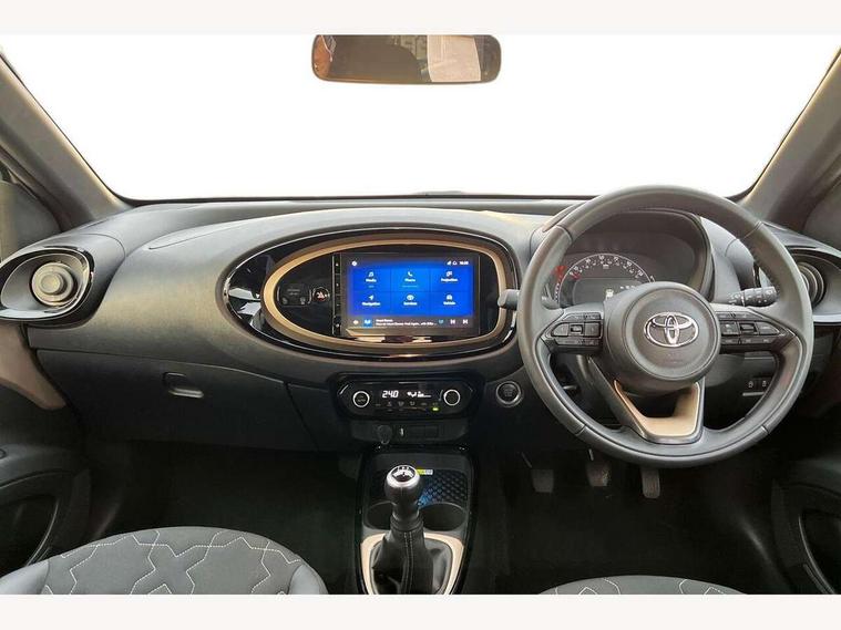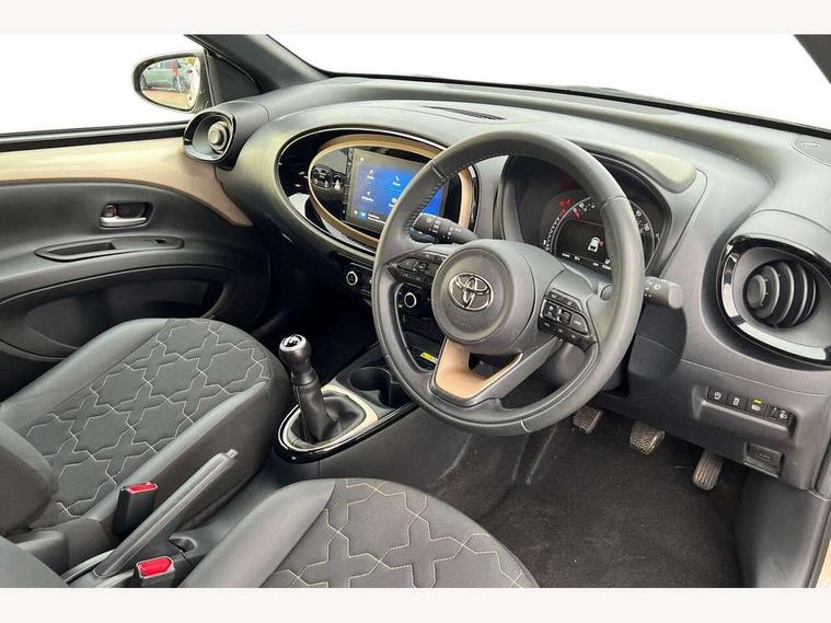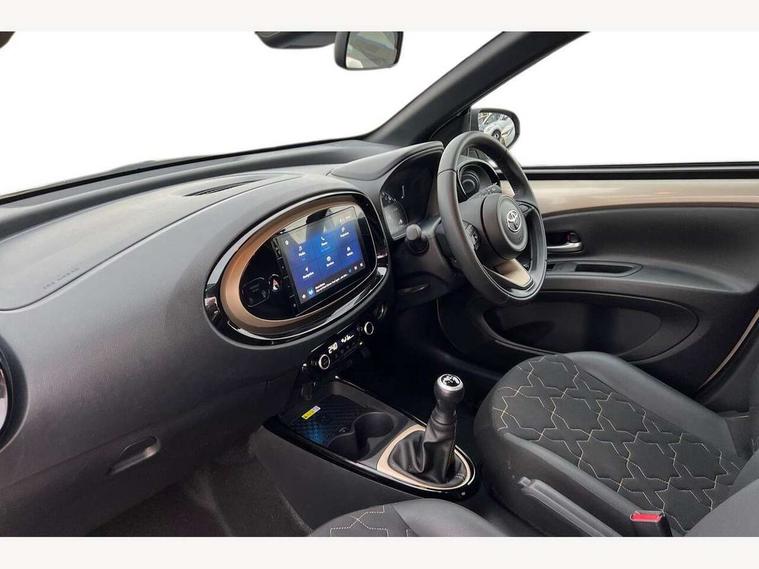 4.2" TFT colour screen, Adjustable speed limiter, Analogue speedometer, Bluetooth connectivity, Digital tachograph, Driver attention alert system, eCall emergency call system, Electric power steering, Front and rear parking sensors with auto brake, Intersection turn assist, Key reminder warning, Noise reduction kit, Pre collision system with emergency steering assist, Remote boot door release on key, Reversing camera with static guide lines, Smart entry and push button start, Speed limit display, Start and stop, Wireless charger, Wireless Smartphone Integration includes Apple CarPlay and Android auto, Vehicle Stability Control (VSC), 4 speakers, 9" HD multimedia display touch screen with Toyota smart connect, DAB digital audio broadcast, USB connector, Auto headlights, Auto wipers, Automatic headlights cut-off, Automatic high beam On/Off switch, Bicycle towing hook, Black fog light surrounds, Black side protection mouldings, Black wheel arch mouldings, Body colour door handles, Body coloured front bumper, Boot door scuff plate, Eclipse black rear bumper, Electric heated door mirrors, Follow me home headlights, Front and rear underruns in silver, Front fog lights, Front power windows, Gloss black door mirrors, Gloss black upper front grille, Headlight cut-off reminder, LED daytime running lights guide, LED front light guide, LED High mounted stop lamp, LED projector headlights, Manual day/night rear view mirror, Manual headlight levelling, Pagoda roof, Power adjustable door mirrors, Power back door, Privacy glass, Rain sensor, Rear combination lights LED bulb type, Rear side wing doors, Rear windscreen defogger, Rear windscreen wiper, Remote hazard lights system, Short antenna, Variable intermittent windscreen wipers, 12v power outlet - front, 2 seat bench in 2nd row, 3 spoke leather steering wheel, 50/50 split folding rear seat, Adhesive roof headlining, Adjustable speed limiter switch on steering wheel, Audio and telephone switches on steering wheel, Auto air conditioning, Black roof lining, Body colour satin anodised insert on steering wheel, Boot light, Centre room light, Chrome interior door handles, Chrome surround on air conditioning buttons, Clean air filter, Console box storage, Floor mats, Front and rear cup holders, Front head rest deco art, Front head restraints, Height adjustable driver seat, Intelligent adaptive cruise control switch on steering wheel, ISOFIX child restraint system on rear seats, Lane departure alert switch on steering wheel, Leather gearshift knob, Light blue ambient lighting in centre console, Manual tilt steering wheel, Manually reclining and sliding driver seat, Manually reclining and sliding front passenger seat, Multimedia switches on steering wheel, Partial synthetic leather upholstery, Pollen filter, Rear door pockets, Rear head restraints, Satin silver insert on gear shift knob, Single compartment glovebox with lights, Single front passenger seat, Soft tonneau cover, Sun visors with mirror on driver and passenger side, Voice recognition switch on steering wheel, Toyota safety sense pack - Aygo X, Anti lock braking system + Electronic brake force distribution, Child safety door lock, Emergency brake light signal (EBS), Hill start assist control (HAC), Passenger airbag on/off switch, Seat belt reminder for front and rear seats, Supplement restraints system (SRS) - 6 airbags, Traction control, Tyre pressure warning system, Immobiliser, Remote power door locks, Black wheel centre caps, Tyre repair kit,