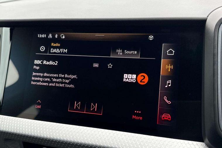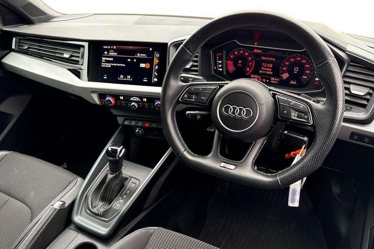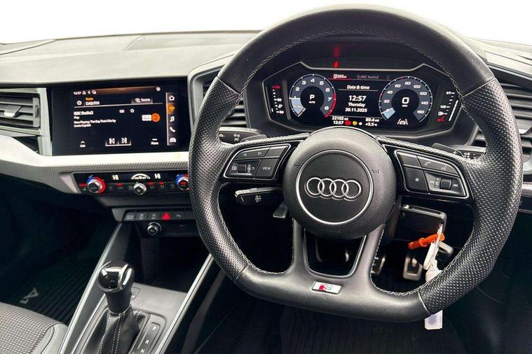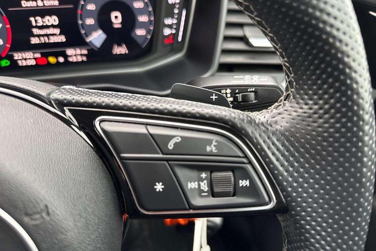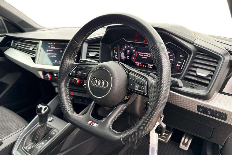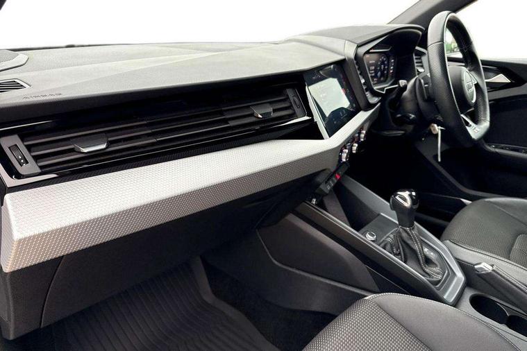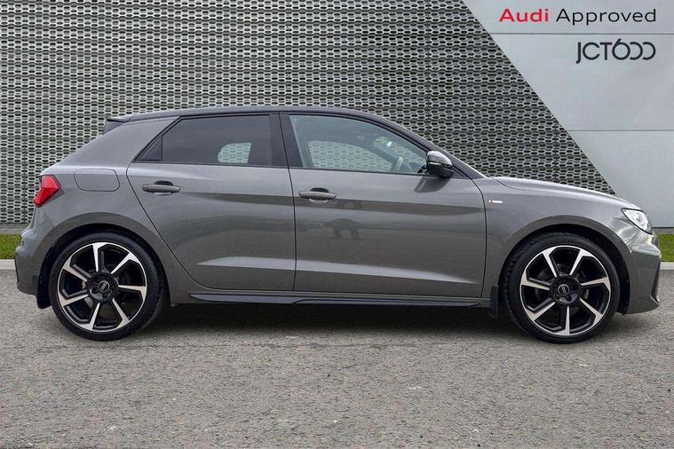 Aluminium trim for control switches, air vents and digital instrument cluster, Silver grey inlays polygon structure in diamond paint finish, Structured grey accent areas including air vents, door handle recesses and centre console in quartz paint finish, Black styling pack - A1 Sportback Black Edition, LED interior lighting pack - A1, Luggage compartment pack - A1, 18" 7 spoke rotor design alloy wheels in gloss anthracite black, diamond cut finish, Anti theft alarm, Anti theft wheel bolts and loose wheel warning, Audi pre-sense front with pedestrain and cyclist recognition, Immobiliser, Remote central locking with 2 foldaway keys, 1 x SDXC card reader, 2 x USB type C connection points, DAB Digital radio, MMI radio plus with 8.8" colour MMI display screen and MMI touch, 3x3 point rear seatbelts, Brake assist function, Driver and front passenger airbag with front side and head airbags, Electronic Stability Control including ABS, EBD, ASR and EDL, Front passenger airbag deactivation switch, Hill hold assist, Seatbelt height adjustment for front seats, Seatbelt monitoring, Tyre pressure warning light, Warning triangle and first aid kit, Auto dimming rear view mirror, Black door mirrors, Black side skirts, Body coloured bumpers, Door sill trims with aluminium inlays and logo, Electric front and rear windows, Electrically adjustable, heated, folding door mirrors with integrated LED side indicator, Front side air inlets in grained matt black and C frame in titanium black, Heat insulating glass windscreen and side windows, Heated rear windscreen, LED headlights with LED rear lights + dynamic rear indicators + headlight adjustment and high beam, turning light + LED daytime running lights, Radiator protective grille frame in matt aluminium silver, Rain and light sensors, Rear diffuser strip in matt titanium black, Rear fog lights, Rear wiper, Side front spoiler lips in grained matt black, 12V socket in centre console with two cup holders, 3 rear seats with headrests, 3 spoke flat bottomed multi-function plus leather steering wheel with S badging, grips in preforated leather, contrast stitching and paddle shift, 40:60 Split folding rear seat or folded fully, Black cloth headlining, Driver and passenger seat with manual height adjust with forward and backwards adjustment, Front and rear black floor mats with contrast stitching in fine silver, Front head restraints, Height and reach adjustable steering wheel, ISOFIX child seat mounting for front passenger and outer rear seats including top tether attachment point of outer rear seats, Leather gear knob with aluminium trim, Luggage compartment light with front and rear reading lights, Manually adjustable lumbar support in front seats, Stainless steel pedals, 10.25" Digital instrument cluster display classis style instrument dials + speed, odometer, time, outside temperature, telephone menu + fuel level warning, Audi connect safety emergency and service including E-call, Audi drive select - power steering assistance + engine + gear shift 3 preset modes (auto, dynamic, efficiency and an Individual mode), Audi smartphone interface with connect compatible smartphone via USB directly MMI display + Nav, music, third party apps controlled via MMI controller, Automatic start/stop system, Bluetooth interface, Cruise control, Driver's information system, Electromechanical power steering, Lane departure warning system, Service interval indicator, Speed limiter, Voice control system, Washer fluid level indicator, Sports suspension,