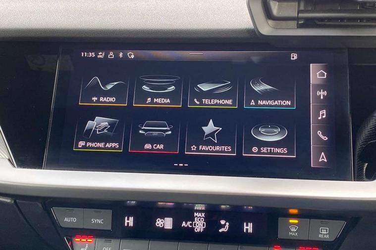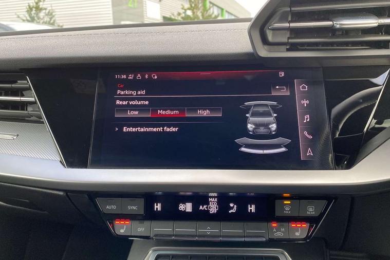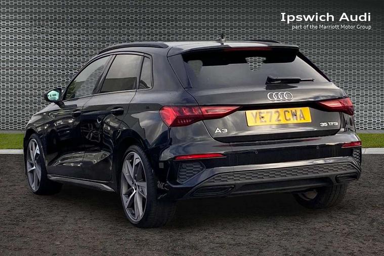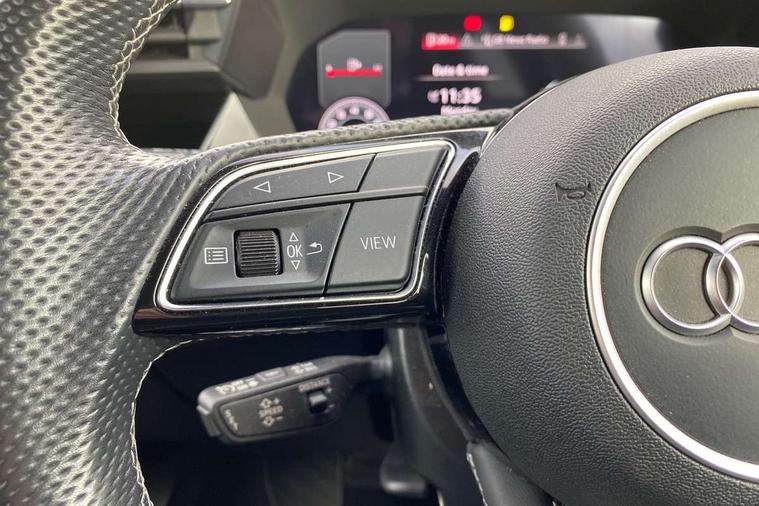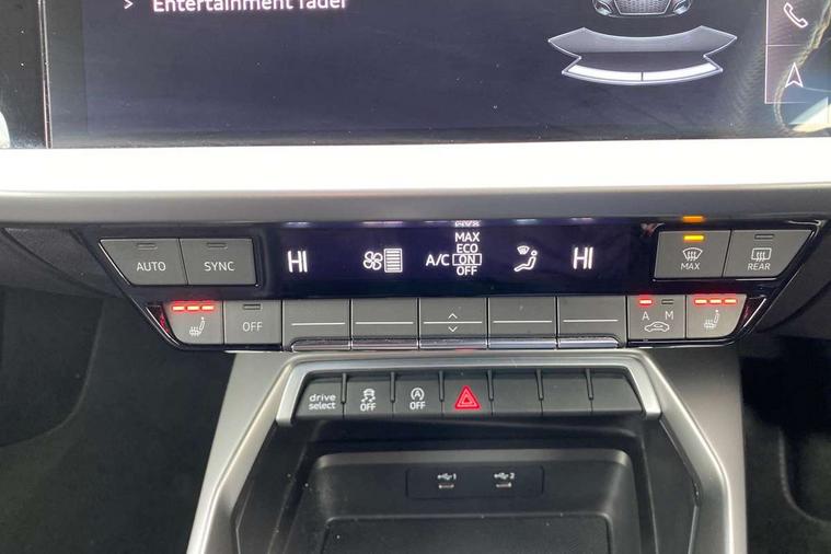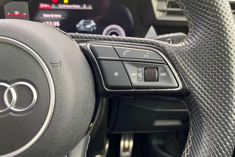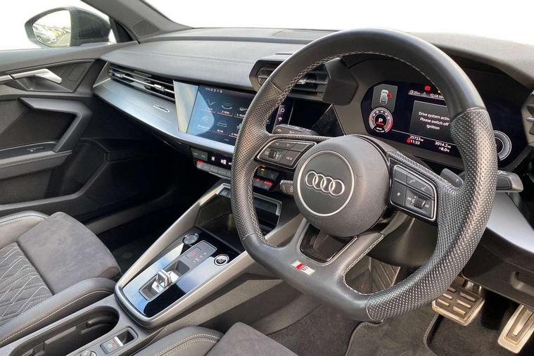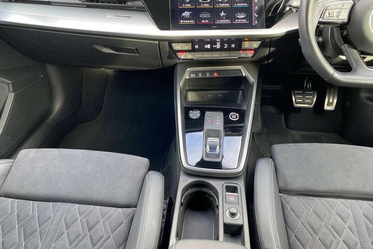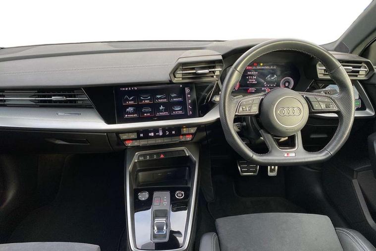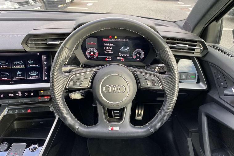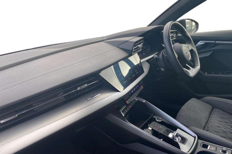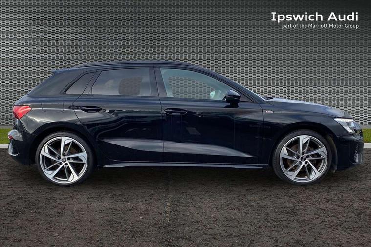Audi drive select (Auto, Comfort, Dynamic, Efficiency and Individual), Audi smartphone interface, Audi virtual cockpit plus - 12.3" full HD resolution dynamic digital instrument cluster, Automatic start/stop system with recuperation, Bluetooth interface, Collision avoidance assistant, e-Call (emergency call), Electromechanical power speed sensitive steering, Lane departure warning system, MMI Navigation Plus with high resolution 10.1" colour touch screen display, Service indicator, Trip computer, Voice control system with natural language interaction, Sports suspension, 2xUSB-C connection with data and charging functions, 6 passive loudspeakers, DAB Digital radio, 3rd brake light, Acoustic glass windscreen, Audi matrix LED headlights, LED rear lights, dynamic front and rear indicators and headlight cleaning system, Auto dimming frameless rear view mirror, Body colour front spoiler blade, Electrically adj heated/folding + automatically dimming exterior mirrors + automatic kerb side function for passenger side exterior mirror, Front electric windows, Illuminated aluminium inserts front door sills with S logo, Integrated LED indicators in door mirrors, LED daytime running lights, Light and rain sensors, Privacy glass - dark tinted rear window, rear door and side windows, Rear diffuser in grained matt black, Rear electric windows, Rear side air outlets in grained matt black, Rear side wing doors, Rear wiper, S roof spoiler, 12V socket and storage compartment in front centre console, 3 seat bench in 2nd row, 4 way electrically adjustable lumbar support for driver and front passenger, 40/20/40 split folding rear seat bench with cupholder, Black cloth headlining, Dual zone electronic climate control, Electrically adjustable front seats for driver's side, Front and rear headrests, Front/rear floor mats, Heated front seats, Height and reach adjustable steering wheel, Illuminated vanity mirror, Interior lighting - glove compartment light and right hand side, Luggage compartment floor covering, Seat side bolsters, Single front passenger seat, Stainless steel pedals and front footrest in black, Aluminium interior elements pack - A3 Sportback, Black styling pack - A3 Sportback, Dinamica microfibre/mono.pur 550 artificial leather pack - A3 Sportback, Extended ambient lighting pack - A3 Sportback, LED interior lighting pack - A3 Sportback, 3x3 point rear seat belts, Audi pre sense front, Driver and front passenger airbag with passenger airbag deactivation, Electronic Stabilisation Control (ESC) including ABS, ASR and EDL, First aid kit with warning triangle and 2 safety vests, Front side airbags with head airbags and interaction airbag, Pre-sense front with pedestrian and cyclist detection, Seatbelt monitoring, Tyre pressure loss indicator, Anti theft alarm, Anti-theft wheel bolts, Electronically operated child lock, Immobiliser, Remote control central locking, Accent surfaces in the dashboard and centre console in platinum grey silk effect paint finish, Dark spectrum aluminium inlays, 19" 5 arm trapezoid design alloy wheels in titanium matt grey with diamond cut finish,