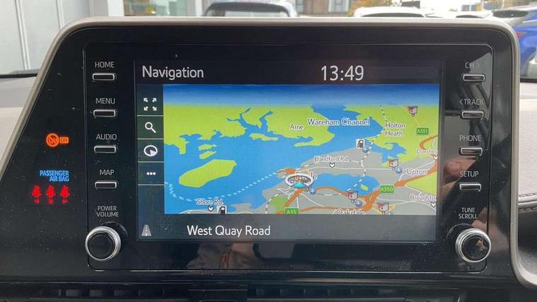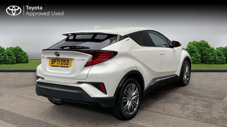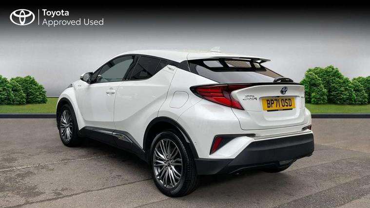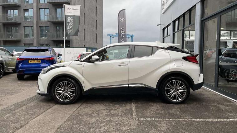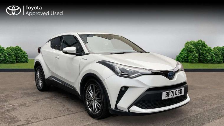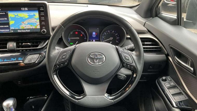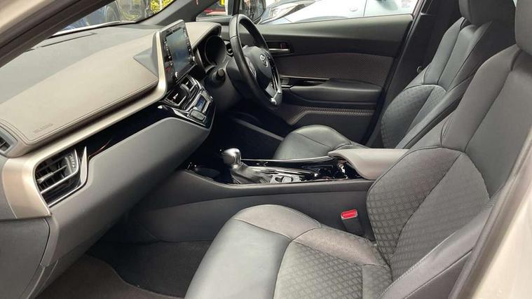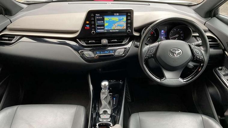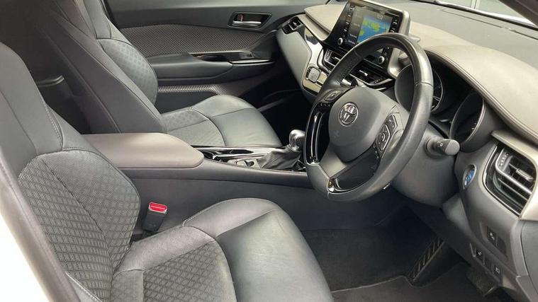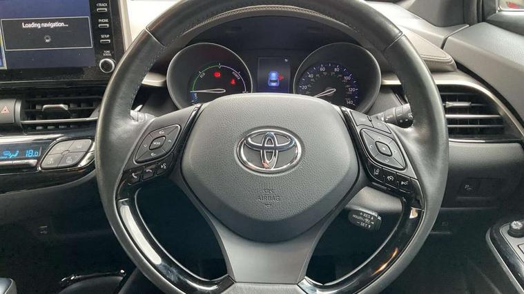 4.2" coloured TFT screen for multi-information display, Adaptive cruise control, Bluetooth connectivity, E-call, Electric power steering, Hybrid system indicator, Lane departure alert with steering control, Remote boot door release in cabin, Remote boot door release in key, Reversing camera, Road sign assist - RSA, Simple Intelligent parking assist, Touch 2 Go navigation system, Trip computer, Voice recognition, Vehicle Stability Control (VSC), 6 speakers, AM/FM radio, DAB Radio (Digital Audio Broadcasting), Toyota touch 2 multimedia system with 8" display, USB connector, Wi-fi connectivity, Adaptive front light system, Adaptive LED Headlights, Anti-jam protection on power windows, Auto high beam, Auto up and down function on all power windows, Automatic headlight levelling, Automatic headlights, Automatic headlights cut-off, Black and body coloured rear bumper, Black upper front grille, Body colour door handles, Body colour door mirrors, Body colour front spoiler lip, Body coloured front bumper, Boot door release with push button, Electric heated door mirrors, Follow me home headlights, Front and rear power windows, Hard tonneau cover, Honeycomb lower front grille, LED daytime running lights, LED fog lights, LED front light guide, LED High mounted stop light, LED rear brake lights, LED rear combination lights, Noise reduction layer on front windows and windscreen, Power adjustable door mirrors, Privacy glass, Rain sensor, Rear sequential indicators, Rear side wing doors, Rear spoiler, Rear tailgate, Rear window defogger, Rear window wiper, Shark fin antenna, UV-filter on driver and passenger windows, UV-filter on rear windows, 12v power outlet - front, 3 rear headrests, 3 seat bench in 2nd row, 3 spoke leather steering wheel, 60/40 split folding rear seat, Adjustable rear headrests, Adjustable speed limiter switch on steering wheel, Assist grips front and centre pillar, Audio and telephone switches on steering wheel, Black front door assist grips, Blue ambient lighting on front cup holders, Blue ambient lighting on front doors, Boot light, Chrome interior door handles, Driver and front passenger personal light, Driver and front passenger Whiplash Injury Lessening seats, Driver and passenger seatback pockets, Dual zone automatic air conditioning, Floor mats, Front cupholders, Front head restraints, Front sports seats, Glovebox with internal light, Heated driver and front passenger seats, Heated steering wheel, Hooks for luggage holding net, Humidifying Nanoe air purifier, Illuminated entry system, Isofix attachments on rear seats, Leather gearshift, Light on driver sun visor, Light on passenger sun visor, Manual telescopic steering wheel, Manual tilt steering wheel, Microphone on front personal light, Mirror on driver sun visor, Mirror on passenger sun visor, Multimedia switches on steering wheel, Pollen filter, Power adjustable lumbar support on driver seat, Power tilting cushion on driver seat, Shopping bag hooks, Single front passenger seat, Slow opening on lower glovebox, Voice recognition switch on steering wheel, Leather pack - C-HR, Tech with parking sensor pack - C-HR, 16 Disk front wheel brake, 3x3 point rear seatbelts, ABS+EBD+Brake assist, Electronic parking brake, Front and rear seatbelt reminder, Front passenger airbag on/off switch, Hill start assist control (HAC), Pre collision system with pedestrian detection, Pre-tensioners and force limiters, Rear door child safety locks, SRS Airbags - Driver + Front passenger, front side, front and rear curtain and driver's knee airbags, Toyota safety sense, Tyre pressure monitoring system, Acoustic vehicle alert system (AVAS), Glass-breaking alarm sensors, Immobiliser, Intrusion alarm, Intrusion sensor, Motion sensor alarm, Power door locks, Power passenger window lock, Remote central locking, Black lower dashboard, Dark brown upper dashboard, Piano black console, Silver deco line on upper dashboard, Tyre repair kit,