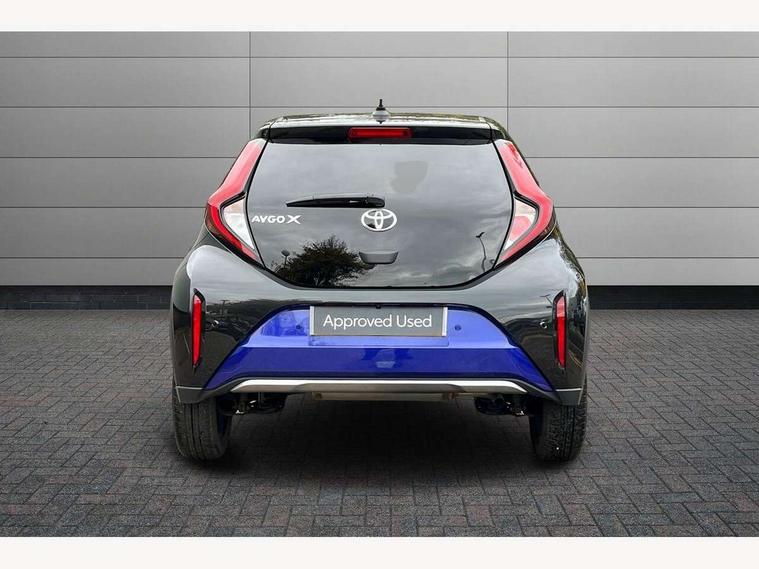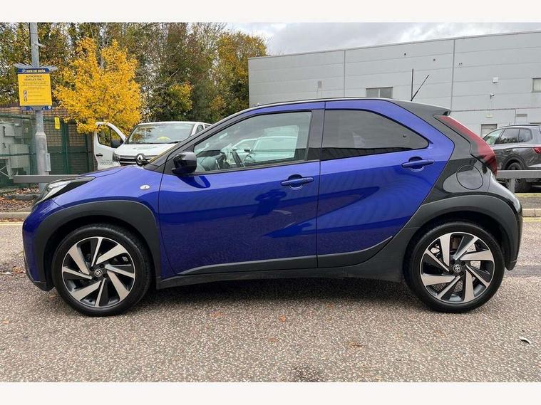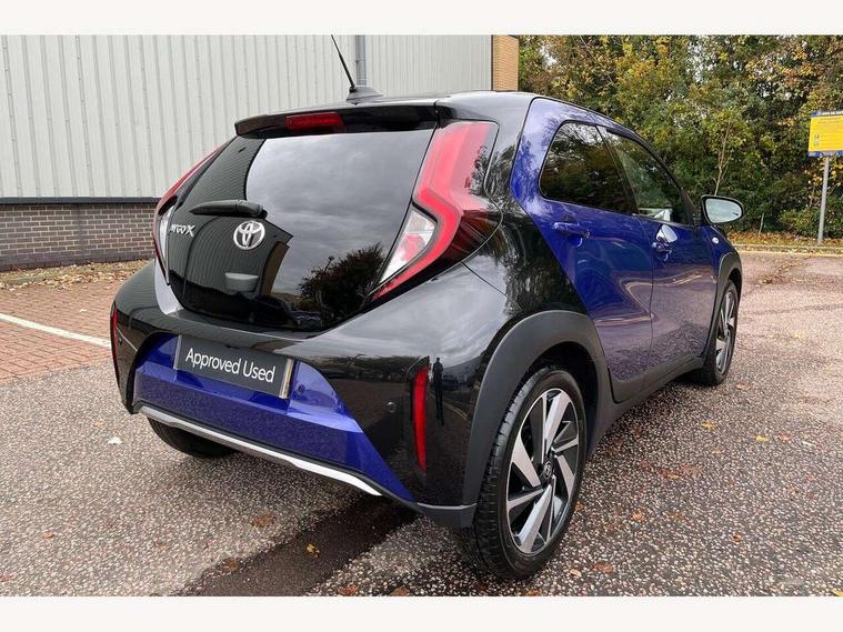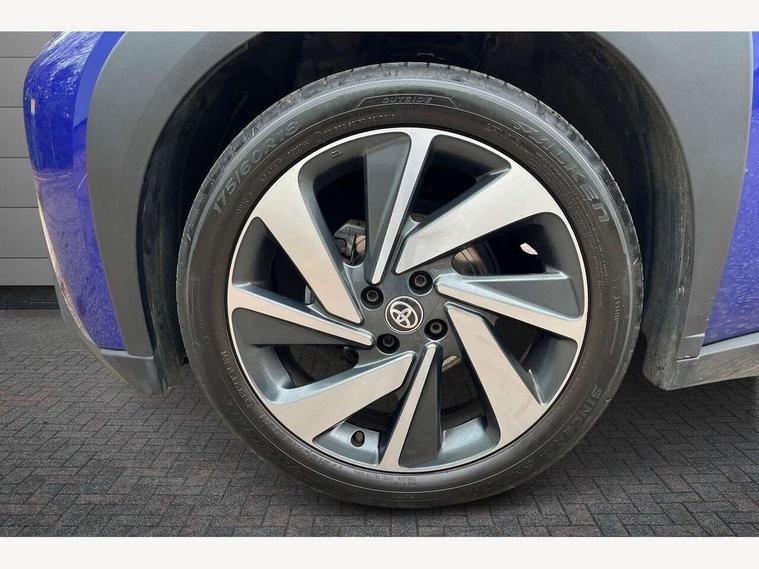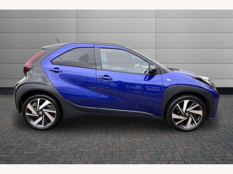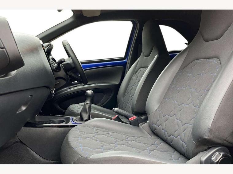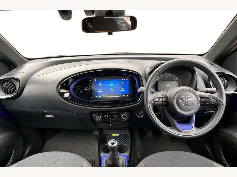 4.2" TFT colour screen, Adjustable speed limiter, Analogue speedometer, Bluetooth connectivity, Digital tachograph, Driver attention alert system, eCall emergency call system, Electric power steering, Front and rear parking sensors with auto brake, Intersection turn assist, Key reminder warning, Noise reduction kit, Pre collision system with emergency steering assist, Remote boot door release on key, Reversing camera with static guide lines, Smart entry and push button start, Speed limit display, Start and stop, Wireless charger, Wireless Smartphone Integration includes Apple CarPlay and Android auto, Vehicle Stability Control (VSC), 4 speakers, 9" HD multimedia display touch screen with Toyota smart connect, DAB digital audio broadcast, USB connector, Auto headlights, Auto wipers, Automatic headlights cut-off, Automatic high beam On/Off switch, Bicycle towing hook, Black fog light surrounds, Black side protection mouldings, Black wheel arch mouldings, Body colour door handles, Body coloured front bumper, Boot door scuff plate, Eclipse black rear bumper, Electric heated door mirrors, Follow me home headlights, Front and rear underruns in silver, Front fog lights, Front power windows, Gloss black door mirrors, Gloss black upper front grille, Headlight cut-off reminder, LED daytime running lights guide, LED front light guide, LED High mounted stop lamp, LED projector headlights, Manual day/night rear view mirror, Manual headlight levelling, Pagoda roof, Power adjustable door mirrors, Power back door, Privacy glass, Rain sensor, Rear combination lights LED bulb type, Rear side wing doors, Rear windscreen defogger, Rear windscreen wiper, Remote hazard lights system, Short antenna, Variable intermittent windscreen wipers, 12v power outlet - front, 2 seat bench in 2nd row, 3 spoke leather steering wheel, 50/50 split folding rear seat, Adhesive roof headlining, Adjustable speed limiter switch on steering wheel, Audio and telephone switches on steering wheel, Auto air conditioning, Black roof lining, Body colour satin anodised insert on steering wheel, Boot light, Centre room light, Chrome interior door handles, Chrome surround on air conditioning buttons, Clean air filter, Console box storage, Floor mats, Front and rear cup holders, Front head rest deco art, Front head restraints, Height adjustable driver seat, Intelligent adaptive cruise control switch on steering wheel, ISOFIX child restraint system on rear seats, Lane departure alert switch on steering wheel, Leather gearshift knob, Light blue ambient lighting in centre console, Manual tilt steering wheel, Manually reclining and sliding driver seat, Manually reclining and sliding front passenger seat, Multimedia switches on steering wheel, Partial synthetic leather upholstery, Pollen filter, Rear door pockets, Rear head restraints, Satin silver insert on gear shift knob, Single compartment glovebox with lights, Single front passenger seat, Soft tonneau cover, Sun visors with mirror on driver and passenger side, Voice recognition switch on steering wheel, Toyota safety sense pack - Aygo X, Anti lock braking system + Electronic brake force distribution, Child safety door lock, Emergency brake light signal (EBS), Hill start assist control (HAC), Passenger airbag on/off switch, Seat belt reminder for front and rear seats, Supplement restraints system (SRS) - 6 airbags, Traction control, Tyre pressure warning system, Immobiliser, Remote power door locks, Black wheel centre caps, Tyre repair kit,