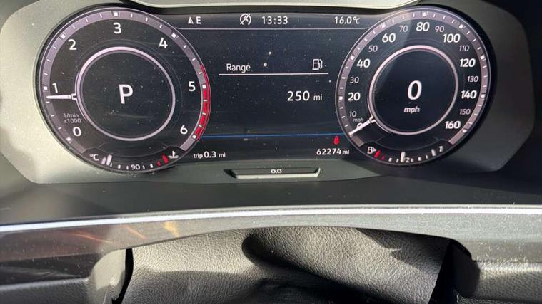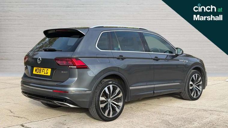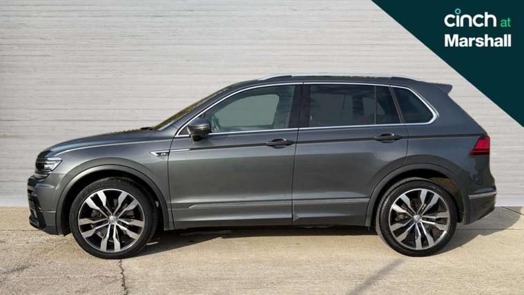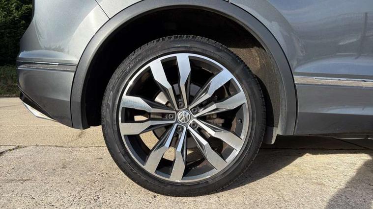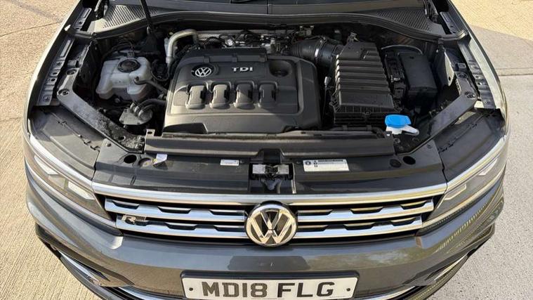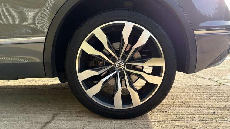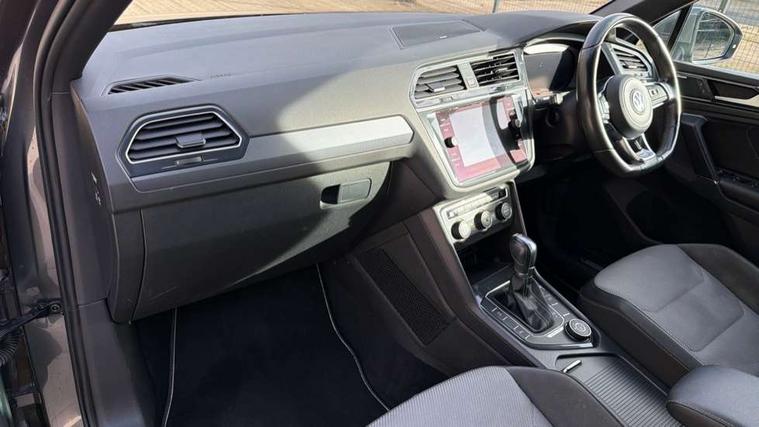 App-Connect, Active information display, Adaptive cruise control, Bluetooth phone integration system, Distance control assist, Drive mode selector, Fatigue detection system, Instrument cluster, Lane assist, Low washer fluid warning light, Outside temperature display, Progressive power assisted steering, Service interval indicator, Speed limiter, Warning lights, Diesel particulate filter, Dynamic chassis control, XDS electronic differential lock, 2x USB sockets in front, Aux-in socket, DAB Digital radio, MP3 compatible single CD player, SD card slot, Auto dimming interior mirror, Automatic activation of hazard warning lights, Body colour door handles, Body colour door mirrors, Body colour rear spoiler, Body colour side skirt, Body coloured bumpers, Chrome side window surrounds, Chrome trimmed radiator grille, Coming/leaving home lighting function, Dusk sensor + auto driving lights, Electric folding door mirrors, Electric heated + adjustable door mirrors, Electric panoramic sunroof with sunblind, Front and rear electric windows, Heated rear window, LED headlights with dynamic light assist daytime running lights and cornering front fog lights, LED rear lights, Piano black rear diffuser, R Line body kit, Rain sensor windscreen wipers, Rear windscreen washer and wiper with interval delay, Silver roof rails, Silver under body guard, Tinted windows (B pillar backwards), Twin trapezoid chrome exhaust pipes, Windscreen wipers/ intermittent wipe + 4 position delay, 12V Accessory socket in centre console, 3 rear headrests, 3 zone climate control, 4 load lashing points, 40:20:40 split folding rear seats, Bag hook in luggage compartment, Black headlining, Driver + front passenger lumbar support, Foldable passenger seatback, Front + rear carpet mats, Front centre armrest with 12v socket, Front centre armrest with storage + rear 2 air vents + cupholders, Front seatback folding tables, Height/reach adjust steering wheel, Illuminated driver/passenger vanity mirrors, Illuminated scuff plates, Interior light with delay, Isofix Preparation 2 Rear child seats, Leather gear knob, Leather multifunction steering wheel with paddle shift, Load through provision with 2 cupholders when folded, Lockable cooled glovebox, Luggage compartment lighting, Luggage compartment side storage, Map pockets on front seats, Passenger seat height adjuster, Rear cupholders, Removable luggage cover, Sliding/reclining rear seats, Stainless steel pedals, Storage compartment in driver's door, Storage compartment in passenger's door, Storage compartment in rear doors, Storage tray on dashboard, Sunglasses storage, Variable boot floor, Ambient lighting pack - Tiguan, 3 rear 3 point seatbelts, ABS+EBD+Brake assist, Active bonnet, Active pedestrian safety system, Curtain airbags, Driver/Front Passenger airbags, Driver/Passenger whiplash optimised head restraints, Drivers knee airbag, DTC - Drag torque control, Electronic parking brake with auto hold, ESP with EDL + ASR, First aid kit, Front assist including city emergency braking, Front side airbags, Head airbag system, Height adjustable front 3 point seatbelts + pretensioners, Hill hold control, Passenger airbag deactivate switch, Passenger knee airbag, Pre crash system, Rear side airbags, Seatbelt warning lamp and buzzer, Two tone horn, Warning triangle, Alarm with interior protection, Electronic engine immobiliser, Remote central locking with 2 remote folding keys, Aluminium decorative inserts, Chrome door trim inserts, 20" Suzuka alloy wheels + anti theft wheel bolts, Tyre repair kit,