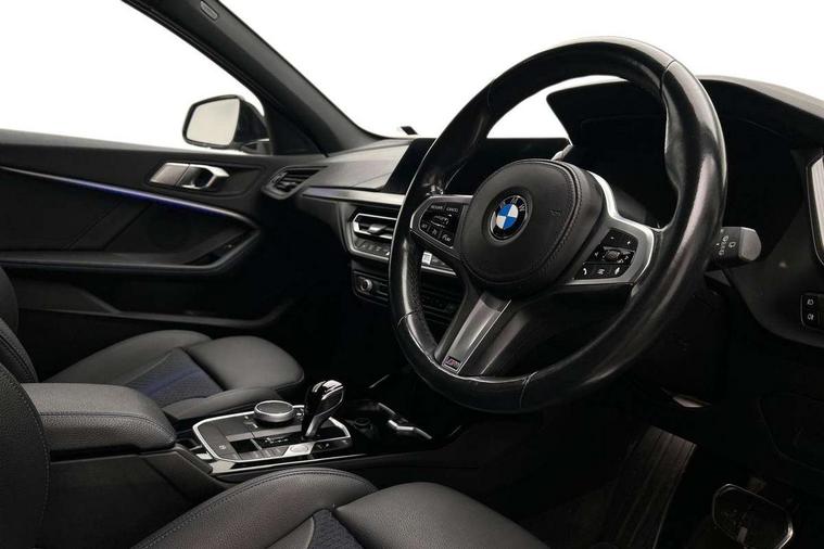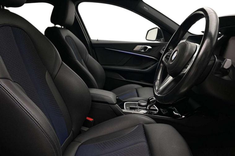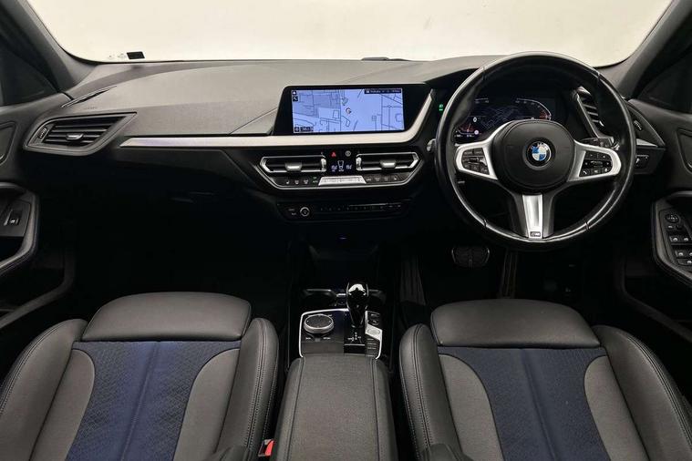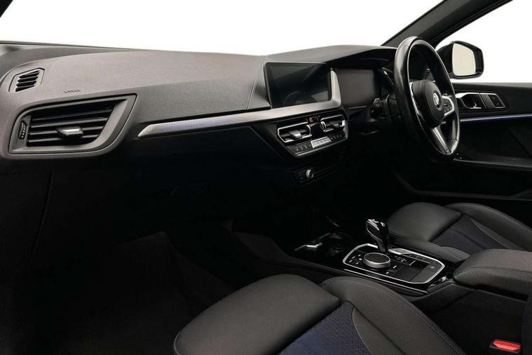 Active guard plus, Attentiveness assist, BMW Online services, BMW Teleservices, Check Control warning system for monitoring of lights and door/luggage compartment open warning, Connected eDrive Services, Eco pro mode, Integrated owners handbook, Oil sensor for level and grade, On board computer, Optimum shift indicator, Personal Profile, Pull away assistant, Speed limiter, Aluminium lightweight construction, Anti roll bar front and rear, Balancer shaft, Double VANOS, Drive Performance Control, Electronic differential lock, High precision injection, M sport suspension, Petrol Particulate Filter, VALVETRONIC engine management, Bluetooth audio streaming, DAB Digital radio, Auto dimming rear view mirror, Automatic headlight beam throw control, Automatic windscreen wipers and automatic headlight, Body colour door handles, Body colour mirror caps, Chrome 'M' logo side designation, Chrome exhaust tailpipe in single, round (Exhaust tailpipe, stainless steel - single, round), Chrome kidney grille frame with Satin Aluminium struts, Direction indicator side lights in exterior mirrors, Electric folding and anti dazzle exterior mirrors, Fading support, Follow me home headlights, Front and rear bumper system with replaceable deformation elements, Front and rear electric windows with open and close fingertip control, anti trap facility and comfort closing, Front door sill finishers in black plastic with M designation in metallic look, Green tinted heat protection glazing, Heated, electrically adjustable exterior mirror aspheric on driver side, convex on passenger side, High gloss shadowline window frame, Recess cover mirror frames and B/C pillar embelisher trim, High level third brake light, LED daytime running lights, LED eyebrow turn indicators, LED front fog lights, Lightweight engineering, Matt black air guide grilles, Model designation on right side of tailgate, Nearside reverse light in rear light cluster, Preparation for high beam assistant, Rain sensor including auto headlights activation, Rear fog lights, Rear window wiper, Shark fin antenna, Visible VIN plate, Welcome lighting, 12V power socket in centre console, 3 rear seat head restraints, 3 spoke M sports design leather steering wheel finished in nappa leather with specific M badge, Anthracite headlining, Anthracite Velour floor mats, Child seat ISOFIX attachment for two outer rear seats and front passenger seat with anchorage points, Conditioned based service, Dakota leather upholstery with perforation and contrast stitching, Driver and front passenger seat heating, Folding rear clothes hook, Four grab handles integrated in roof lining, Front and rear door pockets, Front and rear door pockets with bottle holders, Front and rear side armrest integrated into door trim, Front armrest foldable with integrated storage compartment, Front sports seats with electric side bolster adjustment, Glove compartment, Height adjustable front head restraints, Manual adjust steering wheel, Multi-function controls for steering wheel, Storage compartment in centre console, Sun visors with vanity mirrors and insert tab, Two zone automatic air conditioning, Additional interior lighting pack - 1 Series, Connected pack professional - 1 Series, Extended storage pack - 1 Series, Interior lights pack - 1 Series, Luggage compartment pack - 1 Series, M Sport exterior styling aerodynamics pack - 1 Series, 2 tone horn, 3 point seatbelts on all seats, front pyrotechnic belt tensioners, stopper and belt force limiters, rear coded belt buckles, Airbags - front driver/passenger, front & rear curtain, front side, Anti lock braking system (ABS) with brake assist, BMW emergency call, Brake drying, Braking readiness, Crash sensor activating central locking release, hazard warning lights, fuel cut off, interior lighting + activation of safety battery terminal clamp, Driver and front passenger seat belt security check, Dynamic stability control + (DSC+), Dynamic Traction Control - DTC, Electrically operated hand brake, Front and rear disc brakes, Front passenger manual airbag deactivation, Seatbelt warning, Side impact protection, Tyre pressure monitoring system, Warning triangle and first aid kit, Automatic drive away locking facility, Central locking switch for all doors, fuel filler cap and luggage compartment, Deadlocking function system to all doors, Locking wheel bolts, Remote control with integrated key with High-gloss Black inlay and M designation and 1 button for open/ close lock, window, open luggage compartment, Start/stop button with comfort go keyless engine start and auto start stop deactivation button, Thatcham Cat.1 alarm and immobiliser, Contrast stitching on instrument panel, Reduced rolling resistance tyres,