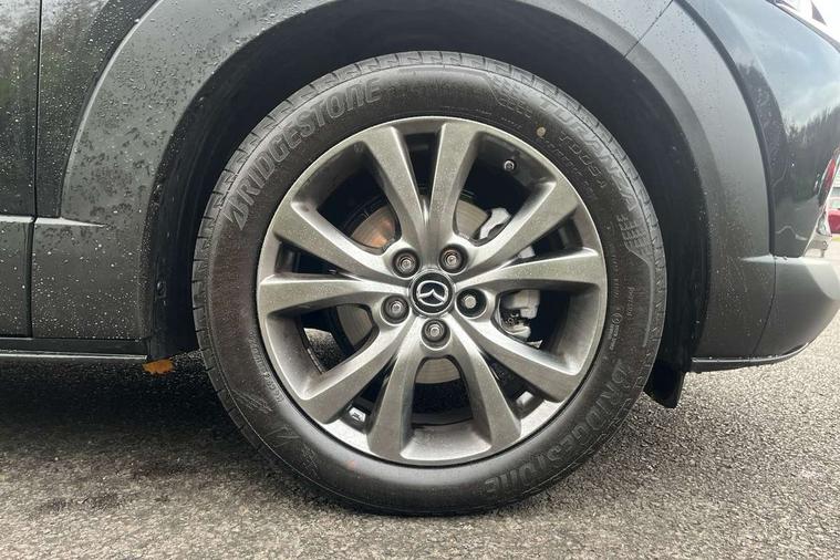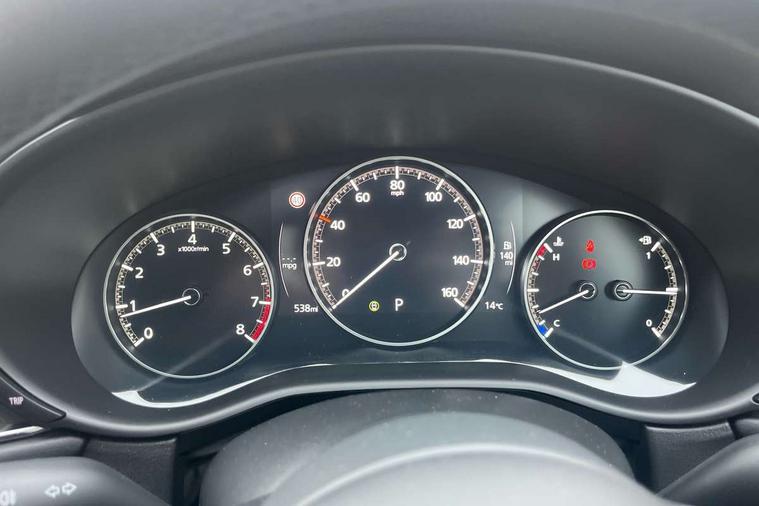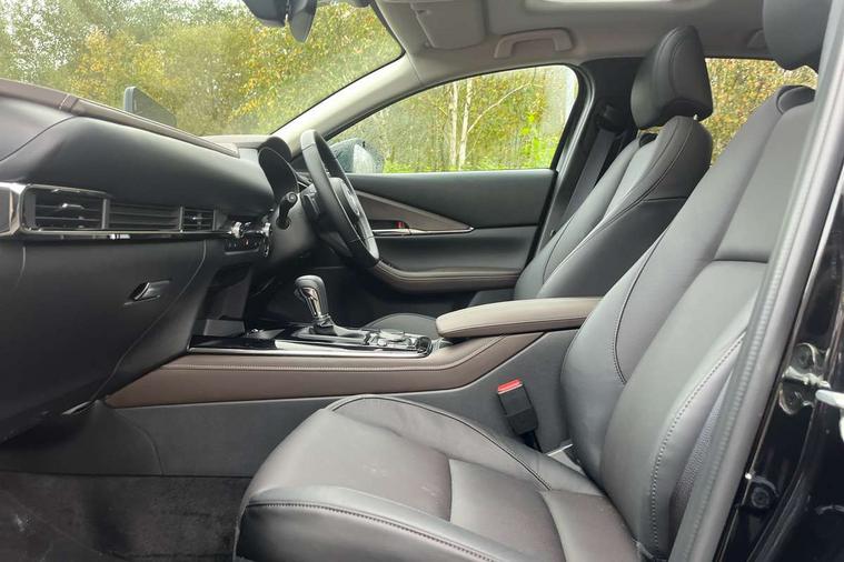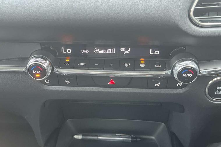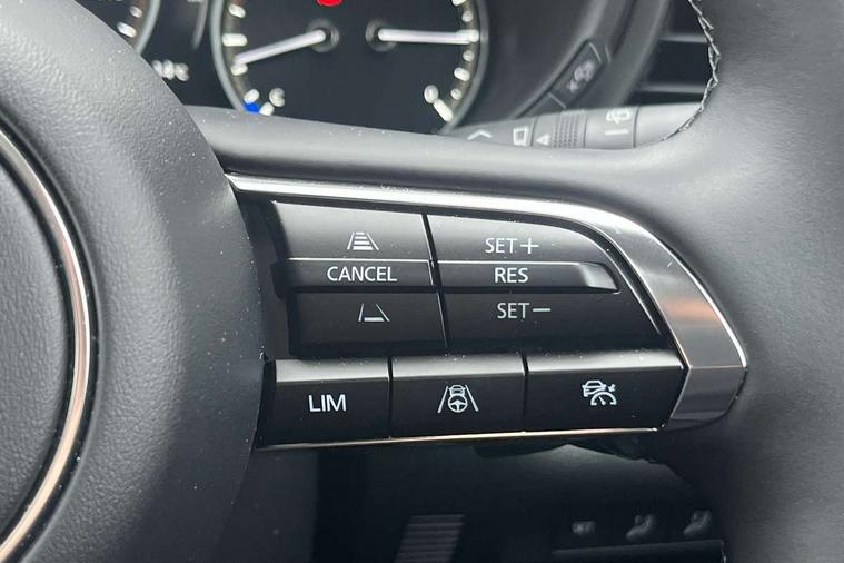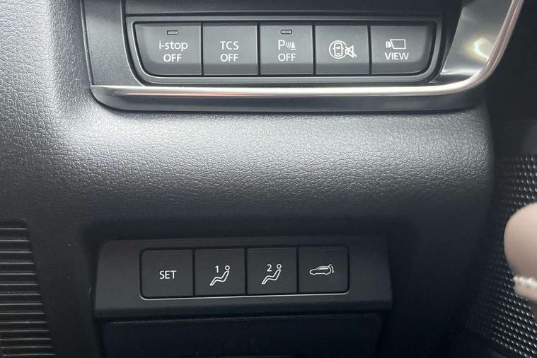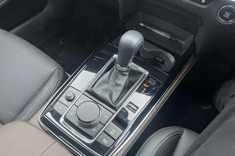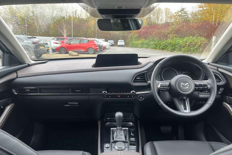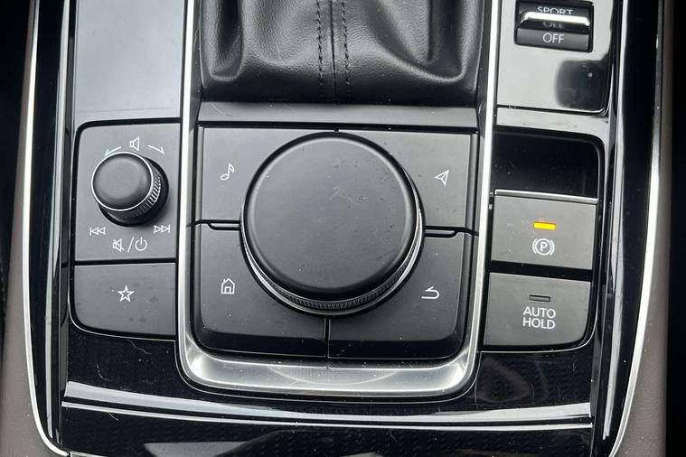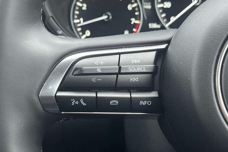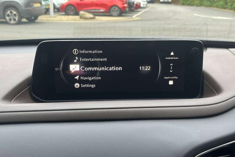 10.25" display with Mazda Connect infotainment, 360 View Monitor, 7" TFT Colour driver instrument panel display, Adaptive cruise control (Mazda radar cruise control) features stop and go, Blind spot monitoring with rear cross traffic alert, Cruising Traffic Support, Drive mode selector, Driver attention alert system, Driver monitoring system, E-call with GPS, Emergency stop signalling system, Engine start/stop button, Front and rear parking sensors, Front Cross Traffic Alert, Integrated Alexa Voice Assistant, Integrated bluetooth, Integrated Mazda navigation system, Intelligent speed assist, Lane keep assist system (LAS) with Lane departure warning system (LDWS), Mazda connected services, PAS, Power lift gate, Qi wireless charging, Service indicator, Tailgate, Traffic sign recognition, Trip computer, Windscreen projected colour active driving display (HUD), Wireless Apple CarPlay/Android Auto, i-stop, 2 x USB Type-C inputs, AM/FM and DAB radio, Bose surround sound system with 12 Speaker, Bose center point, Bass match and audio pilot technology, Multimedia Commander including separate volume dial, Steering wheel mounted audio/bluetooth controls, Adaptive LED Headlights, Auto dimming driver's door mirror, B-pillar and C-pillar garnishes in gloss black finish, Body coloured, electrically adjustable, heated auto power folding door mirrors with integrated indicators, Chrome finish signature wing in front grille, Coming/leaving home lighting function, Door mirrors with adjustable memory and tilt-down function when reversing, Dual bright finish exhaust tip trim, Dusk sensing headlights, Electric front/rear windows with one touch auto up/down, Frameless auto dimming interior rear view mirror, Front kodo turn signal, Front wiper de-icer, Gloss black front grille, Gloss black rear roof spoiler, High beam assist, LED auto headlight levelling, LED signature daytime running lights, Power tilt/slide sunroof, Privacy glass (rear side windows and rear screen), Rain sensing front wipers with adjustable speed and intermittent wipe, Rear fog lights, Rear side wing doors, Rear wiper, Signature LED rear combination lights, Third brake light, 12V power outlet in centre console, 3 seat bench in 2nd row, 60/40 split fold down rear seats, Bright interior trim accents with steering wheel centre bezel, surround of engine start / stop button and glove box handle, Dashboard, door cards and front centre armrest in rich brown leather, Driver and front passenger visors with covered vanity mirror and driver ticket holder, Driver's seat, power tilt, slide, recline, height and lumbar adjustment, Driver, front passenger and two rear door storage, Driver, Front passenger and two rear grab handles with coathooks, Dual zone climate control air conditioning with rear air vents, Folding rear centre armrest with two cup holders, Front and rear (x3) head restraints, Front and rear LED lighting, Front armrest, Front centre storage with two cupholders with lid, Front passenger seatback pockets, Front passengers seat manual slide, recline and height adjustment, Gear shift indicator, Glovebox illumination, Heated front seats with 3 stage setting, Heated steering wheel, ISOFIX child seat anchorage points attached on outer rear seats, Leather upholstery with interior accents, Leather wrapped gear shift knob, Leather wrapped steering wheel with telescopic and tilt adjustment, LED luggage compartment lighting, Light roof headlining and pillars, Paddle shift controls, Roof mounted sunglasses holder, Single front passenger seat, 3 point ELR front seat belts x2 with pretensioners, 3 point ELR rear seat belts, Anti-lock braking system (ABS), Drivers knee airbag, DSC - Dynamic Stability Control, Electronic parking brake with auto disengage function and auto hold function, Front and rear curtain airbags, Front and rear smart city brake support, Front dual stage driver and single stage front passenger airbags, Front passenger airbag cut-off switch, Front side airbags, G-Vectoring control plus, Hill launch assist, Manual child lock in rear doors, Mild Hybrid system with regenerative braking, Rear cross traffic braking, Seatbelt reminder for driver/front passenger and rear seats, Traction control system (TCS), Tyre pressure monitoring system (TPMS), Remote central locking with deadlocking and automatic door lock when driving, Smart keyless entry, Thatcham accredited alarm and immobiliser, Dark vinyl door panel inserts, 18" Bright silver metallic alloy wheels, Emergency tyre repair kit,
