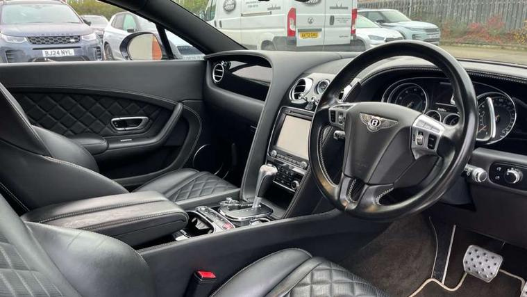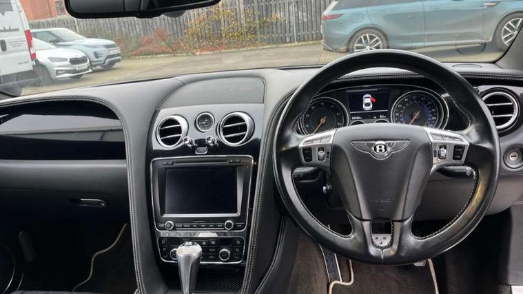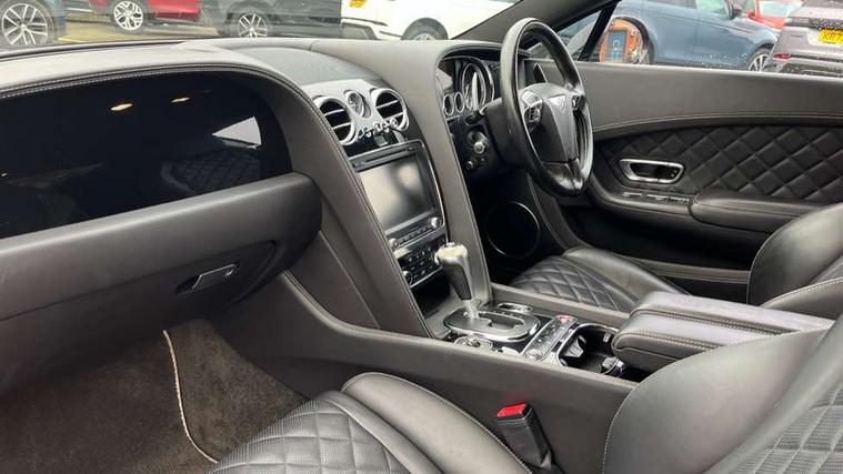 Embroidered emblems to all head restraints, Alarm/immobiliser, Anti-theft wheel bolts, Auto door lock when driving, Keyless entry, Keyless ignition, Ultrasonic alarm, 30gb Hardrive media storage, DVD System, External media interface, iPod connection, Radio/CD, Satellite Radio, Steering wheel mounted controls, Anti-lock brakes, Brake assist function, Curtain airbags, Door open warning light, Driver/front passenger airbag, Drivers knee airbag, Electronic parking brake, Electronic Stability Programme, Emergency brake force distribution, Front and rear thorax airbag system, Front passenger airbag deactivation, Hydraulic Brake Assist (HBA), Seatbelt warning, Side airbags, Traction control, Tyre pressure monitoring system, Acoustic glazing with infra red reflective, Aluminium bonnet, Bentley 'jewel' fuel filler cap, Bi-Xenon headlights and headlight washers, Body coloured bumpers, Chrome grille, Daytime running lights, Elec/heat/adj/fold door mirror+memory, Electric front windows, Heated rear windscreen, Rain sensor windscreen wipers, Rear diffuser, Retractable rear boot spoiler, 14 way Elec adj front seats/memory/lumbar control, Diamond quilted hide to seat facings and doors and rear quarter panels, Drilled alloy accelerator and brake pedals, Easy entry/electrically adj steering column+memory, Embroidered Bentley emblem in headrests, Footwell illumination, Front head restraints, Full hide trim upholstery, Illuminated centre console storage, Indented hide headlining, Interior light, Isofix attachments on outer rear seats, Knurled sports gear lever, Multi-zone climate control, Rear courtesy lights, Rear head restraints, Seatbelts-colour to match hide, Steering column mounted gear shift paddles, Vertical fluted seat style, Bluetooth telephone connectivity, Breitling clock, Continuous damping control, Front/rear park distance control, Infotainment system/satellite navigation, Power boot opening and closing, Power latching to all doors for easy entry, Service indicator, Servotronic speed sensitive power steering, Telephone voice dialling, Trip computer, Anti roll bar front and rear,