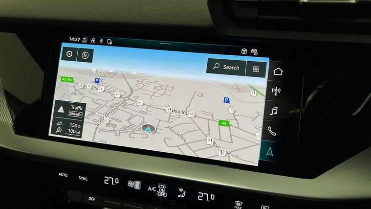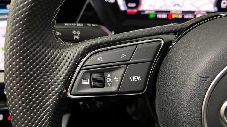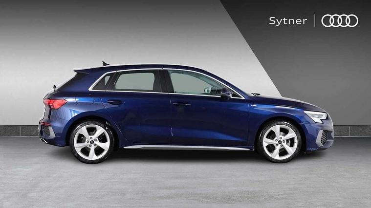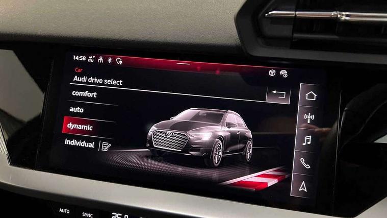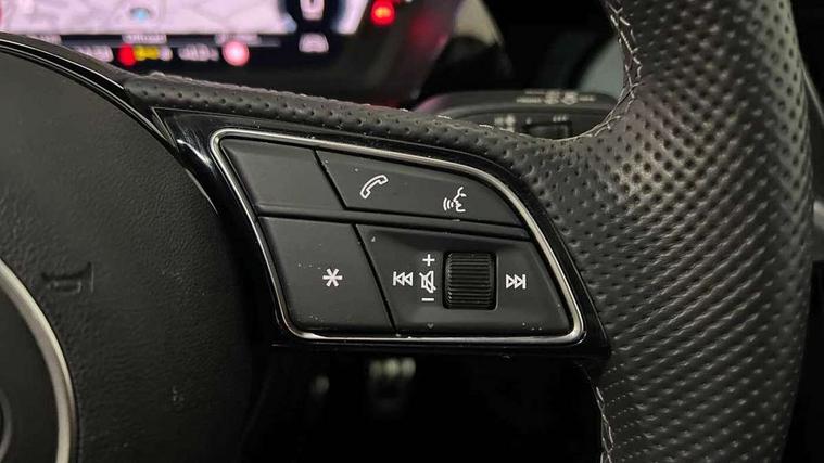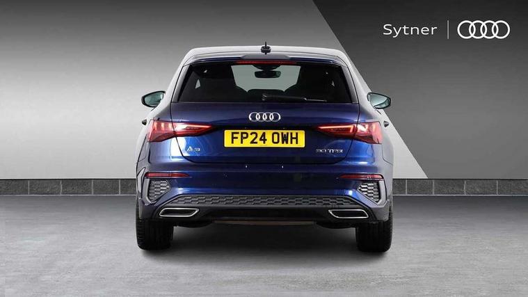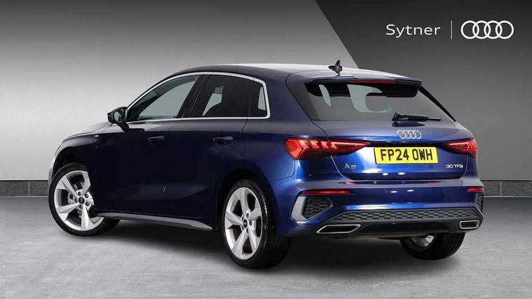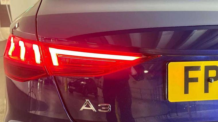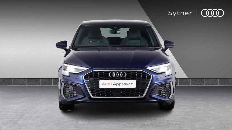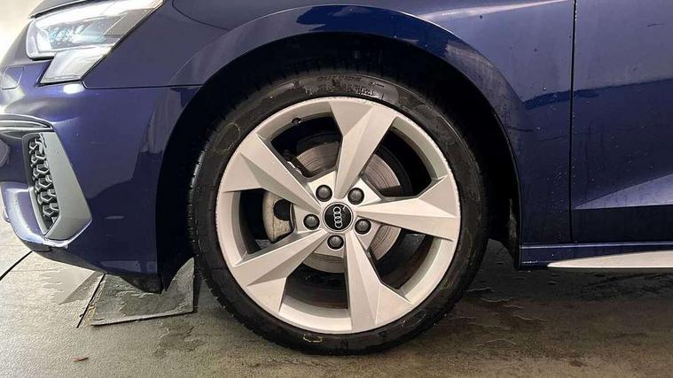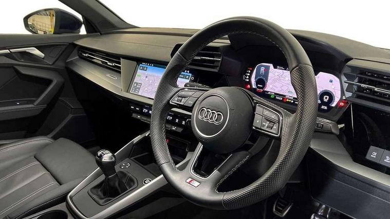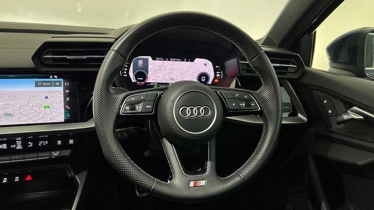 Audi drive select (Auto, Comfort, Dynamic and Individual), Audi smartphone interface, Audi Virtual Cockpit - 10.25" digital and colour instrument cluster, Automatic start/stop system with recuperation, Bluetooth interface, Camera based traffic sign recognition, Collision avoidance assistant, Cruise control, e-Call (emergency call), Electromechanical power speed sensitive steering, Lane departure warning system, MMI Navigation Plus with high resolution 10.1" colour touch screen display, Rear parking sensors, Service indicator, Trip computer, Voice control system with natural language interaction, Sports suspension, 2xUSB-C connection with data and charging functions, 6 passive loudspeakers, DAB Digital radio, 3rd brake light, Acoustic glass windscreen, Aluminium window trim, Auto dimming frameless rear view mirror, Body colour exterior mirrors, Electrically adjustable/heated/folding/auto dimming door mirrors with integrated LED indications + kerb view function for passenger side, Front electric windows, Illuminated door sills with aluminium inserts at the front with S logo, LED daytime running lights, LED headlights with LED rear lights and dynamic rear indicators, Light and rain sensors, Privacy glass - dark tinted rear window, rear door and side windows, Rear electric windows, Rear side air outlets in grained matt black, Rear side wing doors, Rear wiper, S line bumpers, S roof spoiler, 12V socket and storage compartment in front centre console, 3 seat bench in 2nd row, 3 spoke leather multifunction steering wheel, 4 way electrically adjustable lumbar support for driver and front passenger, 60/40 split folding rear seat bench, Black cloth headlining, Dual zone electronic climate control, Front and rear centre armrest in artificial leather, Front and rear headrests, Front/rear floor mats, Height and reach adjustable steering wheel, Interior lighting - glove compartment light and right hand side, Luggage compartment floor covering, Manual boot compartment lid, Manually adjustable front seats, Seat side bolsters, Single front passenger seat, Stainless steel pedals and front footrest in black, Twin leather upholstery with front sports seats S embossed logo, Aluminium interior elements pack - A3 Sportback, LED interior lighting pack - A3 Sportback, S line styling pack - A3 Sportback, 3x3 point rear seat belts, Driver and front passenger airbag with passenger airbag deactivation, Electronic Stabilisation Control (ESC) including ABS, ASR and EDL, First aid kit with warning triangle and 2 safety vests, Front side airbags with head airbags and interaction airbag, Pre-sense front with pedestrian and cyclist detection, Seatbelt monitoring, Tyre pressure loss indicator, Anti theft alarm, Anti-theft wheel bolts, Electronically operated child locks, Immobiliser, Remote control central locking, Dark spectrum aluminium inlays, accent surfaces in the dashboard and centre console in platinum grey silk effect paint finish,