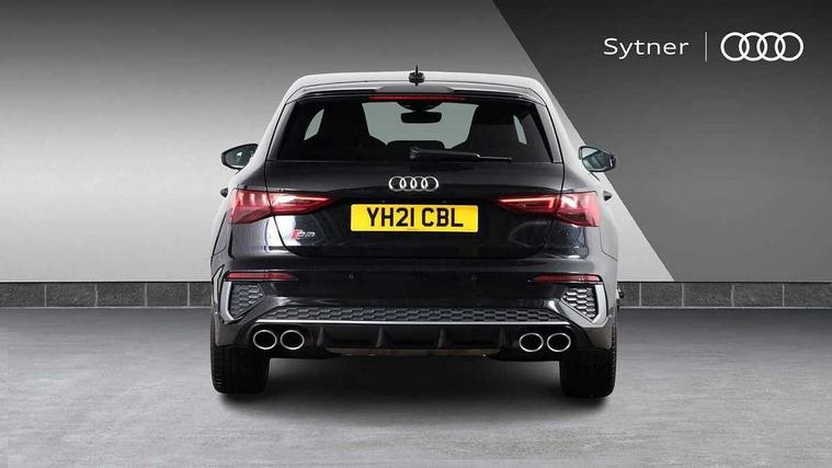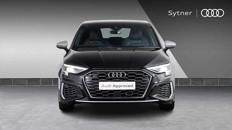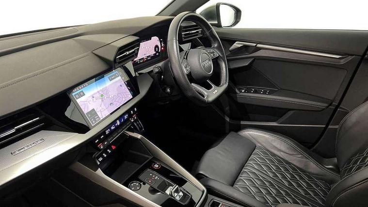 Audi connect emergency call and service, Audi drive select (Auto, Comfort, Dynamic, Efficiency and Individual), Audi smartphone interface, Audi Virtual Cockpit - 10.25" digital and colour instrument cluster, Automatic start/stop system with recuperation, Bluetooth interface, Collision avoidance assistant, Lane departure warning system, MMI Navigation Plus with high resolution 10.1" colour touch screen display, Progressive steering, Service indicator, Trip computer, Voice control system with natural language interaction, Quattro permanent all wheel drive, S sports suspension, 2xUSB-C connection with data and charging functions, 6 passive loudspeakers, DAB Digital radio, Acoustic glass windscreen, Aluminium window trim, Audi Beam uses LEDs to project the Audi S3 logo, Auto dimming frameless rear view mirror, Dual branch oval twin tailpipes in chrome plated finish, Electrically adjustable/heated/folding/auto dimming door mirrors with integrated LED indications + kerb view function for passenger side, Front electric windows, Headlight washers, Illuminated aluminium inserts front door sills with S logo, LED daytime running lights, LED headlights with LED rear lights and dynamic rear indicators, Light and rain sensors, Privacy glass - dark tinted rear window, rear door and side windows, Rear electric windows, Rear side air outlets in grained matt black, Rear wiper, 12V socket and storage compartment in front centre console, 40/20/40 split folding rear seat bench with cupholder, Black cloth headlining, Dual zone electronic climate control, Front and rear centre armrest in leather, Front and rear headrests, Front/rear floor mats, Heated front seats, Height and reach adjustable steering wheel, Interior lighting - glove compartment light and right hand side, Luggage compartment floor covering, Manually adjustable front seats, Seat side bolsters, Stainless steel pedals and front footrest, Aluminium interior elements pack - A3 Sportback, Design body styling - A3 Sportback, Storage pack - A3 Sportback, 3x3 point rear seat belts, Driver and front passenger airbag with passenger airbag deactivation, Electronic Stabilisation Control (ESC) including ABS, ASR and EDL, First aid kit with warning triangle and 2 safety vests, Front side airbags with head airbags and interaction airbag, Hill hold assist, Pre-sense front with pedestrian and cyclist detection, Seatbelt monitoring, Tyre pressure loss indicator, Anti theft alarm, Anti-theft wheel bolts, Electronically operated child lock, Immobiliser, Remote control central locking, Accent surfaces in the dashboard and centre console in platinum grey silk effect paint finish, Dark spectrum aluminium inlays,
