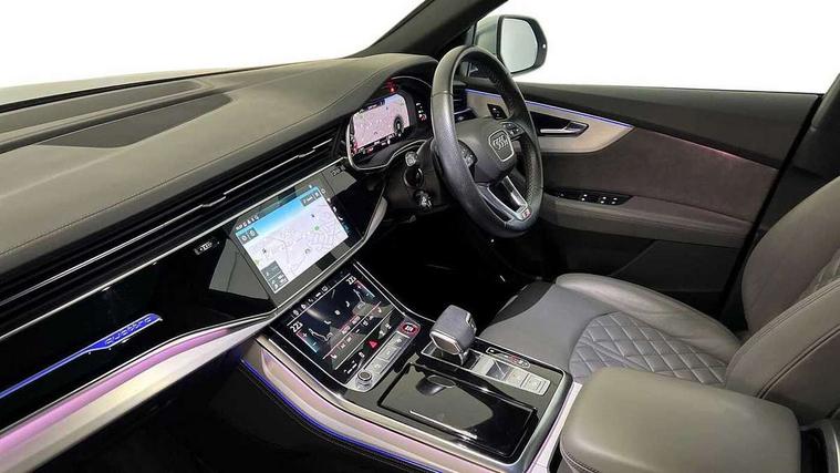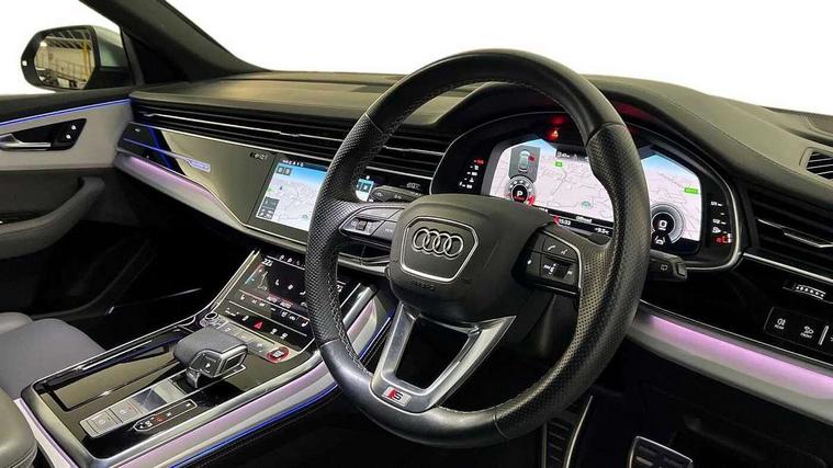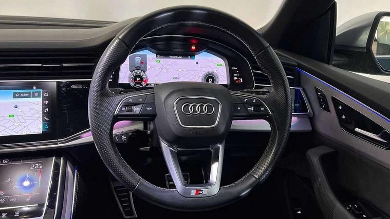 10.1" and 8.6" Dual colour touchscreens, All wheel steering, Audi connect safety and service (e-call), Audi connect with Amazon Alexa Integration, Audi drive select, Audi parking system plus includes 360 degree display with front and rear sensors, Audi phone box with wireless charging, Audi smartphone interface includes wireless Apple carplay/Android Auto, Audi virtual cockpit - 12.3" high resolution LCD display with fully customisable instrument cluster, Automatic start/stop system, Electro-mechanical PAS, Low washer fluid indicator, MMI - Multi Media Interface control system, MMI navigation plus with MMI touch, Natural voice recognition, On board computer, Operating buttons in black, glass look with haptic feedback, Power operated tailgate, Rear view camera, Service interval indicator, 48V Mild hybrid technology, 85 litre fuel tank, Quattro all wheel drive with self locking centre differential, S specific Adaptive air suspension, Audi music interface with 2 USB ports with charge and data functions, Audi sound system with 6 channel amplifier, 180 watt amplifying capacity and 10 loudspeakers including subwoofer, Aux-in socket, DAB Digital radio, Acoustic windscreen, Aluminium look door mirrors, Aluminium window trim, Audi Beam uses LEDs to project the Audi logo, Audi HD Matrix LED headlights with dynamic front and rear indicators, Auto dimming frameless rear view mirror, Body coloured bumpers, Coming/leaving home lighting function, Electric front+rear windows, Electrically folding auto dimming/adjustable/heated door mirrors with memory function, LED side indicators and kerb view function for passenger side, Headlight washers, Heat insulating glass in windshield, LED signature daytime running lights, Platinum grey front spoiler lip and diffuser insert, Privacy glass - dark tinted rear and rear side windows from B-pillar backwards, Rain and light sensors, Rear wiper, S specific dual brach chrome tailpipes on both the left and right, S specific front and rear bumpers, S specific radiator grille frame in matt selenite silver, S specific side skirts in matt selenite silver, Side air inlet grilles in matt titanium black, Trim and underbody protection in matt selenite silver, 2 zone automatic climate control, 4-way lumbar support for front seats, 40:20:40 split folding rear bench seat, Black cloth headlining, Comfort front centre armrest, Driver seat memory function, Electrically adjustable front seats, Front head restraints, Front/rear floor mats, Heated front seats, Illuminated door sill trims, ISOFIX child seat mounting for front passenger seat and 2 outer rear seats with top tether child seat mounting for all 3 rear seats, LED interior ambient lighting, Luggage compartment sill protection in stainless steel, Rear centre armrest with 2 cupholders, Rear headrests, Rear seat bench plus, Stainless steel pedals, Sunvisors with illuminated vanity mirrors, Tool kit, Upper and lower interior elements in leather, leather door armrests, 3 point seatbelts on all seats, Audi pre sense front, Driver and front passenger, front side and curtain airbags, Electromechanical parking brake, Electronic Stability Control (ESC) including ABS, ASR and EDL, Front passenger airbag deactivation, Hill descent control, Hill hold assist, Predictive pedestrian protection, Seatbelt monitoring, Traction control, Tyre pressure loss indicator, Warning triangle and first aid kit, Anti theft alarm with tow away protection, Anti-theft wheel bolts and wheel loosening detection, Immobiliser, Keyless go with remote central locking, Tyre repair kit,