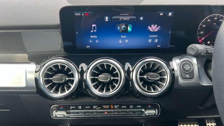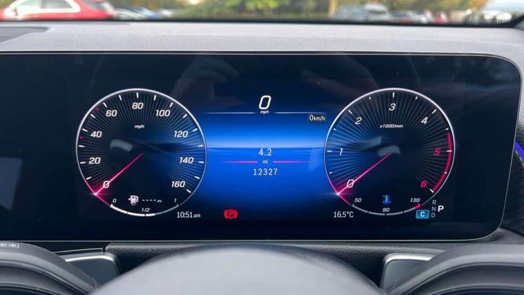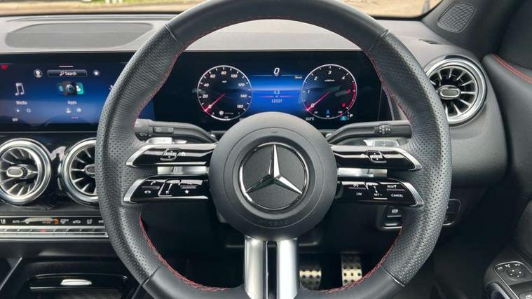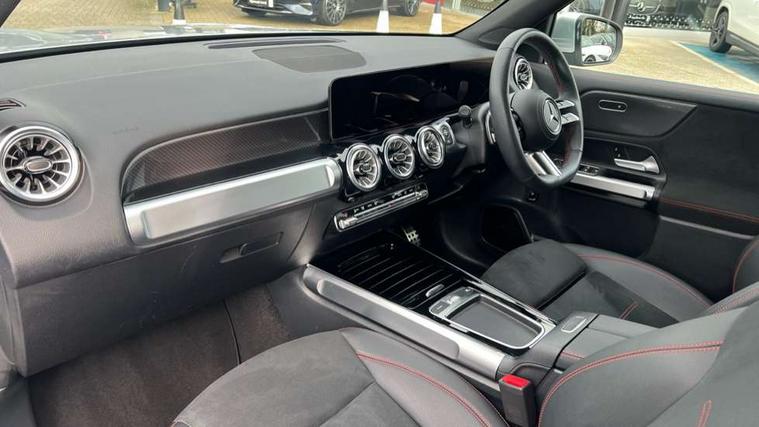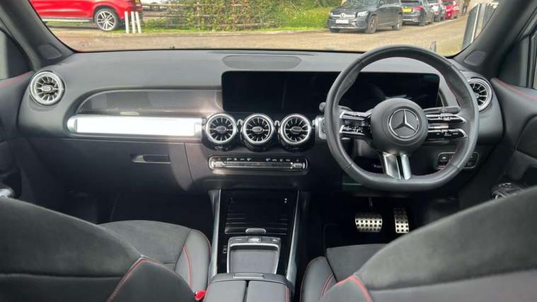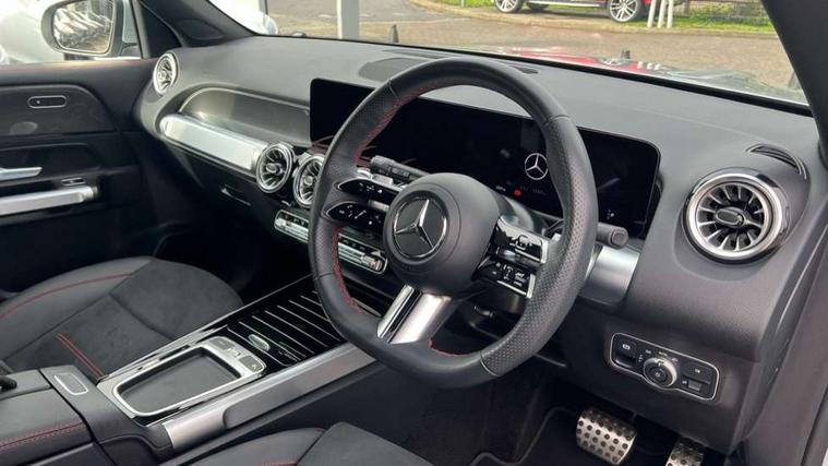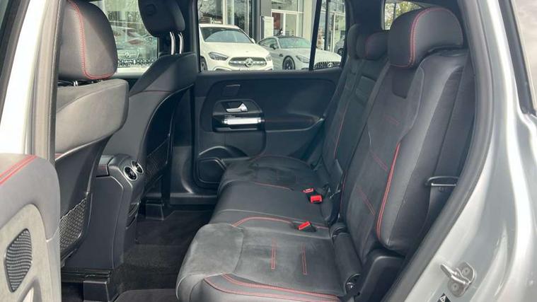 10.25 inch touchscreen central media display, 10.25" Digital instrument cluster display screen, 12 ultrasonic sensors in front and rear bumpers, 180 degree reversing camera with parking guidelines, Additional drive program "OFF-ROAD", Assisted parking: reversing backwards into perpendicular and parallel parking spaces, Attention assist - Monitors steering behaviour and long journey fatigue, Blind spot assist, Bluetooth connection, Brake pad wear indicator warning light, Car wash mode, Convenience opening and closing, Direct steering, DYNAMIC SELECT with a choice of driving modes (ECO, Comfort, Sport and Individual), ECO start/stop function, Engine start/stop button, Exit warning function, Fluid level warning indicator for fuel, oil, coolant and washer fluid, Hard disk navigation, Hey Mercedes Voice activation, Lamp failure indicator, Lane keep assist, MBUX navigation premium, Mercedes me connect including emergency call system, accident recovery, breakdown and maintenance management, Mercedes me remote services, Outside temperature gauge, Owners manual and service booklet in English, Pre-installation of private car share, Preinstallation for parking damage notification, Radio aerial integrated into front and rear windshields, Remote boot closing, Service indicator (ASSYST), Smartphone integration with Apple CarPlay and Android auto, Speed limit assist, Tailgate, Trip computer in multifunction display with current consumption indicator, Ultrasound sensors - positioned in the handle of the tailgate, Wireless charging, Comfort suspension with ride height lowering, Rear axle multi-link, 1 USB-C port in the oddments compartment (Charge + Data transfer), 2 USB-C ports for the rear on the centre armrest (Charge only), 2 USB-C ports under the front centre armrest (Charge + Data transfer), DAB digital radio tuner, MBUX multimedia system, Mercedes Benz sound system (225 W) with 10 speakers, 1 central speaker, speakers on doors, a tweeter on door, one sub woofer + boost amplifier, Pre installation for Mercedes Benz Link, Adaptive brake lights, Adaptive high beam assist, AMG front apron with front splitter in the colour of the vehicle with chrome trim element, AMG rear apron with visible tailpipe trim and chrome trim element, AMG specific/dual flow exhaust pipes in chrome (non-functional), Auto dimming rear view mirror, Beltline trim and window line trim strip in high gloss aluminium, Black grained side sill trim with chrome inlay, Body coloured door handles, Electric adjustable and heated door mirrors with integrated LED side indicators, Electric folding door mirrors, Front and rear electric windows, Headlamp assist automatic headlamp activation, Heat insulating dark-tinted glass starting from B-pillar, Heated glass rear windscreen + timer control, High level LED third brake light, Illuminated door sill panels with Mercedes-Benz lettering, Interior mirror with black reading lamps and frameless, LED high performance headlamps with integrated LED daytime running lights, LED tail lamp, Polished aluminium roof rails, Radiator grille as a diamond grille with chrome pins and central Mercedes star, Rain sensor windscreen wipers, Rear fog lamp, Rear side wing doors, Rear wiper, Single louvre in matt grey with chrome inserts and black highlights, Two visible tailpipe trim elements exhaust, Ultrasonic sensors - positioned in the front and rear bumpers, Wheel arch liners in the colour of the vehicle, 12V socket in the oddments compartment, 3 seat bench in 2nd row, 3 twin spoke flattened multifunction steering wheel in nappa leather - horizontal twin spoke in high gloss black, vertical twin spoke in silver chrome, 4 way adjustable lumbar support, 40:20:40 split folding rear seats, Air conditioning - Two zone thermotronic luxury automatic climate control with display, Air vents with silver chrome surrounds, AMG floor mats, AMG sports pedals with brushed stainless steel surfaces and black rubber studs, Automatic child seat recognition sensor, Black roof lining, Door handles with chrome inserts, Fluorescent jacket, Front and rear headrests, Front centre armrest with stowage, Galvanised steering wheel gearshift paddles in silver chrome, Handle recess lighting, Heated front seats, Height adjustable head restraints, Height/reach adjustable steering column, Interior lighting - 64 colour Ambient lighting, Luggage net on driver/front passenger seat backrest, Single front passenger seat, Sports seats, Stowage compartment with retractable cover, Sun visors with illuminated vanity mirrors, Third row of seats for two people on rear seat, Twin front cup holders, Two outer rear seat isofix and top tether child seat fixing points, Easy pack tailgate, Interior lighting with light and sight pack - GLB, Seat comfort package - GLB, 3 rear 3 point seatbelts, Active bonnet pedestrain safety measure which detects an impact and raises bonnet by 65mm, Active brake assist includes forward collision warning system with autonomous braking, Adaptive brake assist with hold function and hill start assist, Airbags - kneebag for driver, Anti-lock braking system (ABS) with brake assist, Black seatbelts, Bonnet with power domes, Childproof locks manually operated for rear doors and electrically operated for rear power windows, Crash responsive emergency lighting, Curve dynamic assist, Downhill speed regulation (DSR), Driver and front passenger head and sidebags, Driver and front passenger windowbags, Dual stage driver and front passenger airbags, Electric parking brake, Electronic stability programme with acceleration skid control, Front and rear seatbelt reminder, Front brake callipers with Mercedes Benz lettering, Front passenger seat occupancy sensor, Perforated front brake discs, Tyre pressure monitoring system, Warning triangle and first aid kit, Guard 360 degree vehicle protection - Anti theft alarm system, tow away protection with visual, acoustic warning and alarm, Interior monitoring system, Keyless Go Access and drive authorisation sy