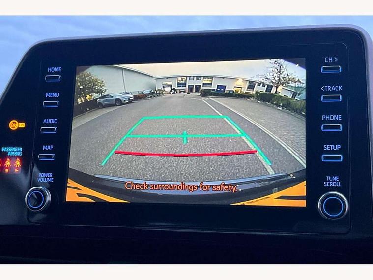 4.2" coloured TFT screen for multi-information display, Adaptive cruise control, Bluetooth connectivity, E-call, Electric power steering, Hybrid system indicator, Lane departure alert with steering control, Lane trace assist, Push button start, Push button tailgate release, Remote boot door release in cabin, Remote boot door release in key, Reversing camera, Road sign assist - RSA, Smart voice assist, Trip computer, Voice recognition, Vehicle Stability Control (VSC), 6 speakers, AM/FM radio, DAB Radio (Digital Audio Broadcasting), Toyota touch 2 multimedia system with 8" display, USB connector, Wi-fi connectivity, Anti-jam protection on power windows, Auto high beam, Auto up and down function on all power windows, Automatic headlights, Automatic headlights cut-off, Black and body coloured rear bumper, Black lower front grille, Black upper front grille, Body colour door handles, Body colour door mirrors, Body colour front spoiler lip, Body coloured front bumper, Boot door release with push button, Electric heated door mirrors, Follow me home headlights, Front and rear power windows, Front fog lights, Headlight cut off reminder, Honeycomb lower front grille, LED daytime running lights, LED High mounted stop light, LED rear brake lights, LED rear combination lights, Manual headlight levelling, Manually retractable door mirrors, Noise reduction layer on front windows and windscreen, Power adjustable door mirrors, Rear side wing doors, Rear spoiler, Rear tailgate, Rear window defogger, Rear window wiper, Reflective LED headlights, Shark fin antenna, UV-filter on driver and passenger windows, UV-filter on rear windows, 12v power outlet - front, 3 rear headrests, 3 seat bench in 2nd row, 3 spoke leather steering wheel, 60/40 split folding rear seat, Adjustable rear headrests, Adjustable speed limiter switch on steering wheel, Assist grips front and centre pillar, Audio and telephone switches on steering wheel, Black front door assist grips, Boot light, Chrome interior door handles, Cloth upholstery, Driver and front passenger personal light, Driver and front passenger Whiplash Injury Lessening seats, Dual zone automatic air conditioning, Floor mats, Front cupholders, Front head restraints, Front sports seats, Glovebox with internal light, Hard tonneau cover, Hooks for luggage holding net, Humidifying Nanoe air purifier, Illuminated entry system, Isofix attachments on outer rear seats, Leather gearshift, Light on driver sun visor, Light on passenger sun visor, Manual telescopic steering wheel, Manual tilt steering wheel, Manually adjustable lumbar support on driver seat, Manually height adjustable driver seat, Manually height adjustable front passenger seat, Manually reclining driver seat, Manually reclining front passenger seat, Manually sliding driver seat, Manually sliding front passenger seat, Microphone on front personal light, Mirror on driver sun visor, Mirror on passenger sun visor, Multimedia switches on steering wheel, Pollen filter, Shopping bag hooks, Single front passenger seat, Slow opening on lower glovebox, Voice recognition switch on steering wheel, 16 Disk front wheel brake, 3x3 point rear seatbelts, ABS+EBD+Brake assist, Electronic parking brake, Front and rear seatbelt reminder, Front passenger airbag on/off switch, Hill start assist control (HAC), Pre collision system with pedestrian detection, Pre-tensioners and force limiters, Rear door child safety locks, SRS Airbags - Driver + Front passenger, front side, front and rear curtain and driver's knee airbags, Toyota safety sense, Tyre pressure monitoring system, Tyre pressure warning system, Acoustic vehicle alert system (AVAS), Glass-breaking alarm sensors, Immobiliser, Intrusion alarm, Intrusion sensor, Motion sensor alarm, Power door locks, Power passenger window lock, Remote central locking, Black lower dashboard, Black upper dashboard, Grey deco line on upper dashboard, Matte black centre console, Tyre repair kit,