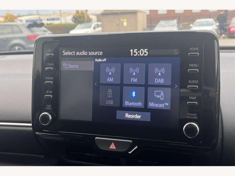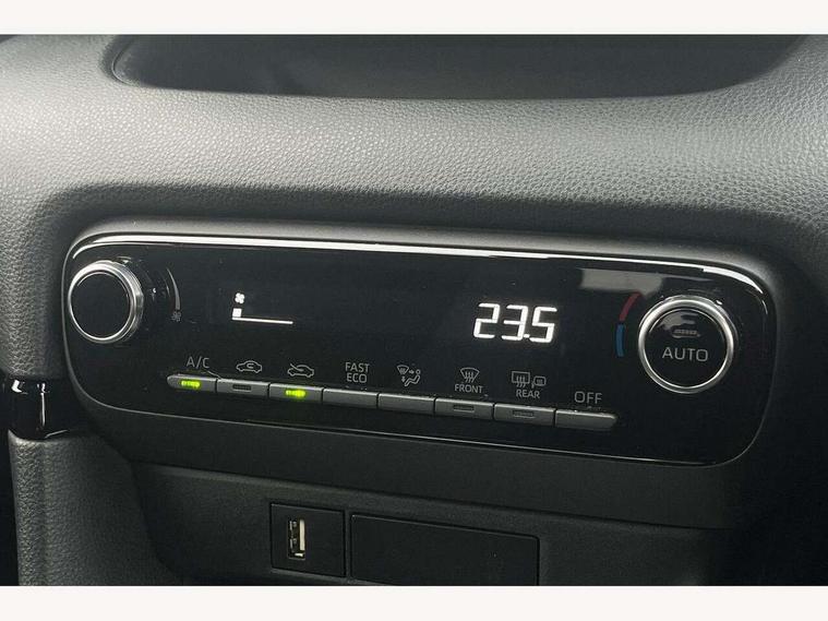 Adaptive cruise control, Adjustable speed limit with speed warning, Bluetooth connectivity, Colour binocular inspired displays with digital speedometer, E-call, Electric power steering, Hybrid energy display, Multi information display switches on steering wheel, Reversing camera, Smartphone integration with Apple CarPlay and Android auto, Tailgate, Voice recognition, Vehicle Stability Control (VSC), 4 speakers, 8" Multimedia display touch screen, USB connection, Acoustic windscreen glass, Auto windscreen wipers, Automatic headlights, Body coloured door mirrors, Electric adjustable heated door mirrors, Follow me home headlights, Front auto power windows with anti jam protection, Full LED rear lights, LED daytime running lights, LED front fog lights, LED front light guide, LED Headlights, LED High mounted stop lamp, LED Indicators, LED rear light guide, Manual headlight levelling, Painted chequered front grille, Rain sensor, Rear auto power windows with anti jam protection, Rear privacy glass, Rear side wing doors, Rear spoiler, Rear wiper, Shark fin antenna, Turning signal integrated indicators in door mirrors, Variable front intermittent wipers, 3 adjustable rear headrests, 3 spoke leather steering wheel, 60/40 split folding rear seat, Active headrests, Adjustable boot height, Auto air conditioning, Coat hooks in rear grab handles, Cup holders (2 front & door), Data Communication Module (DCM) connected services, Fabric upholstery, Front armrest, Glovebox, Grey roof lining, Height adjustable driver's seat, Isofix seat fixing, Leather gearshift, Pollen filter, Shopping bag hooks, Single front passenger seat, Tilt/telescopic steering column, 3 point seatbelts on all rear seats, ABS+EBD+Brake assist, Electronic parking brake, Emergency brake light system (EBS), Front passenger airbag on/off switch, Front seatbelt reminder, Hill start assist control (HAC), Rear child proof door locks, Rear seat belt reminder, Supplemental Restraint System (SRS) 8 airbags: Driver & passenger's airbags, dual side curtain airbags, side impact airbags, front centre airbag, Toyota Safety Sense 2, Precollison + Night time Pedestrian & Cyclist Detection, Lane Trace Assist, Auto High Beam, Intelligent ACC & Road Sign Assist, Tyre pressure warning system, 2x Master key, Alarm/immobiliser, Remote powered central double locking doors, Soft touch instrument panel, Space saver spare wheel,