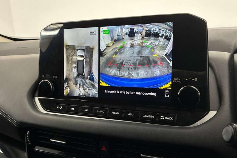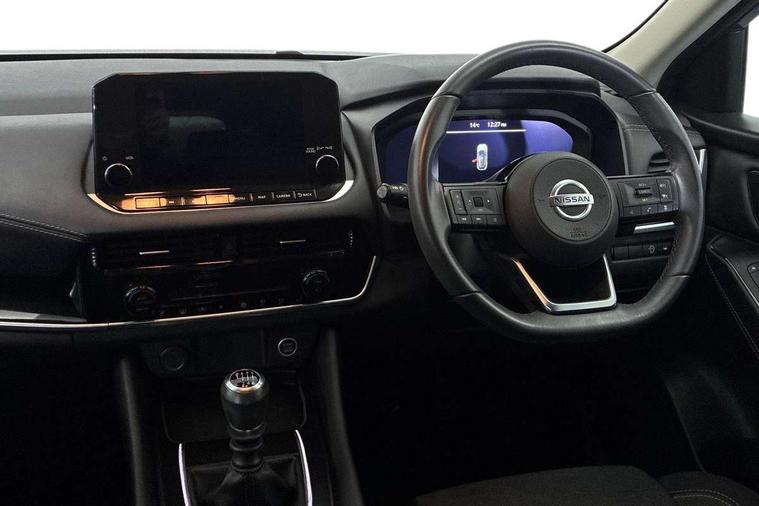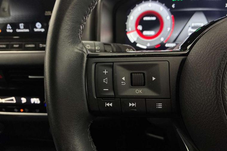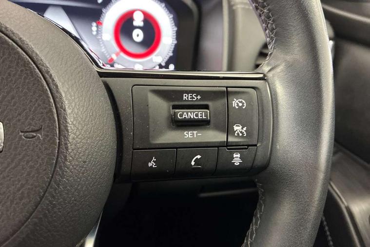 Blind spot warning, Drive modes (sport, normal, eco), Electric speed sensitive power steering, Emergency and breakdown call, Front and rear parking sensors, Full Digital 12.3" TFT Digital Combimeter, Google maps services - search, weather, 3D maps and Google street view, Idle stop/start system, Intelligent around view monitor, Intelligent Cruise control (ICC), Intelligent driver alert system, Intelligent forward collision warning, Intelligent lane intervention, Lane departure prevention, Lane departure warning system, Maximum speed limiter, Moving object detection, Nissan connect 12.3 inch touchscreen infotainment system, Nissan connect navigation, Push button starter, Rear cross traffic alert, Remote control services - door locks, lights, horn and car locator, Telematics - notifications and connectivity services, TomTom live traffic services, Traffic sign recognition with legal speed adjustment, Trip computer, Virtual personal assistant and firmware over the air capability, Wireless Apple CarPlay and wired Android Auto, 6 speakers, AM/FM audio system with DAB, Bluetooth audio streaming, Front USB connections (Type-A and Type-C), Rear USB charging only ports (Type-A and Type-C), Auto dimming rear view mirror, Auto rear wiper when reversing, Automatic hazard signal with emergency stop signal, Body colour mirror caps, Body coloured door handles, Bodyside mouldings, Chrome side window finisher, Door handle with button, Dusk sensor, Electric auto folding door mirrors, Electrically adjustable and heated door mirrors with LED turn indicator, Follow me home headlights, High beam assist, Intelligent auto headlights, LED daytime running lights, LED Headlights, LED rear lights, One touch front and rear electric windows with remote opening and closing, Partially body coloured bumpers, Privacy glass, Rain sensor, Rear bumper with graphite insert, Rear reversing light (bulb lighting), Rear roof spoiler, Rear side wing doors, Rear styling plate, Shark fin antenna, Splash free rain sensing wipers, Super UV and infrared cut glass, Three blink turn signal, 12v power socket in dashboard and luggage, 2 way electrical driver lumbar adjustment, 2x Rear coat hooks, 3 bench rear seats in 2nd row, 3 rear headrests, 4 folding assist grip, 6 Luggage hooks - 4 on floor, 2 on side, 6-way manually adjustable driver's seat, 60/40 split folding rear seat bench, Ambient lighting around centre console, Centre console storage tray, Chrome interior door handles, Cloth monoform upholstery, Driver and front passenger sunvisors with illuminated vanity mirrors, Driver seat back pocket, Dual zone automatic climate control with pollen filter, Front and rear door storage, Front cupholders x 2, Front door with bottle holders, Glovebox with light, Hard trunk cover, Height adjustable front headrests, Leather shift knob, Leather steering wheel, Luggage board system, Luggage space lighting, Manually adjustable passenger (slide recline + lifter), Multifunction steering wheel, Passenger seat back pocket, PVC front centre console and armrest, Rear armrest with 2 cupholders, Rear door bottle holders, Single front passenger seat, Soft PVC kneepad, Steering wheel switches, Sunglasses holder, Tilt/telescopic adjustable steering wheel, Two rear isofix child seat anchorage points with top tether, Welcome light and console tray ambient lighting, 3x3 point rear seatbelt pretensioners + load limiters, ABS, ESP, EBD and brake assist, Active brake limited slip, Auto hold function, Child locks on rear doors, Curtain and front side, far side airbags, Driver and passenger airbags, Driver, passenger and 2nd row rear seat belt reminder, Electronic parking brake, Front seatbelt pretensioners + load limiters, Height adjustable front seatbelts, Hill start assist, Intelligent blind spot intervention, Intelligent front emergency braking with pedestrian, cyclist recognition and junction assist, Intelligent rear automatic braking, Tyre pressure monitoring system, Vehicle dynamic control, Capless fuel filler, Engine immobiliser, Nissan i-key, Remote central door locking with deadlocking, Thatcham Cat.1 alarm, Interior instrumental panel B finisher, 18" Diamond cut alloy wheels, Tyre puncture repair kit,