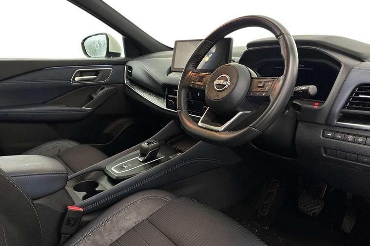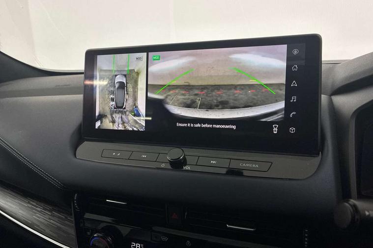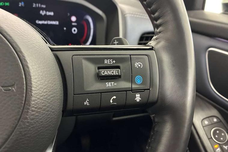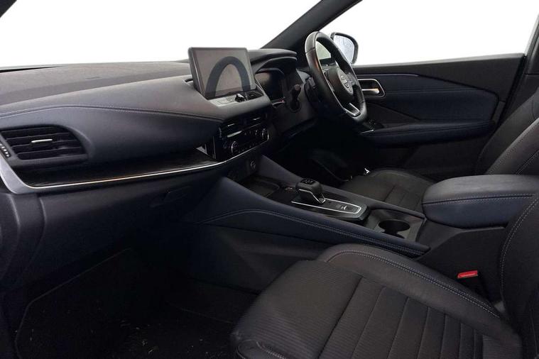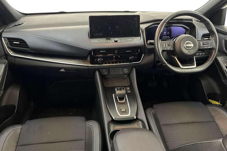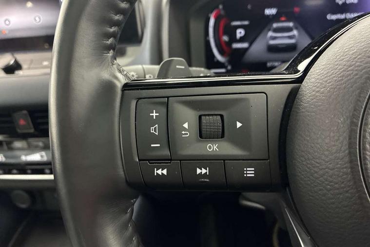 Advanced windscreen head up display, Android auto/Apple CarPlay (Wired), Blind spot warning, Drive modes (sport, normal, eco), Electric speed sensitive power steering, Emergency and breakdown call, Front and rear parking sensors, Full Digital 12.3" TFT Digital Combimeter, Google maps services - search, weather, 3D maps and Google street view, Hands free power tailgate, Idle stop/start system, Intelligent around view monitor, Intelligent Cruise control (ICC), Intelligent driver alert system, Intelligent forward collision warning, Intelligent lane intervention, Lane departure prevention, Lane departure warning system, Lane keep assist, Moving object detection, Nissan connect 12.3 inch touchscreen infotainment system, Nissan connect navigation, ProPilot, Push button starter, Rear cross traffic alert, Rear view camera, Remote control services - door locks, lights, horn and car locator, Telematics - notifications and connectivity services, TomTom live traffic services, Traffic jam pilot, Traffic sign recognition with legal speed adjustment, Trip computer, Virtual personal assistant and firmware over the air capability, Wireless apple carplay, Wireless charging pad, 6 speakers, AM/FM audio system with DAB, Bluetooth audio streaming, Front USB connections (Type-A and Type-C), Rear USB charging only ports (Type-A and Type-C), Auto dimming rear view mirror, Auto rear wiper when reversing, Automatic hazard signal with emergency stop signal, Body colour mirror caps, Body coloured door handles, Bodyside mouldings, Chrome side window finisher, Door handle with button, Electric auto folding door mirrors, Electrically adjustable and heated door mirrors with LED turn indicator, Follow me home headlights, Front and rear LED turning signals, Headlights auto levelling system, Intelligent auto headlights, LED daytime running lights, LED headlights with adaptive driving beam, LED rear lights, One touch front and rear electric windows with remote opening and closing, Partially body coloured bumpers, Privacy glass, Rear bumper with graphite insert, Rear reversing light (bulb lighting), Rear roof spoiler, Rear side wing doors, Rear styling plate, Shark fin antenna, Splash free rain sensing wipers, Super UV and infrared cut glass, Thermaclear heated windscreen, Three blink turn signal, 12v power socket in dashboard and luggage, 2x Rear coat hooks, 3 bench rear seats in 2nd row, 3 rear headrests, 4 folding assist grip, 6 Luggage hooks - 4 on floor, 2 on side, 60/40 split folding rear seat bench, Ambient lighting around centre console, Ambient lighting in front doors, Centre console storage tray, Chrome interior door handles, Cloth/syntech leather monoform upholstery, Dark black/blueish PVC wrapping, Dark headlining, Driver and front passenger sunvisors with illuminated vanity mirrors, Driver seat back pocket, Dual zone automatic climate control with pollen filter, Electrically adjustable driver seat, Electrically adjustable lumbar support for driver, Front and rear door storage, Front centre console and armrest, Front cupholders x 2, Front door with bottle holders, Glovebox with light, Hard trunk cover, Heated front seats, Heated steering wheel, Height adjustable driver's seat, Height adjustable front headrests, Height adjustable passenger seat, Leather steering wheel, Luggage board system, Luggage space lighting, Manual lumbar support on passenger seat, Manually adjustable passenger (slide recline + lifter), Multifunction steering wheel, Passenger seat back pocket, Rear armrest with 2 cupholders, Rear door bottle holders, Single front passenger seat, Soft PVC kneepad, Steering wheel gearshift paddles, Steering wheel switches, Tilt/telescopic adjustable steering wheel, Two rear isofix child seat anchorage points with top tether, Welcome light and doors with console tray ambient lighting, Glass roof pack with roof rails - Qashqai, 3x3 point rear seatbelt pretensioners + load limiters, ABS with EBD and brake assist, Active brake limited slip, Auto hold function, Child locks on rear doors, Curtain and front side, far side airbags, Driver and passenger airbags, Driver, passenger and 2nd row rear seat belt reminder, Electronic parking brake, Front seatbelt pretensioners + load limiters, Height adjustable front seatbelts, Hill start assist, Intelligent blind spot intervention, Intelligent front emergency braking with pedestrian, cyclist recognition and junction assist, Intelligent rear automatic braking, Tyre pressure monitoring system, Vehicle dynamic control, Capless fuel filler, Engine immobiliser, Intelligent Key, Remote central door locking with deadlocking, Thatcham Cat.1 alarm, Interior instrumental panel C finisher, 19" Alloy wheels, Tyre puncture repair kit,