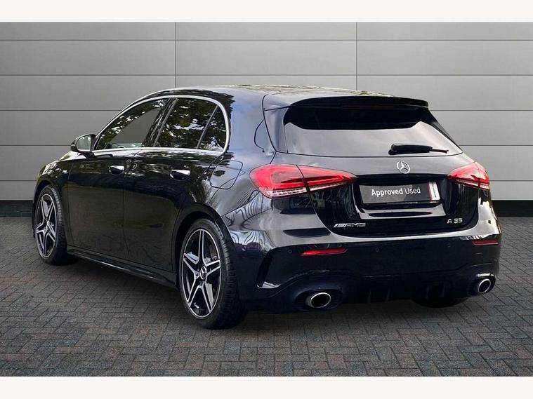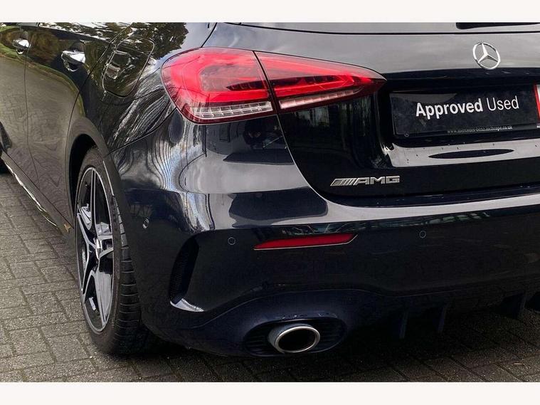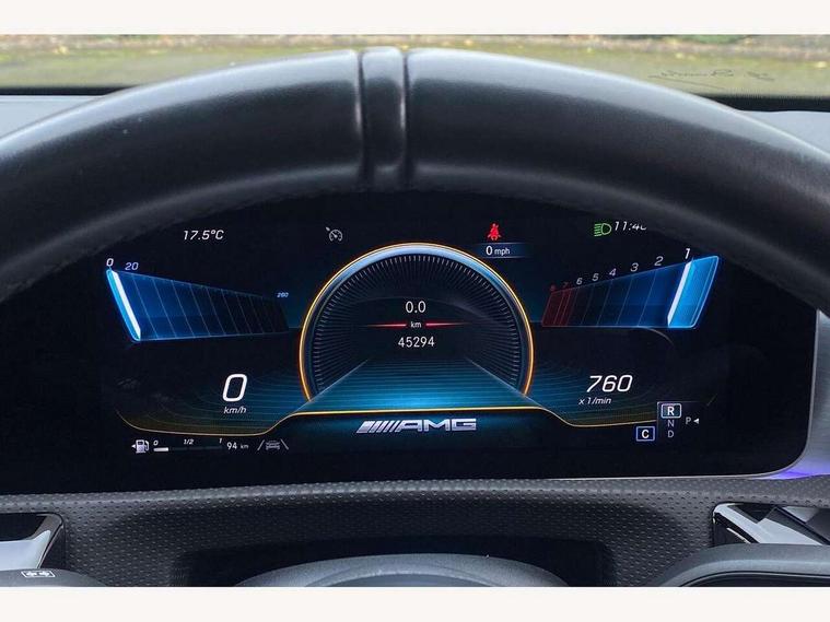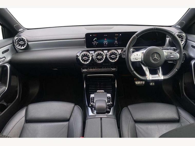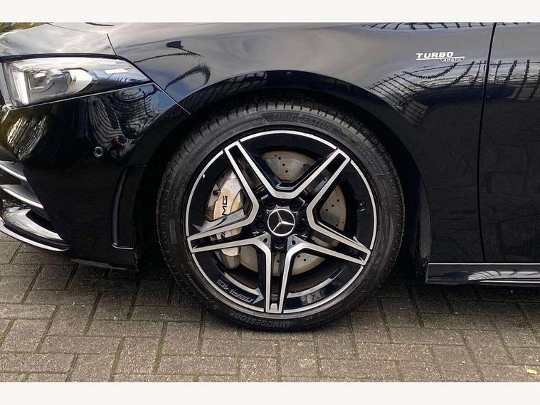 10.25" Digital instrument cluster display screen, 180 degree rear view camera with parking guidelines, Active lane keep assist, Active park assist with parktronic system including front and rear parking sensors, Attention assist, Brake pad wear indicator warning light, Direct steering, Dual bluetooth interfaces, DYNAMIC SELECT with driving programs (Slippery, Comfort, Sport, Sport+ and Individual), ECO start/stop function, Fluid level warning indicator for fuel, oil, coolant and washer fluid, Hard-disk navigation, Hey Mercedes Voice activation, Lamp failure indicator, Mercedes me connect including emergency call system, accident recovery, breakdown and maintenance management, Outside temperature gauge, Owners manual in English, Radio aerial integrated into roof spoiler, Service indicator (ASSYST), Speed sensitive power steering, Trip computer, 2 USB ports (type C) in rear stowage compartment and one in front of center console, Burmester surround sound system - 590W, DAB Digital radio, MBUX multimedia system with DAB digital radio and touchpad including satellite navigation, 4 Electric Front and Rear windows, Adaptive brake lights, AMG Front apron with flics as air deflector elements on the outer air intakes, AMG radiator grille with twin blade lamella and AMG Lettering, AMG spoiler lip on roof, AMG Sports exhaust system with two round tailpipes measuring 90 mm in diameter attached in rear apron, AMG lettering plus ribbing on the inside of the, Body colour bumpers, Body colour door handles, Body colour side skirt, Electric adjustable and heated door mirrors with integrated LED side indicators, Front wings wheel arches with TURBO 4MATIC lettering, Headlamp assist automatic headlamp activation, Heated glass rear windscreen + timer control, Illuminated front door sill panels with Mercedes-Benz lettering, LED tail lamp, LED third brake light, Multibeam LED with adaptive highbeam assist plus, Panoramic sliding sunroof, Privacy glass, Rain sensing windscreen wipers with two sensitivity settings, Rear fog lights, Rear wiper, Wider wheel arches for AMG wheels, 40:20:40 split folding rear seats, AMG Performance steering wheel in nappa leather, Auto Mercedes-Benz child seat recognition sensor, Black air vents with surround in silver chrome, Black roof lining, Brushed stainless steel sports pedals with rubber studs, Controller on centre console with chrome surround, Electrically adjustable front memory seats including lumbar support, Floor mats with stitched edging and AMG lettering, Front centre armrest with storage compartment, Front seat backs luggage nets, Front seat cushion length adjustment, Heated front seats, Height/reach adjustable steering column, Interior lighting - 64 colour Ambient lighting, Rear armrest with 2 cupholders, Rear head restraints, Seat occupancy sensor for front passenger seat, Silver coloured aluminium gear shift paddles on steering wheel, Spectacles compartment for driver, Sports seats with integrated headrests, Stowage compartment in centre console with retractable cover, Sunvisors with illuminated vanity mirrors, Touchpad on center console, Twin front cupholders, Two zone thermotronic luxury automatic climate control, Light and sight pack - A Class Premium/Premium Plus, Mirror package - A Class, Seat comfort pack - A Class, 3 rear 3 point seatbelts, ABS with Brake Assist, Active bonnet, Adaptive brake assist with hold function and hill start assist, Childproof locks manually operated for rear doors and electrically operated for rear power windows, Crash responsive emergency lighting, Driver and passenger head and side airbags, Drivers knee airbag, Dual stage driver/passenger airbags, Electronic parking brake, ESP curve dynamic assist, ESP with ASR, Front and rear seatbelt reminder, Front brake calipers with AMG lettering, ISOFIX and top tether child seat fixing points in two outer rear seats, Perforated front brake discs, Tyre pressure monitoring system, Warning triangle and first aid kit, Window airbags, Alarm system/interior protection/immobiliser, Keyless entry lock/unlock, Keyless Go, Remote central locking and crash sensor with emergency opening function, Light aluminium with longitudinal grain interior trim, Summer tyres, Tirefit sealant kit,