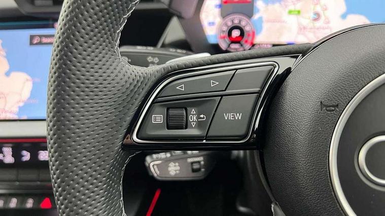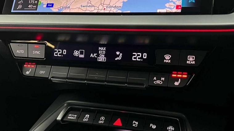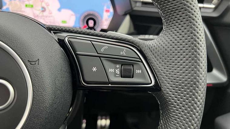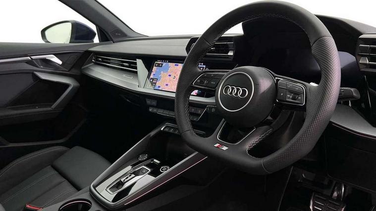 Adjustable speed limiter, Audi drive select, Audi smartphone interface with app store includes wireless Apple carplay, Android auto and Amazon alexa integration, Audi virtual cockpit plus - 12.3" full HD resolution dynamic digital instrument cluster, Automatic start/stop system with recuperation, Bluetooth interface, Camera based traffic sign recognition, Collision avoidance assistant, Cruise control, Distraction and Fatigue warning, e-Call (emergency call), Electromechanical power speed sensitive steering, Emergency assist, Lane departure warning system, MMI Navigation Plus with high resolution 10.1" colour touch screen display, Park Assist with parking system Plus, Service indicator, Tailgate, Trip computer, Voice control system with natural language interaction, Sports suspension, Audi Phonebox light with wireless charging, Audi sound system - 10 loudspeakers including centre loudspeaker and subwoofer, DAB Digital radio, USB ports with charging function in the rear, Acoustic glass windscreen, All weather light, Aluminium window trim, Auto dimming frameless rear view mirror, Automatic dynamic range control, Body colour exterior mirrors, Chrome exhaust tailpipes, Dipped beam, main beam, position light and turning light, Electrically adjustable/heated/folding/auto dimming door mirrors with integrated LED indications + kerb view function for passenger side, Exterior model badging, Front and rear side air inlets in grained matt black with dark liquid chrome frame, Front electric windows, Front radiator grill in high gloss dark chrome, Heat insulating glass windscreen, Illuminated door sills with aluminium inserts at the front with S logo, Intersection light, LED 3rd brake light, LED brake lights, LED daytime running x3, LED headlights with LED rear lights and dynamic rear indicators, LED rear number plate lights, LED reverse light, LED tail lights, Light and rain sensors, Manoeuvring light, Motorway light, Privacy glass - dark tinted rear window, rear door and side windows, Rear diffuser and grill in grained matt black with inlay in dark liquid chrome, Rear electric windows, Rear side wing doors, Rear wiper, S line bumpers, S roof spoiler, Side S line emblems on front wings, Side sill trim in dark liquid chrome, Static Cornering lights, 12V socket and storage compartment in front centre console, 3 seat bench in 2nd row, 3 spoke flat bottomed leather multifunction sport steering wheel with gear shift paddles, 3-zone deluxe automatic air conditioning, 4 way electrically adjustable lumbar support for driver and front passenger, 40/20/40 split folding rear seat bench, Black cloth headlining, Black front and rear floor mats, Front and rear centre armrest in artificial leather with contrasting stitching on armrests and instrument panel, Front and rear headrests, Heated front seats, Height and reach adjustable steering wheel, Manual boot compartment lid, Manually adjustable front seats, Rear centre armrest with cupholder, S badging on the steering wheel, Seat side bolsters, Single front passenger seat, Stainless steel pedals and front footrest in black, Twin leather upholstery with front sports seats S embossed logo, Aluminium interior elements pack - A3, Multi-coloured LED interior lighting package with Multi-coloured contour lighting of instrument panel - A3, 3x3 point rear seat belts, Driver and front passenger airbag with passenger airbag deactivation, Electronic Stabilisation Control (ESC) including ABS, ASR and EDL, First aid kit with warning triangle and 2 safety vests, Front side airbags with head airbags and interaction airbag, Hill hold assist, Pre-sense front with pedestrian and cyclist detection, Seatbelt monitoring, Tyre pressure loss indicator, Anti theft alarm, Anti-theft wheel bolts, Electronically operated child locks, Immobiliser, Remote central locking with safelock, Black dashboard, Inlay in dark aluminium spectrum,
