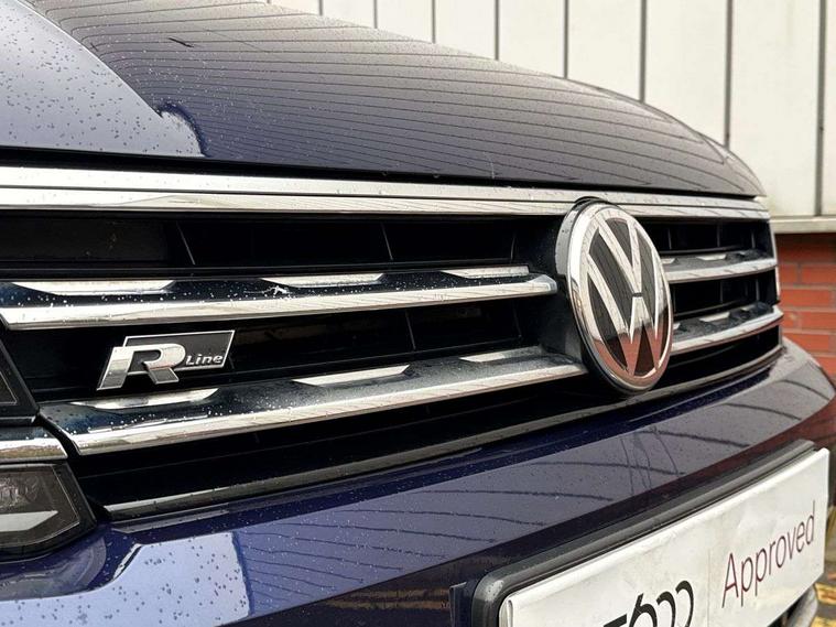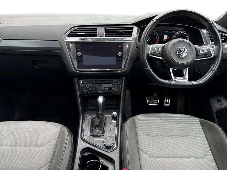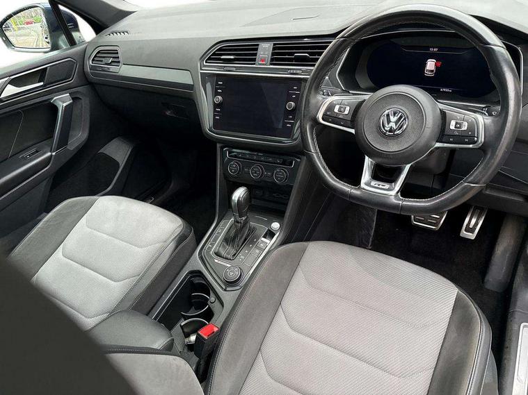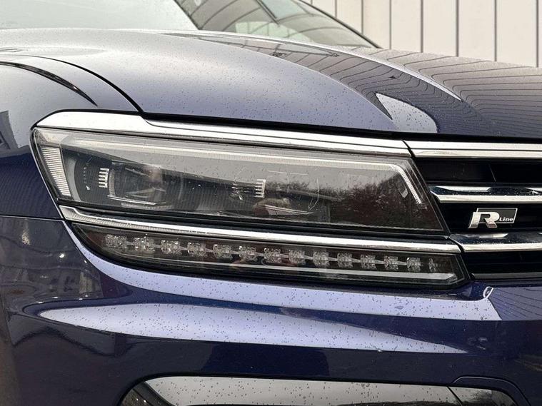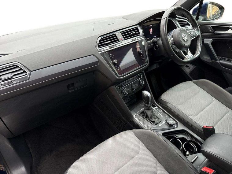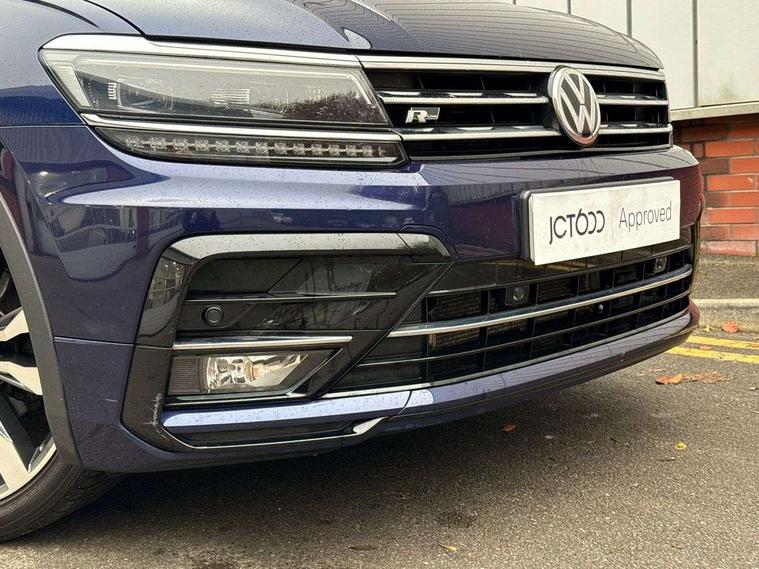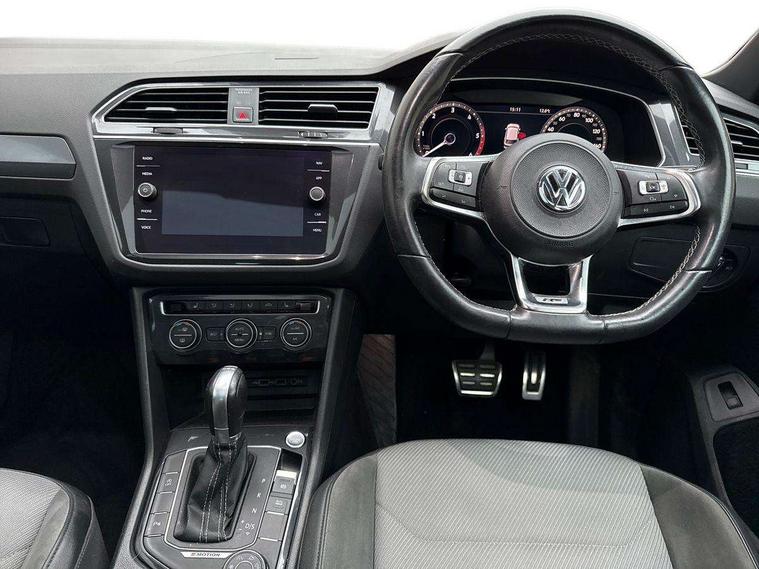 Active information display, Adaptive cruise control, App-Connect, Bluetooth phone integration system, Distance control assist, Drive mode selector, Driver profile selection, Fatigue detection system, Instrument cluster, Lane assist, Low washer fluid warning light, Outside temperature display, Progressive power assisted steering, Service interval indicator, Speed limiter, Warning lights, Diesel particulate filter, XDS electronic differential lock, 2x USB sockets in front, Aux-in socket, DAB Digital radio, MP3 compatible single CD player, SD card slot, Auto dimming interior mirror, Automatic activation of hazard warning lights, Body colour door handles, Body colour door mirrors, Body colour rear spoiler, Body colour side skirt, Body coloured bumpers, Chrome side window surrounds, Chrome trimmed radiator grille, Coming/leaving home lighting function, Dusk sensor + auto driving lights, Electric folding door mirrors, Electric heated + adjustable door mirrors, Electric panoramic sunroof with sunblind, Front and rear electric windows, Heated rear window, LED headlights with dynamic light assist daytime running lights and cornering front fog lights, LED rear lights, Piano black rear diffuser, R Line body kit, Rain sensor windscreen wipers, Rear windscreen washer and wiper with interval delay, Silver roof rails, Silver under body guard, Tinted windows (B pillar backwards), Twin trapezoid chrome exhaust pipes, Windscreen wipers/ intermittent wipe + 4 position delay, 12V Accessory socket in centre console, 3 rear headrests, 3 zone climate control, 4 load lashing points, 40:20:40 split folding rear seats, Bag hook in luggage compartment, Black headlining, Driver + front passenger lumbar support, Foldable passenger seatback, Front + rear carpet mats, Front centre armrest with 12v socket, Front centre armrest with storage + rear 2 air vents + cupholders, Front seatback folding tables, Height/reach adjust steering wheel, Illuminated driver/passenger vanity mirrors, Illuminated scuff plates, Interior light with delay, Isofix Preparation 2 Rear child seats, Leather gear knob, Leather multifunction steering wheel with paddle shift, Load through provision with 2 cupholders when folded, Lockable cooled glovebox, Luggage compartment lighting, Luggage compartment side storage, Map pockets on front seats, Passenger seat height adjuster, Rear cupholders, Removable luggage cover, Sliding/reclining rear seats, Stainless steel pedals, Storage compartment in driver's door, Storage compartment in passenger's door, Storage compartment in rear doors, Storage tray on dashboard, Sunglasses storage, Variable boot floor, Ambient lighting pack - Tiguan, 3 rear 3 point seatbelts, ABS+EBD+Brake assist, Active bonnet, Active pedestrian safety system, Curtain airbags, Driver/Front Passenger airbags, Driver/Passenger whiplash optimised head restraints, Drivers knee airbag, DTC - Drag torque control, Electronic parking brake with auto hold, ESP with EDL + ASR, First aid kit, Front assist including city emergency braking, Front side airbags, Head airbag system, Height adjustable front 3 point seatbelts + pretensioners, Hill hold control, Passenger airbag deactivate switch, Passenger knee airbag, Pre crash system, Rear side airbags, Seatbelt warning lamp and buzzer, Two tone horn, Warning triangle, Alarm with interior protection, Electronic engine immobiliser, Remote central locking with 2 remote folding keys, Aluminium decorative inserts, Chrome door trim inserts, 20" Suzuka alloy wheels + anti theft wheel bolts, Steel space saver spare wheel,