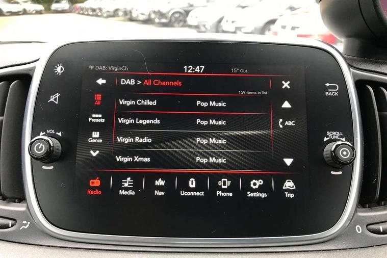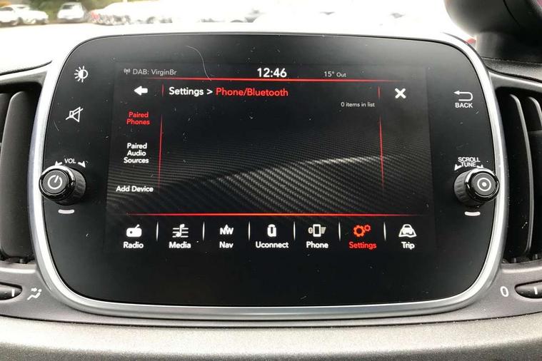 Dualdrive PAS, Rear parking sensors, Sports button, TFT display screen, Trip computer, U-connect access via mobile, Sports suspension, Anthracite bumper inserts, Body coloured bumpers, Dark tinted rear windows, Electric front windows, Front fog lights, LED daytime running lights, Rear wiper, Twin exhaust tailpipes x2, 12V socket, Aluminium gear knob, Aluminium sports pedals, Auto climate control, Corsa sports seats, Front head restraints, Glovebox, Height adjustable steering wheel, Interior stowage net, Multifunction leather steering wheel with carbon trim, Rear headrests, 3x3 point rear seatbelts, ABS, Brembo brakes, Driver and passenger airbags, Drivers knee airbag, ESP + ASR/MSR + HBA + Hill holder, Tyre pressure monitoring system, Window airbags, Alarm, Central locking, Immobiliser, Remote central locking, Fix and go kit,