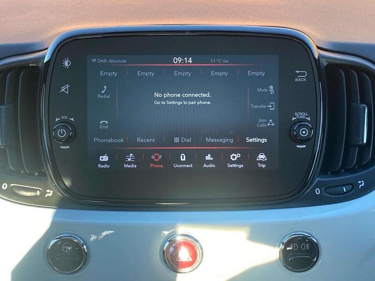 Apple car play/Android Auto, Cruise control, E-call, External temperature gauge, Power assist steering, Rear parking sensor, Speed limiter, Stop/start system, Trip computer, 4 speakers, 7" HD Touchscreen Radio, Bluetooth, USB and DAB, Rear speakers, 3rd brake light, Auto headlights, Body colour bumpers, Body coloured electrically adjustable door mirrors, Chrome plated exterior door handles, Dolcevita badge on fender, Dusk and rain sensors, Electric front windows, Fixed glass sunroof with sunblind, Front fog lights, Halogen headlamps, Heat insulated glass, Heated rear windows with wash wipe, LED daytime running lights, Rear side wing doors, Rear wiper, 1 passenger grab handle, 2 seat bench in second row, 50/50 split folding rear seats with height adjustable rear headrests, Air conditioning, Auxilliary 12V power socket, Chrome kit, Front headrests, Height adjustable drivers seat, Height adjustable steering wheel, Isofix child seat preparation, Single front passenger seat, Techno leather steering wheel with audio controls, 7 airbags - Driver, passenger, side, window and drivers knee airbags, ABS/EBD, ESC + ASR/MSR + HBA + Hill holder, Passenger airbag deactivation system, Traction control, Tyre pressure monitoring system, Automatic door locking, Immobiliser, Locking fuel filler cap, Remote central locking, 15" Alloy wheels,