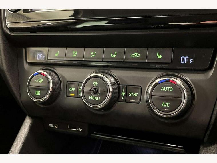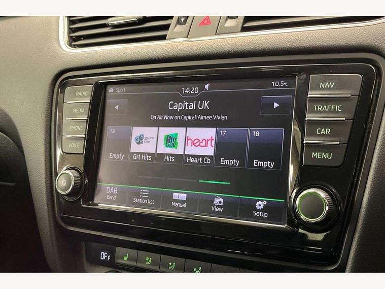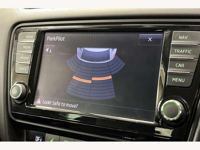 Colour maxi dot trip computer, Drive mode selector, Driver alert system, Electro-mechanical PAS, Lane assist, Outside temperature gauge, Service interval indicator, Diesel particulate filter, Auxiliary input socket, Bolero Radio, DAB Digital radio, Multi device interface, SD card slot, USB connection, Aero wiper + intermittent function, Auto dimming rear view mirror, Black bodyside mouldings, Body colour door handles, Body coloured bumpers, Electric front windows, Electric rear windows with child safety lock, Headlight washers, Internally adjustable headlight beam level, Light assistant (coming home/tunnel light), Rear mudflaps, Rear wiper, Silver door mirrors, Silver roof rails, Tinted glass, 3 spoke multifunction leather steering wheel including paddle shift, Air re-circulation and pollen filter, Alcantara/leather upholstery, Backrest release, Chrome inner door handles, Driver's vanity mirror, Dual zone automatic air conditioning with humidity sensor and control, Floor mats, Front armrest, Front seat and rear pockets, Height adj rear head restraints, Height adjustable front head restraints, Height/reach adjust steering wheel, Illuminated glovebox, Illuminated luggage compartment, Interior courtesy light operated by door switches, Isofix child seat preparation, Lashing eyelets in boot, Lumbar support, Passenger underseat drawer, Passenger vanity mirror, Rear armrest with cupholder, Split folding rear seats, Sunglasses storage, Through load system, Rough road pack - Octavia, 3 rear 3 point seatbelts + pretensioners, ABS, Automatic post collision braking, Curtain airbags, Driver and passenger airbags, Driver and passenger side airbags, Driver seatbelt warning indicator, Drivers knee airbag, ESP including MBA, MSR, ASR, EDL, HBA, Fuel supply cut off, Head airbags, Height adjustable front seatbelts + pretensioners, Hill hold control, Passenger airbag deactivate switch, Tyre pressure monitor, Alarm, Electronic immobiliser, Remote central locking, Low rolling resistance tyres,