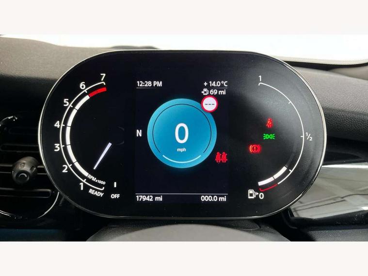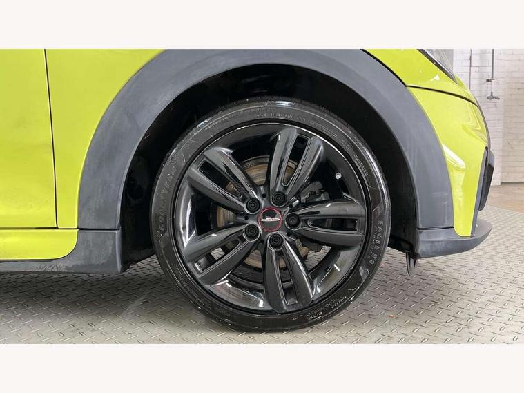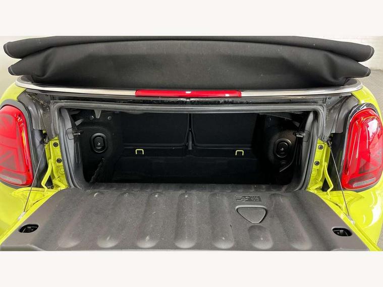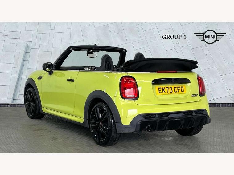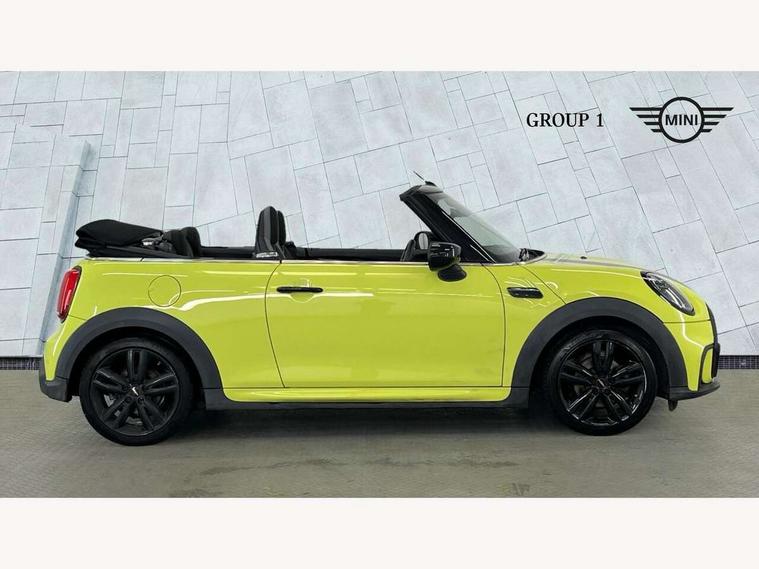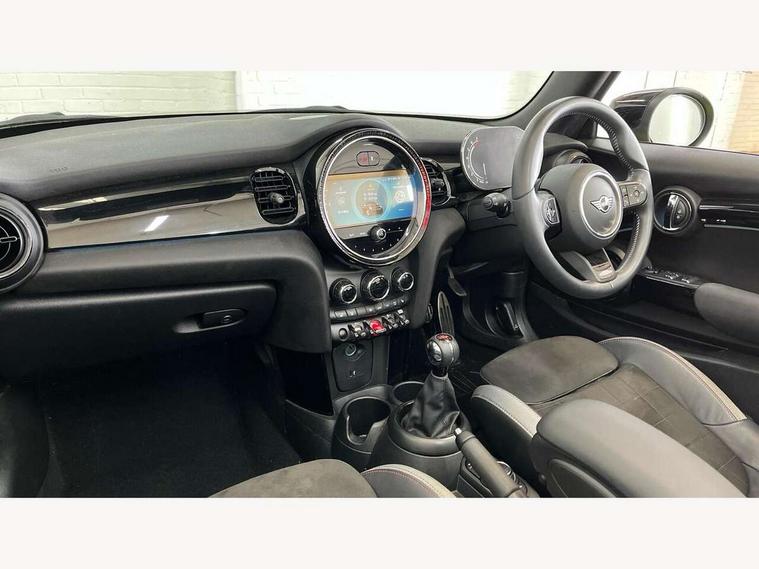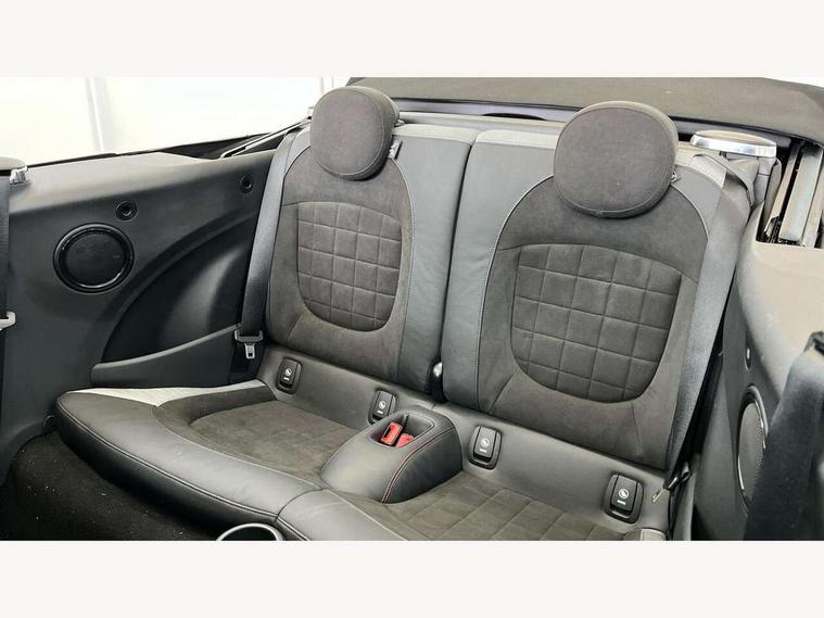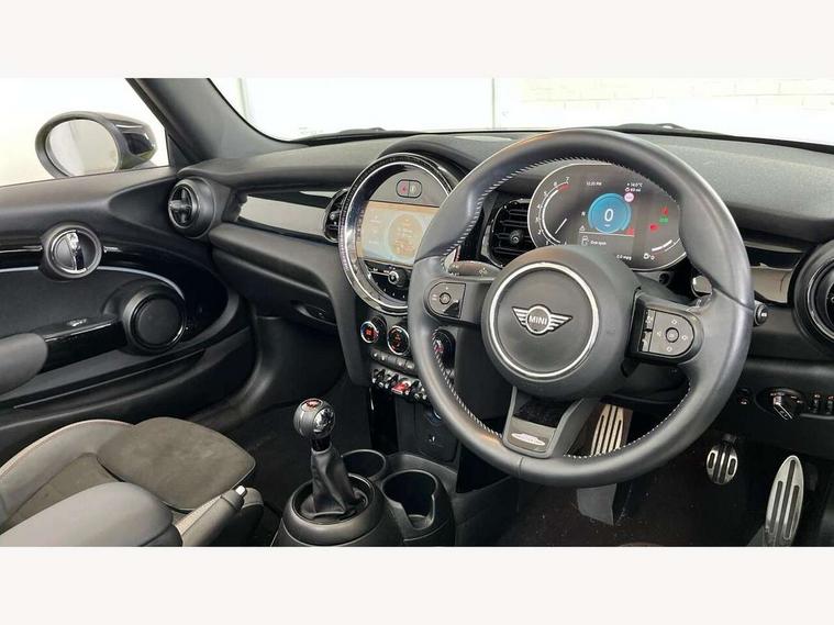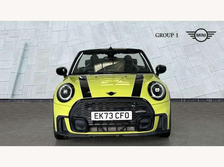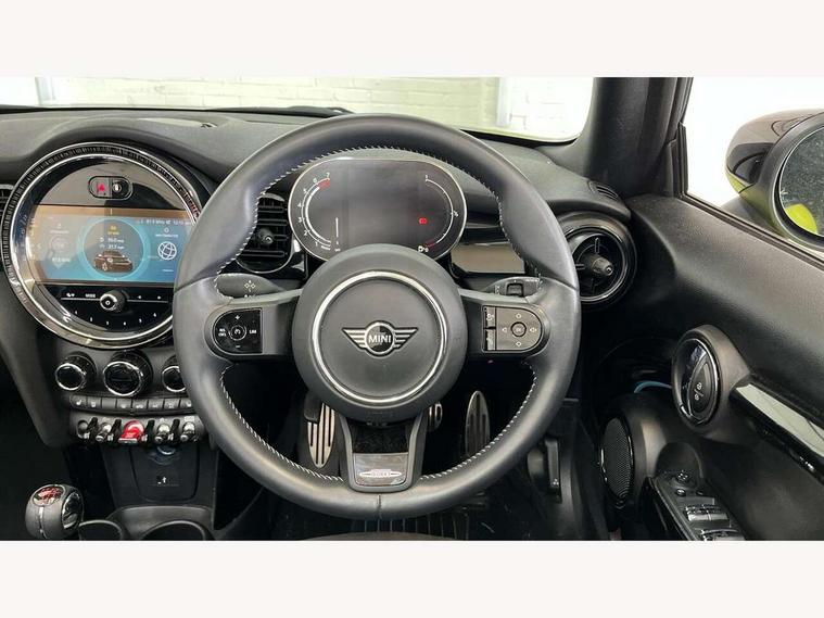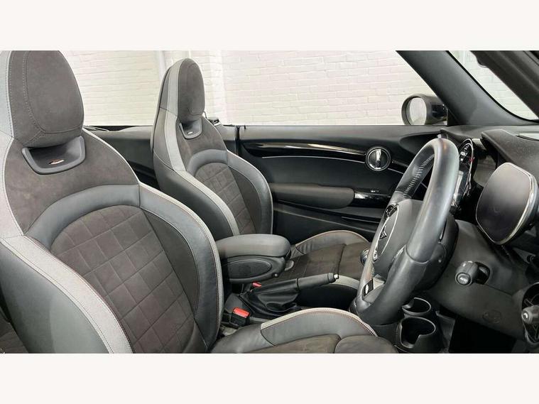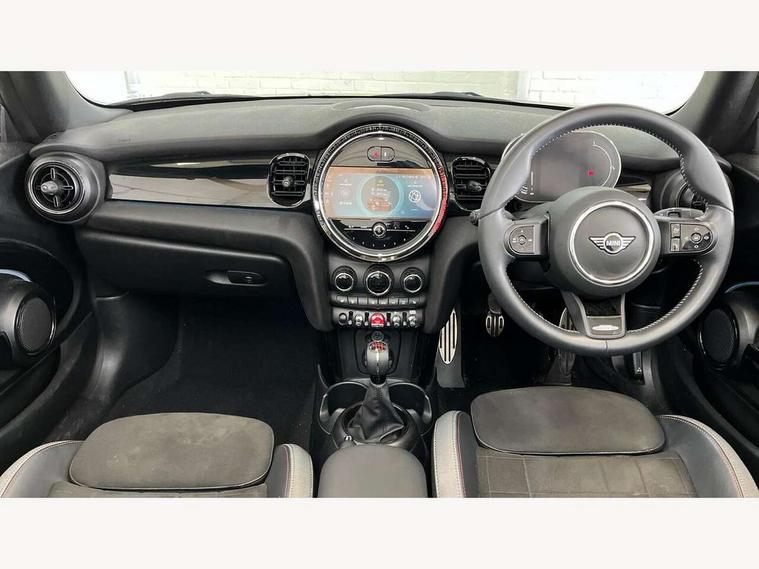 Apple CarPlay, Automatic start/stop function with brake energy recuperation, Compatible mobile phone bluetooth with audio streaming, Cruise control with brake assist, Electro-mechanical speed dependant steering assistance, Instrument cluster, MINI Driving Modes - centre toggle switch to control driving setting (sport, mid and green), Mini E-call, MINI TeleServices, On board computer, Rear park distance control, Service interval indicator, 6 Speed manual transmission including gear change indicator display, Adaptive suspension, Double Vanos system, Fully variable valve control, High precision injection, Performance Control, 8.8" touchscreen with LED ring, FM tuner and DAB digital radio, Automatic headlight activation switch, Body colour fuel filler cap, Chrome border high gloss black slats radiator grille, Dynamic brake lights, Electric windows, Fully electric black softtop with integrated sunroof functionality, Heated rear window, Heated windscreen washer jets, John Cooper Works - aerodynamic kit (front and rear apron, spoiler), front and rear sport bumpers and part-painted side sills with door sill finishers, LED headlight with closed ring and daytime driving lights, Left exhaust tailpipe with chrome finisher, Metal door sill strips with MINI imprint, Model logo Cooper on right of tailgate, Rain sensor window wipers, Rear boot, Rear fog lights, Rear LED lights with union jack design, Side scuttle panel with integrated indicator, Sun/heat protection glass, Third brake light, White indicator lenses, 12V Accessory socket in centre console, 2 seat bench in 2nd row, 4 lashing eyes in luggage compartment, 50/50 split folding rear seats, Chrome interior highlights, Colour line - Carbon black, Cupholders, Easy Load boot handles, Front and rear isofix with front passenger airbag deactivation, Glove compartment, Height and length steering column adjustment, Interior lighting with 12 different colours running across the dashboard, underneath door bezel illuminated laser engraved design on central display, John Cooper Works walk nappa leather steering wheel with grey seam and John Cooper Works badge on piano black lower steering wheel spoke, Leather gearshift lever and handbrake gaiters, Leatherette integrated headrest, adjustable thigh support with john cooper works logo, LED reading lights, vanity mirror lights, front foot well light and spotlight on front seats, Manual air conditioning, Mechanical seat adjustment, driver seat height adjust, forward/back and front seats backrest, Multifunction steering wheel, Rear head restraints, Single front passenger seat, Sports steering wheel, Storage compartments in doors, Sunvisors with vanity mirrors, Velour floor mats, Convertible pack with comfort access - Mini Convertible, Piano black exterior pack - Mini Convertible, 3 point seatbelts on all four seats, 6 Airbags - front, side and seat belt tensioners, Active rollover protection, Anti-lock braking system (ABS), DSC - Dynamic Stability Control, Front and rear disc brakes, Hill start assist, Single tone fanfare horn, Tyre pressure monitoring system, Alarm system with tilt sensor, monitoring doors, bonnet interior and tailgate, Electronic vehicle immobiliser, Keyless Go, Piano black interior trim, Tool kit,