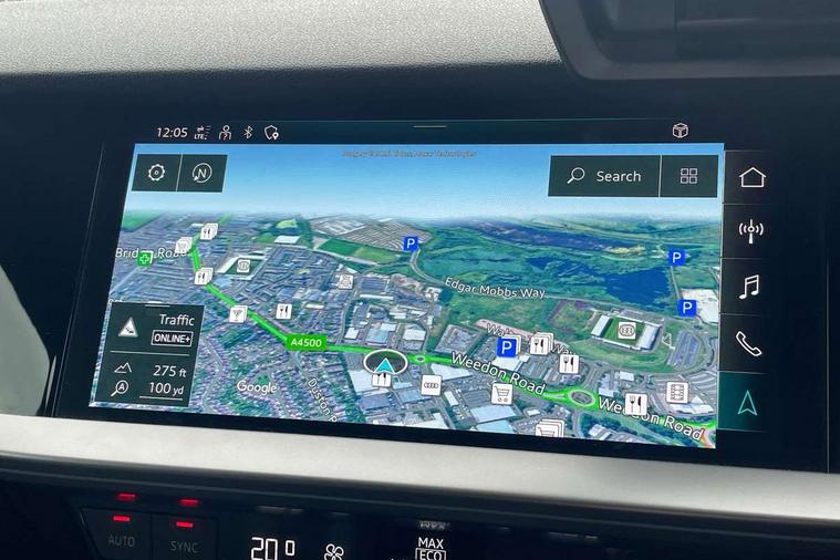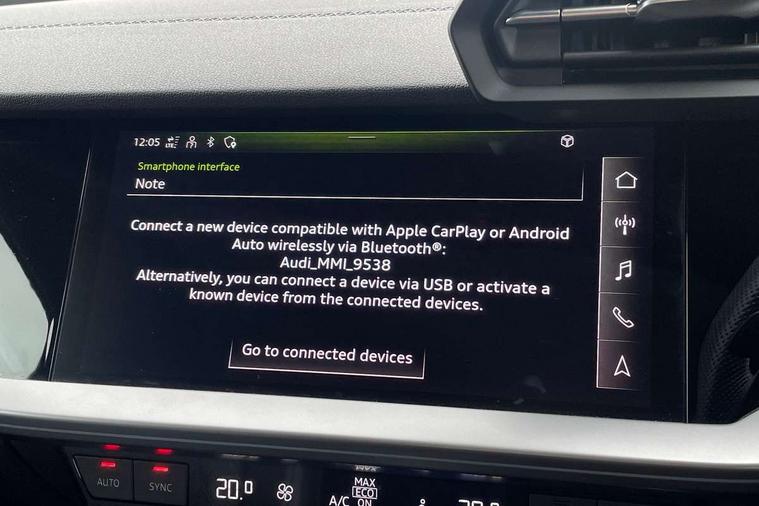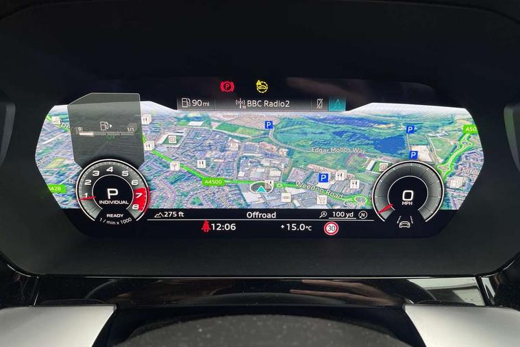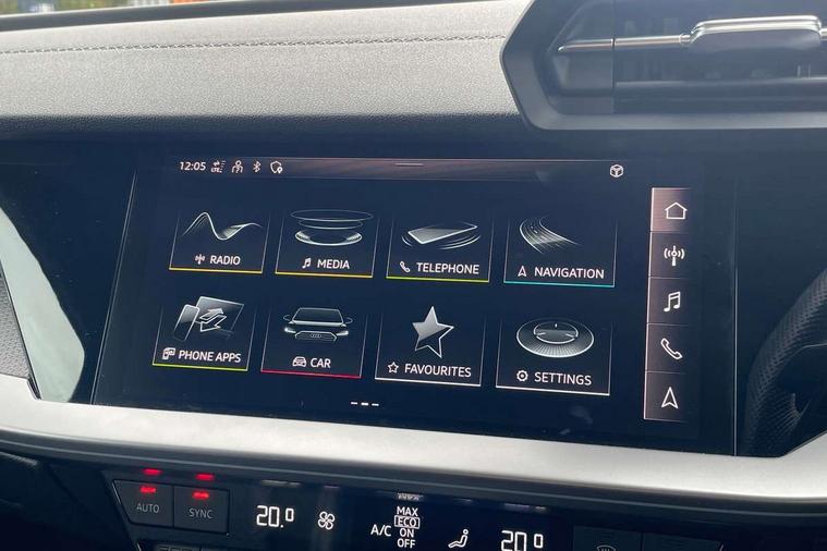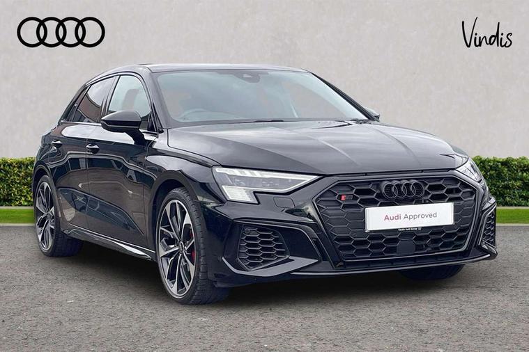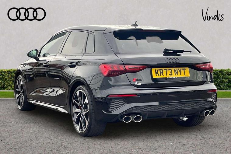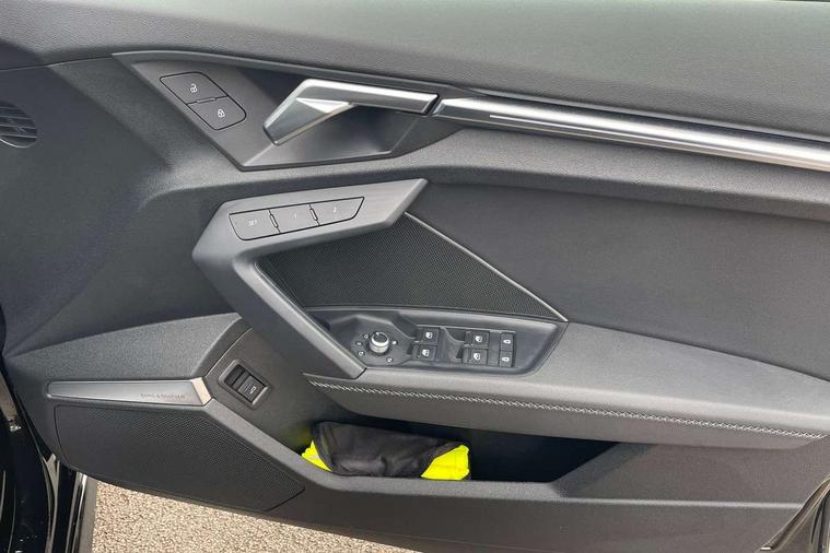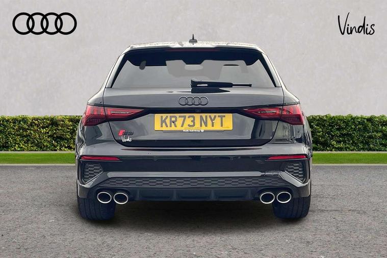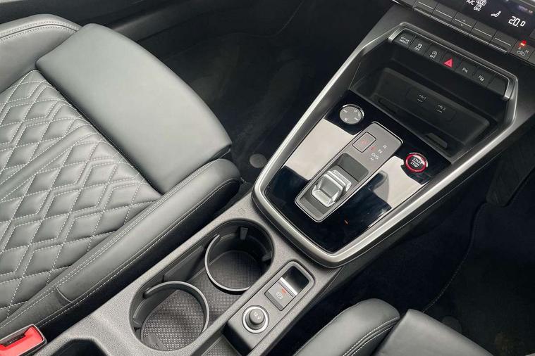 Adaptive cruise assist, Audi drive select (Auto, Comfort, Dynamic, Efficiency and Individual), Audi smartphone interface, Audi virtual cockpit plus - 12.3" full HD resolution dynamic digital instrument cluster, Automatic start/stop system with recuperation, Bluetooth interface, Collision avoidance assistant, e-Call (emergency call), Head up Display, Lane change assistant with exit warning system and rear cross traffic alert, Lane departure warning system, MMI Navigation Plus with high resolution 10.1" colour touch screen display, Power operated tailgate - Luggage compartment lid opens/closes electrically, Progressive steering, Service indicator, Trip computer, Voice control system with natural language interaction, Quattro permanent all wheel drive, S suspension with damper control, 2xUSB-C connection with data and charging functions, DAB Digital radio, 3rd brake light, Acoustic glass windscreen, Audi Beam uses LEDs to project Vorsprung onto the ground as you exit your S3, Auto dimming frameless rear view mirror, Carbon door mirror housings, Dual branch oval twin tailpipes in chrome plated finish, Electrically adj heated/folding + automatically dimming exterior mirrors with memory + automatic kerb side function for passenger side exterior mirror, Front electric windows, Headlight washers, Heat insulating glass windscreen, Illuminated door sills with aluminium inserts at the front with S logo, Integrated LED indicators in door mirrors, LED daytime running lights, Light and rain sensors, Privacy glass - dark tinted rear window, rear door and side windows, Rear electric windows, Rear side air outlets in grained matt black, Rear side wing doors, Rear wiper, 12V socket and storage compartment in front centre console, 3 seat bench in 2nd row, 3 spoke leather multifunction steering wheel with gear shift paddles, 4 way electrically adjustable lumbar support for driver and front passenger, 60/40 split folding rear seat bench, Black cloth headlining, Dual zone electronic climate control, Fine Nappa leather upholstery with front sports seats S embossed logo, Front and rear centre armrest in artificial leather, Front and rear headrests, Front/rear floor mats, Height and reach adjustable steering wheel, Interior lighting - glove compartment light and right hand side, Luggage compartment floor covering, Seat side bolsters, Single front passenger seat, Stainless steel pedals and front footrest in black, Aluminium interior elements pack - A3 Sportback, Black styling pack - A3 Sportback/S3, Body styling design pack - S3, Extended ambient lighting pack - A3 Sportback, Storage pack - A3 Sportback, Technology pack pro with 360 camera - A3 Sportback/Voursprung, 3x3 point rear seat belts, Driver and front passenger airbag with passenger airbag deactivation, Electronic Stabilisation Control (ESC) including ABS, ASR and EDL, First aid kit with warning triangle and 2 safety vests, Front side airbags with head airbags and interaction airbag, Pre-sense front with pedestrian and cyclist detection, Seatbelt monitoring, Tyre pressure loss indicator, Anti theft alarm, Anti-theft wheel bolts, Electronically operated child locks, Immobiliser, Remote control central locking, Carbon inlays, accent surfaces in the dashboard and centre console in platinum grey silk effect paint finish,