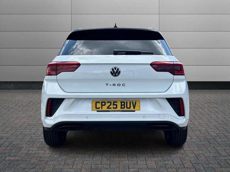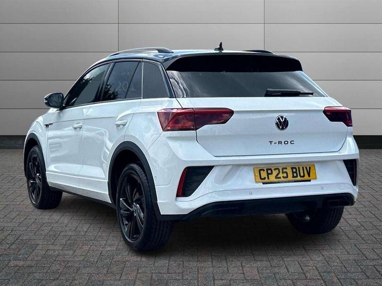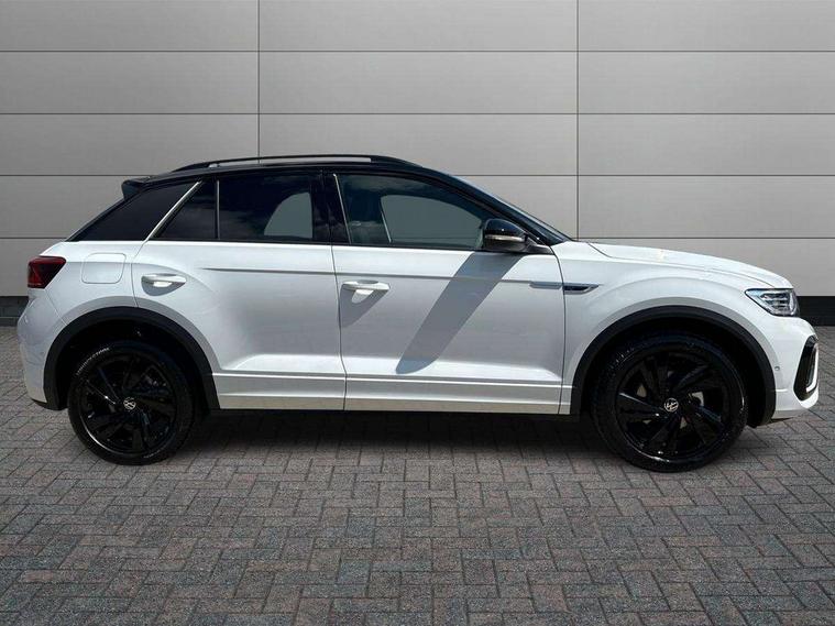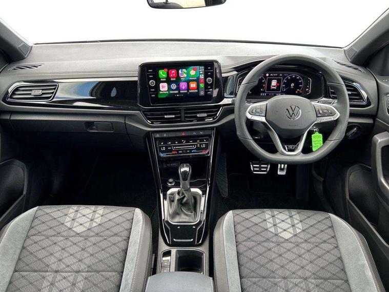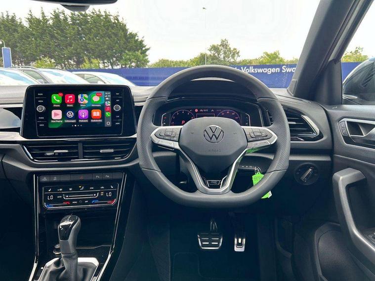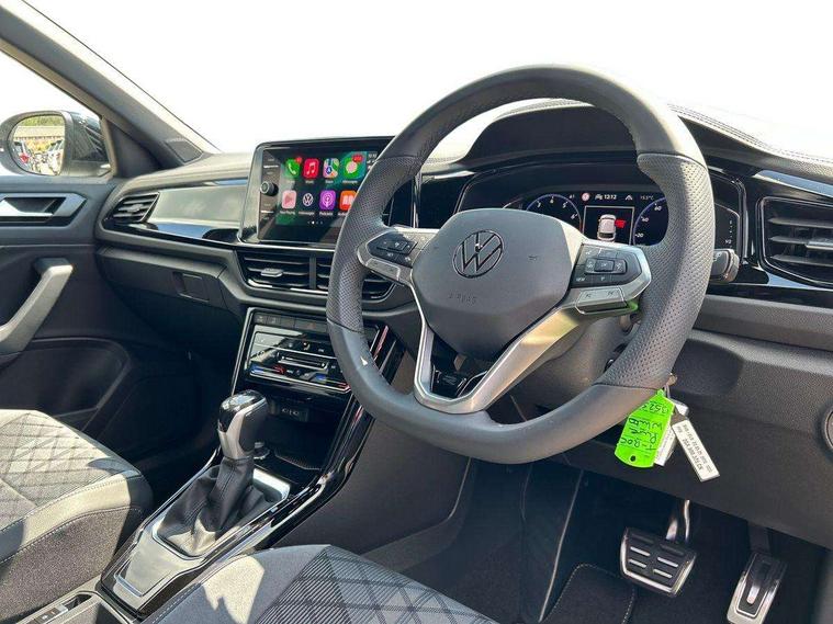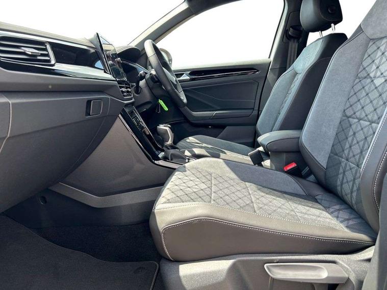 10.25" Digital cockpit pro, Advanced driver attention and drowsiness monitor, Emergency call service, Lane keeping system Lane Assist, Mobile phone interface, Modified key software - reduce switch off time for key status change to Long no motion, Online services, Park assist including front and rear parking sensors, Power assisted speed sensitive steering, Service interval indicator, Tailgate/trunk lid release from outside, Think blue trainer driver tips and journey analysis, Warning sound and light for front seatbelts unfastened, Wireless app connect, Battery regeneration during braking, Rear shock absorption chassis with increased ride height, Start/stop function with battery regeneration, DAB Digital radio, Diversity antenna for FM reception, Front and rear 6 speakers, Music playback - MP3, WMA and AAC files, Premium USB cable in choice of either Apple or Android smartphone compatibility, SD card slot, Simultaneous pairing of 2 compatible mobile devices, Title and cover art display, We Connect and We Connect Plus functionality, Auto dimming interior rear view mirror, Automatic hazard lights activation under emergency braking, Automatic headlight control with LED separate daytime running lights with coming/leaving home function, Dynamic cornering light, Electrically adjustable and heated door mirrors, Extended roof spoiler, Exterior mirrors aspherical on driver side, convex on front passenger side, External USB type C socket and charging sockets, Front windscreen wiper with intermittent wipe and 4 position delay, Heated rear window, Illuminated front grille, IQ LED matrix headlights, LED 3rd brake light, LED rear number plate lights, LED rear tail lights with dynamic turn signal, Light mode for poor weather, rain, fog or snow, Power windows with comfort operation and circuit breaker, R-Line design body coloured bumpers, Rain sensor, Rear exhaust tailpipe, Rear fog light on one side and reversing lights on both sides, Rear side wing doors, Rear wash/wipe with intermittent wipe setting, Remote electrically foldable door mirrors, puddle lights and reverse activated passenger's door mirror, 12V power socket in centre console, 3 rear head restraints, 3 seat bench in 2nd row, 4 load lashing points in luggage compartment, Air care climatronic air conditoning system with active combination filter and 2-zone temperature control, Artvelours cloth upholstery, Black roof lining, Chrome plated radiator grille inserts, air vent surrounds and light switch surrounds, Door and side trim panel with leatherette insert, Drawer under drivers seat, Driver seat height adjust, Driver's seat lumbar support, Front + rear carpet mats, Front centre armrest, Front comfort sports seats, Front cupholders x 2, Front footwell illumination, Front reading light, Front scuff plates with R Line logo, Front seat back storage pockets, Glove compartment door with light, Instrument lighting, white adjustable panel illumination, Interior ambient lighting and surround lighting, Interior light delay, Isofix child seat preparation, Leather gearshift handle, Leather wrapped multifunction steering wheel with paddle shift, Load-through provision with cup holder when folded down ('Unsplit rear seat bench, split folding backrest, with centre armrest), Luggage compartment lighting, Non-folding front passenger seat backrest, Passenger seat height adjuster, Passenger seat lumbar support, Single front passenger seat, Stainless steel pedals, Storage compartment in left and right luggage area, Storage compartment in rear doors, Storage compartments in driver and front passenger doors, Sunvisors with illuminated vanity mirrors, Variable boot floor, height adjustable and removable, Winter pack without heated windscreen washer jets - T-Roc, 3 point height adj front seatbelts + pretensioners, 3 point seatbelts in outer rear with ECE label, ABS, Child locks on rear doors, City emergency braking and pedestrian monitoring, Driver and front passenger airbag with front passenger airbag deactivation, Driver and front passenger safety-optimised head restraints, Drivers seatbelt reminder, Electronic parking brake, Electronic Stability Control (ESC) inc EDL (Electronic Differential Lock) and ASR (Traction Control), Front and rear passengers curtain airbag system including front side airbags, Front disc brakes, Hill start assist, Predictive pedestrian protection, Rear disc brakes, Two tone horn, Tyre pressure loss indicator, Volkswagen roadside assistance, Tool kit, Trims for alloy wheels, Tyre mobility kit including compressor and sealing foam,
