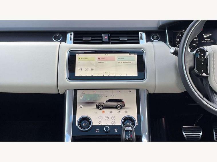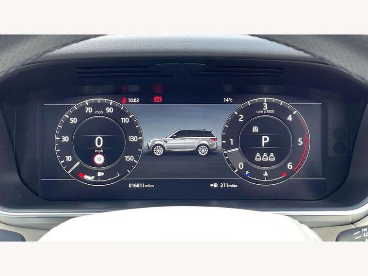All Terrain Info Centre, Android Auto, Apple car play, Bluetooth connectivity, Electric power assisted steering (EPAS), Incontrol apps in vehicle touchscreen, Interactive Driver display instrument cluster, Mist sensor, Navigation pro system with 10" touch screen, app interface and media storage, Pro services and wifi hotspot, Push button start, Remote premium - Upgraded Incontrol remote app including remote climate control (engine dependent), remote lock + Unlock and remote beep + flash, TFT Virtual Instrument Panel, Touch pro duo system, Trip computer, Gradient release control (GRC), Bluetooth audio streaming, DAB Radio (Digital Audio Broadcasting), Incontrol protect - SOS emergency call with automatic collision detection, optimised assistance call and Incontrol remote app essential, USB/aux input socket, Acoustic front and toughened rear side glass, Acoustic laminated front windows, Adaptive brake lights, Auto dimming interior rear view mirror, Automatic headlights, Body coloured bumpers, Body coloured door mirrors, Centre high mounted stop light, Electric windows with one touch open/close and anti trap, Electrical towing preparation, Engine cover, Follow me home lighting, Front and rear recovery eyes, Front fog lights, Headlight power wash, Heated rear window, Heated windscreen includes heated washer jets, LED rear lamps, Privacy glass (Tinted glass rear of B pillar), Rain sensing windscreen wipers, Rear fog lights, Rear side wing doors, Rear wash/wipe, Remote window closing, Side repeater indicators in mirror, Sport Badge in silver, Standard bonnet, Trailer stability assist, 2 way active front head restraints, 2 way rear head restraints, 3 seat bench in 2nd row, 60/40 load through rear seats, Auto air recirculation, Bright metal foot pedals, Centre console with armrest, Climate control memory, Customer configurable single point entry, Driver's footrest, Front and rear cupholders, Front door storage space, Front map lights, Front seat back map pockets, Front stowage pocket, Front/rear passenger grab handles, Heated steering wheel, Isofix child seat preparation, Leather steering wheel with Atlas inserts, Loadspace light, Loadspace mounting provisions, Lockable glovebox, Multifunction steering wheel, Pollen filter, Power socket, Reach/rake electric adjustable steering column + entry/exit tilt away, Rear centre armrest, Rear ISOFIX, Roller blind loadspace cover, Satin chrome gearshift paddles, Single front passenger seat, Three 12V accessory power outlets, Smartphone pack - Range Rover Sport, 3 point seatbelts on all seats, Anti-lock braking system (ABS), Brake pre-fill technology, Cornering brake control (CBC), Curtain airbags, Customer configurable autolock, DSC - Dynamic Stability Control, Dual stage driver/passenger airbags, EBD - Electronic brakeforce distribution, Electric parking brake, Electronic traction control, Emergency braking includes city, urban AEB and pedestrian, Front seatbelt pretensioners, Gradient acceleration control, Grey anodised brake calipers, Height adjustable front seatbelts, Hill descent control, Hill launch assist, Low traction launch, Passenger seat occupant detector with front airbags, Power operated child locks, Roll stability control, Seatbelt warning, TPMS (Tyre pressure monitoring system), Immobiliser, Intrusion sensor, Keyless entry, Locking wheel nuts, Perimetric and volumetric anti theft alarm, Remote locking, Grand black veneer,