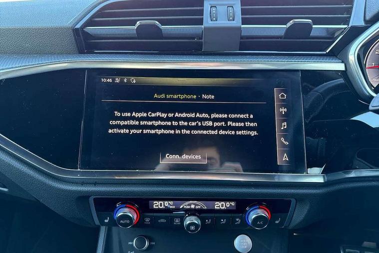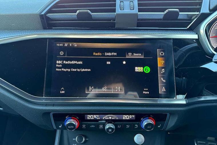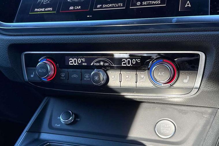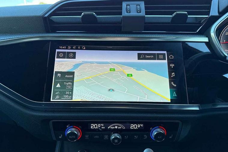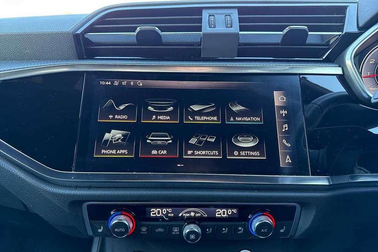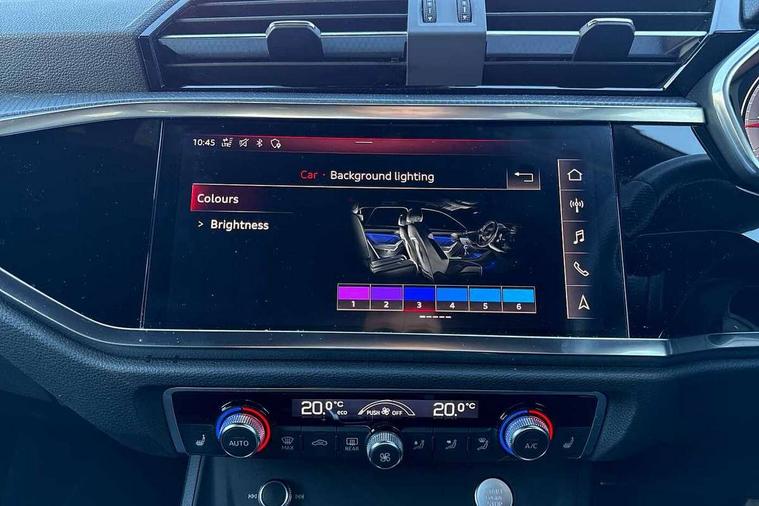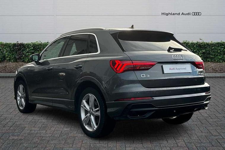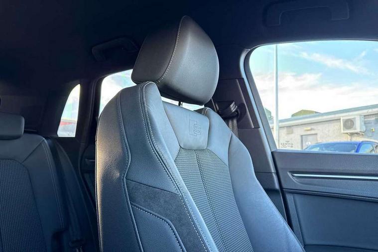 Audi connect safety and service (e-call), Audi drive select, Audi lane departure warning, Audi side assist, Audi smartphone interface, Bluetooth interface, Camera based traffic sign recognition, MMI navigation plus with MMI touch, Power opening/closing tailgate, Progressive steering, Rear parking sensors, Service interval indicator, Stop/start system, Voice control system, Sports suspension, 1 x USB type C and 1 USB type A charging points, 6 speakers, DAB digital radio module, Acoustic windscreen, Aluminium roof rails, Aluminium window trim, Auto dimming rear view mirror, Body coloured bumpers, Diffuser in matt Platinum grey, Electrically adjustable and heated door mirrors with integrated LED side indicators, Front and rear electric windows, Front fog lights, Front side air inlets in matt platinum grey, Front spoiler blade in matt platinum grey, Grille vertical bars in aluminium silver/Matt, High gloss black finish B and C pillars, LED headlights with LED daytime running lights and dynamic rear indicator, LED rear lights, Privacy glass, Rain and light sensors, Rear diffuser strip in matt titanium black, S Line badge on wings, S Line front and rear bumpers, Side skirt insert in matt Platinium grey, Titanium black radiator grille, 12V socket in rear centre console, 40:20:40 split folding rear bench seat, Adjustable rear seat bench/backrest with centre armrest and cupholder, Aluminium door sill trims, Black cloth headlining, Dual zone climate control, Front and rear black floor mats with contrast stitching in rock grey, Front and rear headrests, Front centre armrest with storage compartment and angle adjustment, Illuminated door sill trims with S logo, ISOFIX child seat mounting and Top Tether with front passenger airbag deactivation, Manual front seats with height adjustment, Perforated leather gearknob, Stainless steel luggage compartment sill finisher, Stainless steel pedals, Non smoking pack - Q3, 3x3 point rear seatbelts, 6 airbags - Driver, front passenger, curtain and side windows, Electrically operated child locks on rear doors, Electromechanical parking brake, Electronic stabilisation control including ABS, ASR and EDL, Hill hold assist, Pre sense basic, Seatbelt monitoring, Tyre pressure warning, Warning triangle and first aid kit, Anti theft alarm, Anti theft wheel bolts, Audi pre-sense front with pedestrain and cyclist recognition, Remote central locking, Dark matt brushed aluminium inlay, MMI touch colour display in gloss black with aluminium surround,