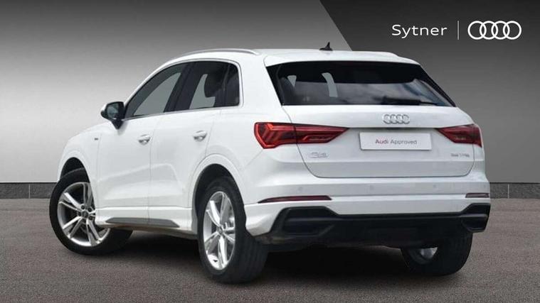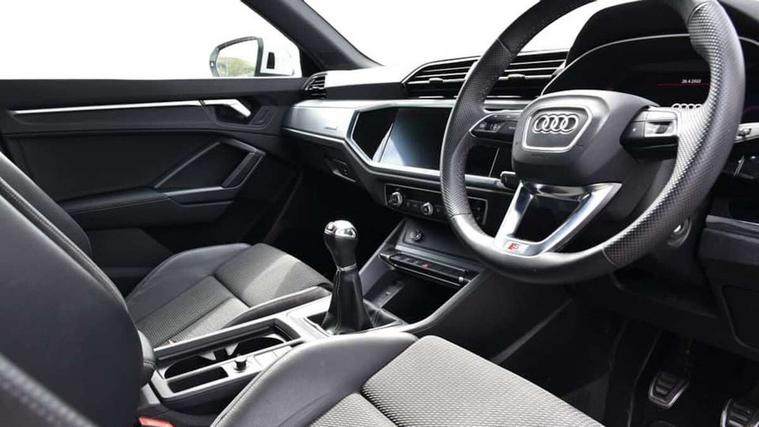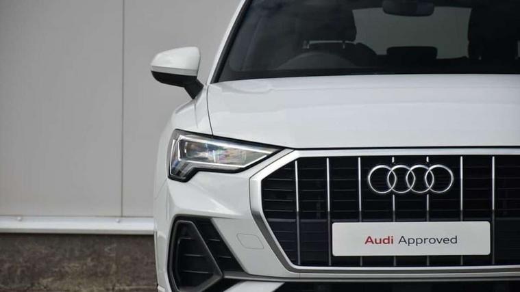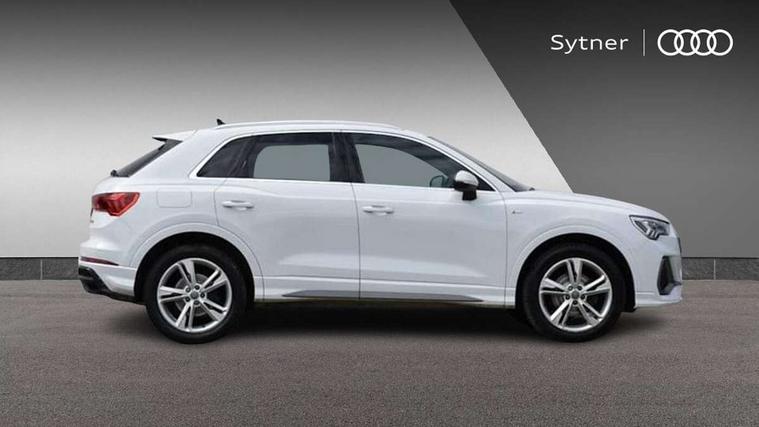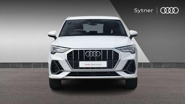Audi connect safety and service (e-call), Audi drive select, Audi lane departure warning, Audi side assist, Audi smartphone interface, Bluetooth interface, Camera based traffic sign recognition, Cruise control + speed limiter, MMI navigation plus with MMI touch, Power opening/closing tailgate, Progressive steering, Rear parking sensors, Service interval indicator, Stop/start system, Voice control system, Sports suspension, 1 x USB type C and 1 USB type A charging points, 6 speakers, DAB digital radio module, Acoustic windscreen, Aluminium roof rails, Aluminium window trim, Auto dimming rear view mirror, Body coloured bumpers, Diffuser in matt Platinum grey, Electrically adjustable and heated door mirrors with integrated LED side indicators, Front and rear electric windows, Front fog lights, Front side air inlets in matt platinum grey, Front spoiler blade in matt platinum grey, Grille vertical bars in aluminium silver/Matt, High gloss black finish B and C pillars, LED headlights with LED daytime running lights and dynamic rear indicator, LED rear lights, Privacy glass, Rain and light sensors, Rear diffuser strip in matt titanium black, S Line badge on wings, S Line front and rear bumpers, Side skirt insert in matt Platinium grey, Titanium black radiator grille, 12V socket in rear centre console, 40:20:40 split folding rear bench seat, Adjustable rear seat bench/backrest with centre armrest and cupholder, Aluminium door sill trims, Black cloth headlining, Dual zone climate control, Front and rear black floor mats with contrast stitching in rock grey, Front and rear headrests, Front centre armrest with storage compartment and angle adjustment, Illuminated door sill trims with S logo, ISOFIX child seat mounting and Top Tether with front passenger airbag deactivation, Manual front seats with height adjustment, Perforated leather gearknob, Stainless steel luggage compartment sill finisher, Stainless steel pedals, Non smoking pack - Q3, 3x3 point rear seatbelts, 6 airbags - Driver, front passenger, curtain and side windows, Audi pre-sense front with pedestrain and cyclist recognition, Electrically operated child locks on rear doors, Electromechanical parking brake, Electronic stabilisation control including ABS, ASR and EDL, Hill hold assist, Pre sense basic, Seatbelt monitoring, Tyre pressure warning, Warning triangle and first aid kit, Anti theft alarm, Anti theft wheel bolts, Remote central locking, Dark matt brushed aluminium inlay, MMI touch colour display in gloss black with aluminium surround,