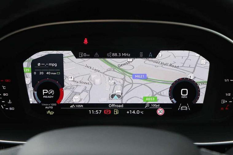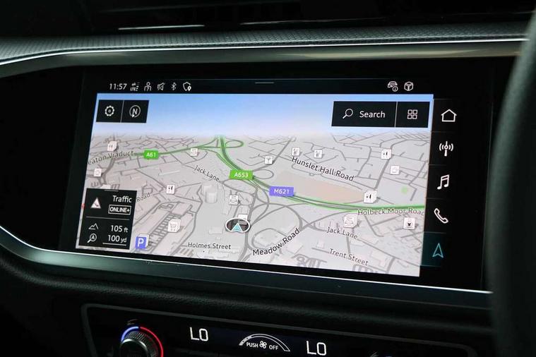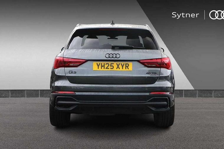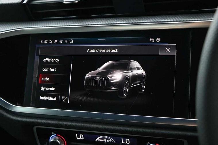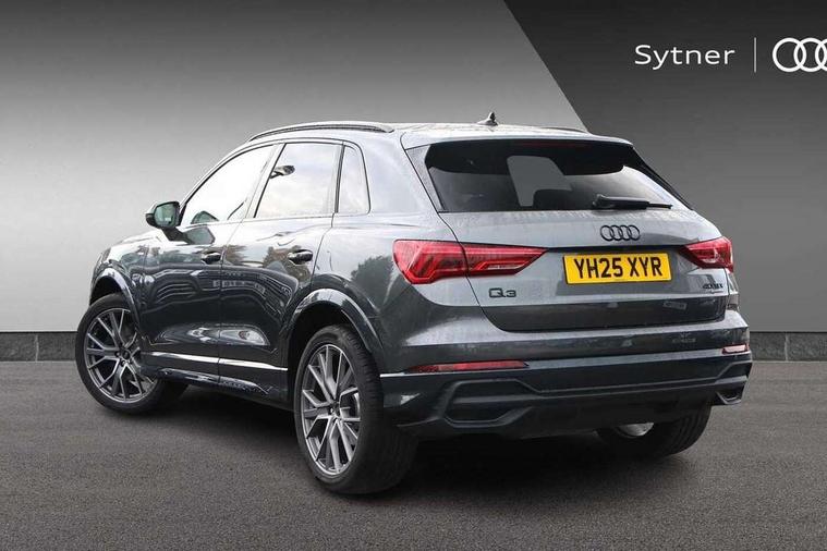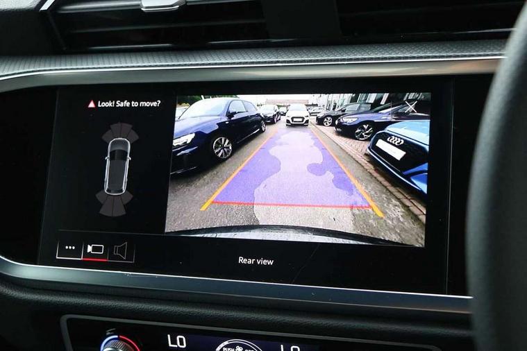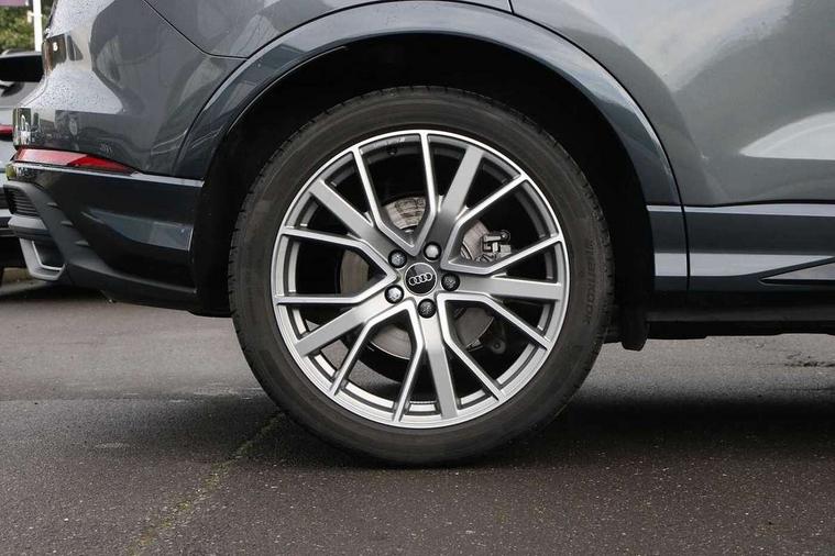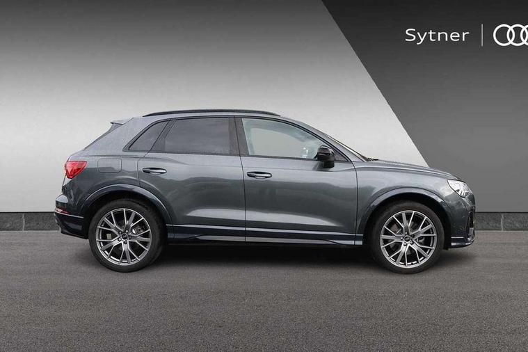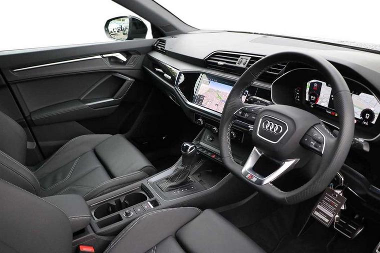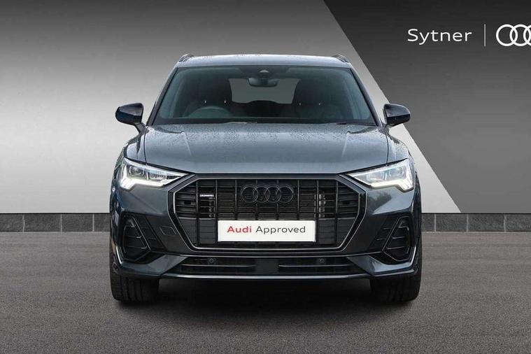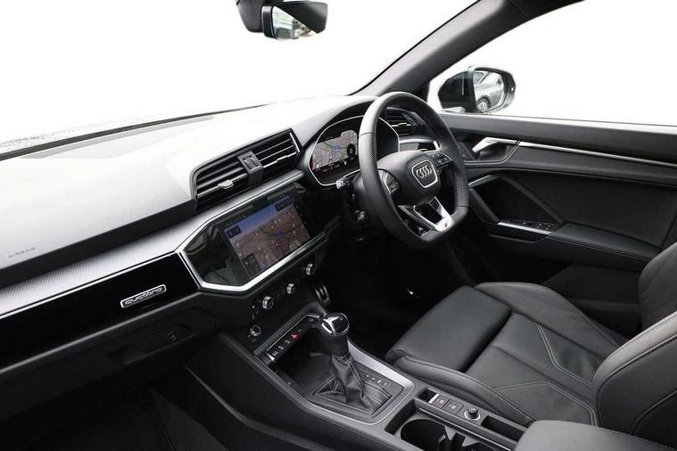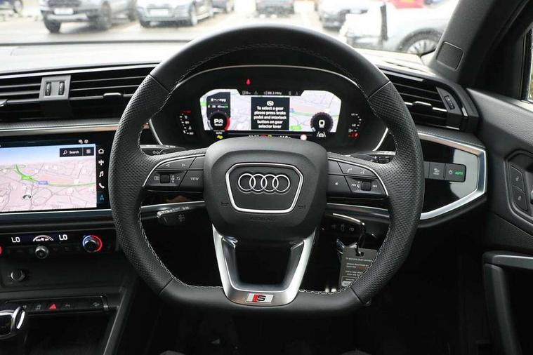 Amazon alexa Integration, Audi connect safety and service, Audi drive select, Audi lane departure warning, Audi Virtual Cockpit - 10.25" display, Bluetooth interface, Camera based traffic sign recognition, Distraction and Fatigue warning, Legal emergency call, MMI Navigation Plus with high resolution 10.1 inch touchscreen colour display, Power operated tailgate, Progressive steering, Service interval indicator, Smartphone interface includes wireless Apple carplay/Android Auto, Start stop system with recuperation, Voice control system with natural language interaction, Diesel particulate filter, Sports suspension, 2 USB-C ports with charge and data functions, 6 passive loudspeakers, DAB digital radio module, Acoustic windscreen, Audi Beam uses LEDs to project the Audi logo onto the ground as you exit your Q3, Auto dimming door mirrors, Auto dimming frameless rear view mirror, Black roof rails, Electrically folding, adjustable and heated door mirrors with integrated LED side indicators and kerb view function for passenger side, Front and rear electric windows, Front fog lights, Grille vertical bars in aluminium silver/Matt, High gloss black finish B and C pillars, LED Dynamic rear indicators, LED headlights with LED daytime running lights, LED rear lights, LED third brake light, Privacy glass dark tinted rear and rear-side windows (from B-pillar backwards), Rain and light sensors, Rear diffuser grille in grained matt black, Rear diffuser strip in matt anthracite black, Rear side wing doors, Rear wiper, S line bumpers in contrasting Manhattan grey, Variable front intermittent wipers, 12V socket in rear centre console, 3 seat bench in 2nd row, 40:20:40 folding with manual adjustment for 60:40 forwards/backwards position and backrest angle, Adjustable rear seat bench/backrest with centre armrest and cupholder, Black cloth headlining, Dual zone electronic climate control, Electric lumbar support, Front and rear black floor mats with contrast stitching in rock grey, Front and rear headrests, Front centre armrest, Height and reach adjustable steering wheel, Illuminated door sill trims with S logo, ISOFIX child seat mounting for front passenger with airbag deactivation and outer rear seat including top tether attachment point for outer rear seats, Manual front seats with height adjustment, Perforated leather gearknob, Single front passenger seat, Stainless steel luggage compartment sill finisher, Stainless steel pedals, Twin leather upholstery with front sport seats + S embossing, Black styling pack - Q3, Non smoking pack - Q3, 3x3 point rear seatbelts, 6 airbags - Driver, front passenger, curtain and side windows, Audi pre-sense front with pedestrain and cyclist recognition, Electrically operated child locks on rear doors, Electromechanical parking brake, Electronic stabilisation control including ABS, ASR and EDL, Front seatbelt reminder, Hill descent control, Hill hold assist, Pre sense basic, Seatbelt monitoring, Tyre pressure warning, Warning triangle and first aid kit, Anti theft alarm, Anti theft wheel bolts, Immobiliser, Remote central locking, Aluminium look interior elements, Detail dashboard around MMI touch colour display in glass look, black with surround in aluminium look, Leatherette door armrest, Piano black inlay,