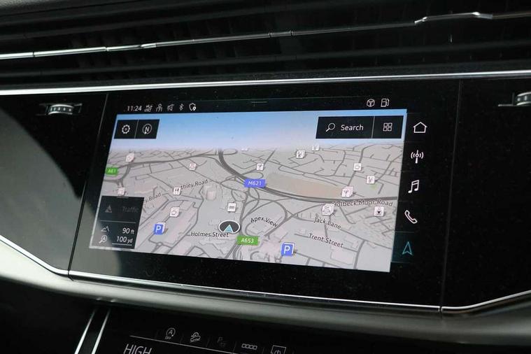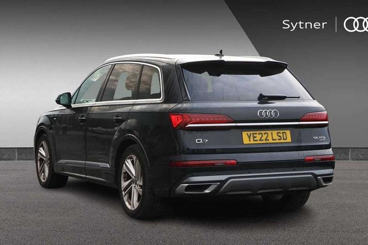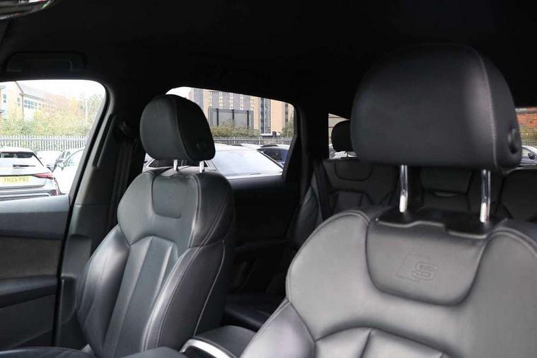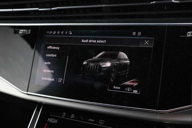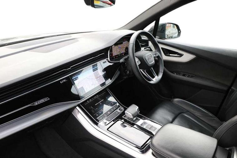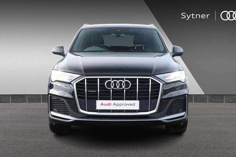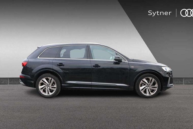 Audi connect safety and service (e-call), Audi connect with Amazon Alexa Integration, Audi drive select (Auto, Comfort, Dynamic, Efficiency, Individual, Off-road and All road), Bluetooth interface, Camera based traffic sign recognition, Electromechanical steering, MMI navigation plus with MMI touch screens includes 10.1" and 8.6" screens with haptic feedback, Natural voice recognition, Parking system plus with 360 degree display (front, rear and side sensors) - acoustic and visual park assist system, Power operated tailgate, Rear view camera, Smartphone interface includes wireless Apple carplay/Android Auto, Start/stop system, 48V Mild hybrid technology, 85 litre fuel tank, Adaptive air suspension, Quattro all wheel drive with self locking centre differential, Audi music interface - front 2 USB-C ports with charger and data functions, Audi sound system with 6 channel amplifier, 180 watt amplifying capacity and 10 loudspeakers including subwoofer, DAB digital radio module, 3rd brake light, Aluminium roof rails, Aluminium window trim, Audi matrix LED headlights with dynamic front and rear indicators, Auto dimming frameless rear view mirror, Body coloured door mirrors, Electrically adj heated/folding + automatically dimming exterior mirrors with memory + automatic kerb side function for passenger side exterior mirror, Heat insulating glass in windshield, Integrated LED indications in door mirrors, LED daytime running lights, LED rear tail lights, Privacy glass - dark tinted rear and rear side windows from B-pillar backwards, Rear side wing doors, Rear wiper, S Line badge on wings, S line bumpers in full body colour paint finish, S line roof spoiler, S line styling side ventilation grilles and side skirts, 2 seat bench in 3rd row, 2 zone automatic climate control, 3 seat bench in 2nd row, 7 seat layout with ISOFIX points for the front passenger seat and rear passenger seat, Black cloth headlining, Comfort front centre armrest, Electric adjustable front seat with 4 way lumbar support, driver memory functionality, Folding rear seats, Front head restraints, Front/rear floor mats, Heated front seats, Illuminated door sill trims with S logo, LED interior ambient lighting, Luggage compartment cover, Luggage compartment sill protection in stainless steel, Rear head restraints, Single front passenger seat, Stainless steel pedals, Sunvisors with illuminated vanity mirrors, 3 point seatbelts on all rear seats, Audi pre sense front, Child locks on rear doors, Driver and front passenger, front side and curtain airbags, Electromechanical parking brake, Electronic Stabilisation Control (ESC) including ABS, ASR and EDL, Extended pedestrian protection measures, Hill hold assist, Seatbelt monitoring, Tyre pressure loss indicator, Warning triangle and first aid kit, Anti theft alarm, Anti-theft wheel bolts and wheel loosening detection, Keyless Go, Remote central locking, Darkened matt brushed aluminium inlays, Tool kit, Tyre repair kit,
