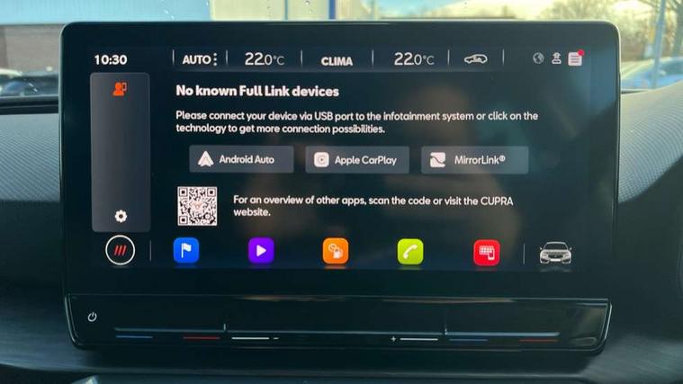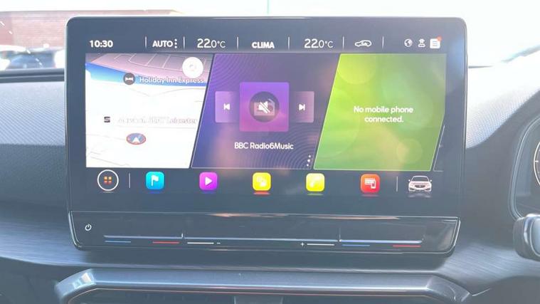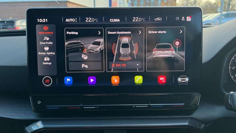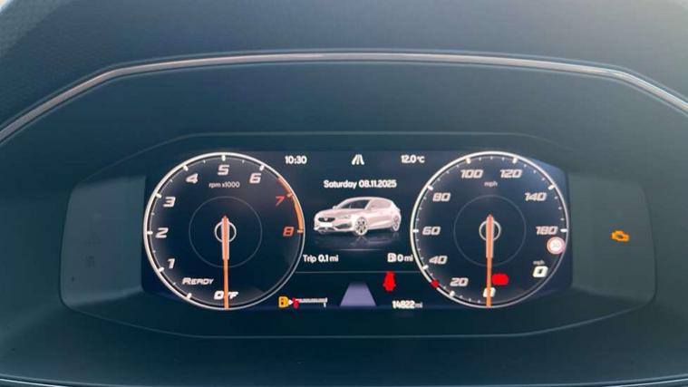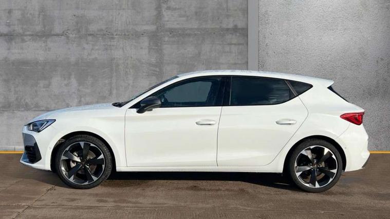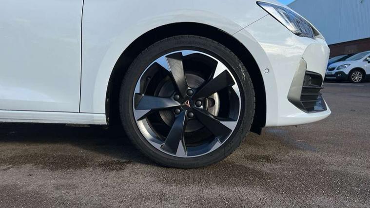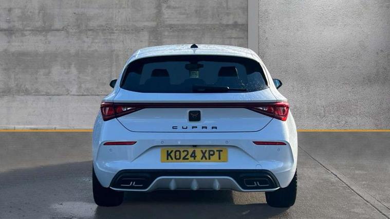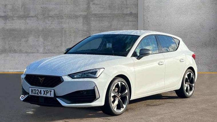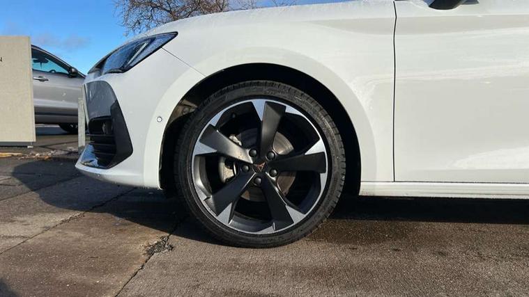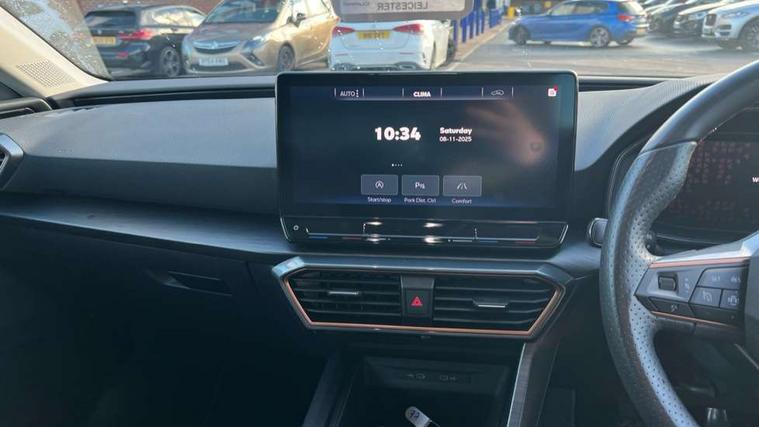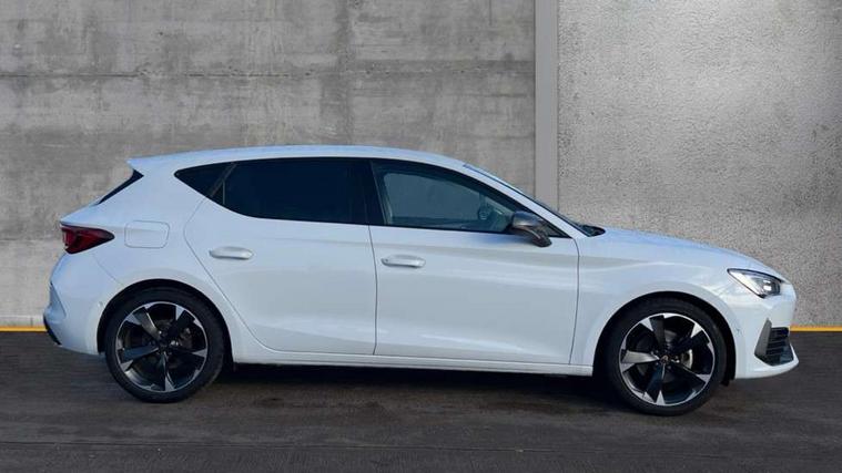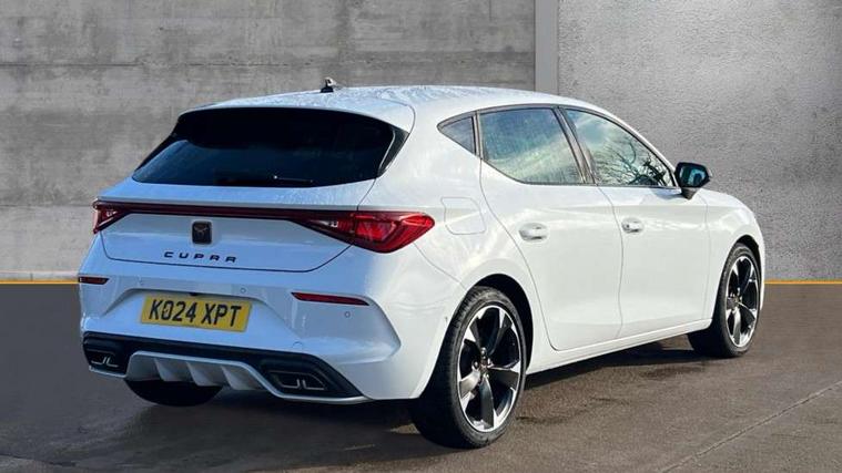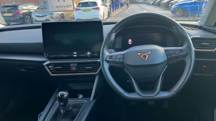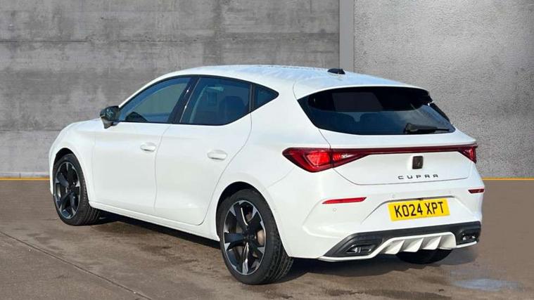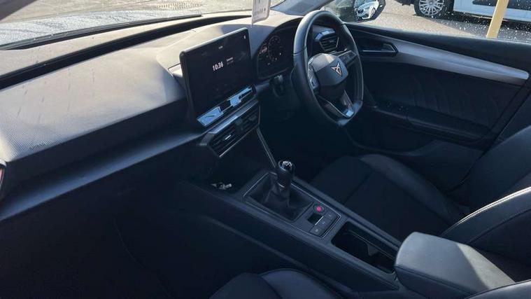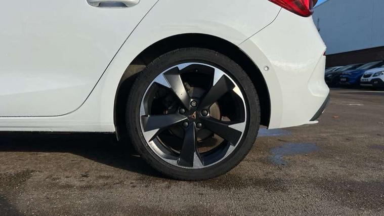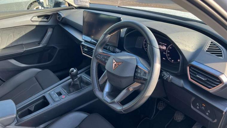 CUPRA drive profile selection with (Comfort/Sport/Individual), throttle response and gearshift mode, Digital cockpit, E-call, Electro mechanical speed sensitive power steering, Four x USB Type C ports (2 in front and 2 in rear), Front assist with forward collision warning braking reaction to vehicles, pedestrians and cyclists, Full link smartphone integration with Mirror Link, wireless Apple CarPlay and wired Google Android Auto, Lane assist, Lockable tailgate, Park assist (inc front/rear parking sensors), Rear view camera, RPM, trip computer, outside temp gauge, instrument light brightness, low fuel warning light, lights on reminder, gearshift indicator, Service interval indicator, Start/stop system with regenerative braking, Wireless phone charger, Sports suspension, Auxiliary input socket, Auto dimming rear view mirror, Body colour door handles, Body coloured bumpers, Cupra sports bumpers, Dark tinted rear windows, Electric front/rear windows, Electrically adjustable, heated and folding door mirrors, LED front fog lamps with cornering function, LED headlights with dynamic turn signals, tail lights, rear fog lights with rear coast to coast lighting, Rain sensing wipers, Rear diffuser with twin exhaust pipe on each side, Rear side wing doors, Rear wash/wipe, Separate daytime running light with automatic headlight control and coming home feature, Third brake light, 12v power supply in centre console, 3 seat bench in 2nd row, 5 headrests, 60/40 split rear bench seat with armrest, Ambient lighting with glovebox, footwell and single monocolour, Cupra Leather flat bottomed, perforated steering wheel, Driver/passenger manual seat height adjustment, Folding boot cover, Front and rear reading lights X 4, Front centre armrest, Front seats manual lumbar adjustment, Grey headlining, Height/reach adjust steering wheel, Illuminated interior front door sills, ISOFIX points in outer rear seats with top tether anchorage points, Jack and tool kit, PVC/Cloth upholstery with copper stitching, Single front passenger seat, Sports seats, Sunvisors with illuminated mirror, Three zone climate control, Media system plus with navigation pack - Leon Cupra, Safety and driving pack (M) - Cupra leon, 3 point seatbelts on all rear seats, ABS, Brake control system - ESC and brake booster, Child proof door locks, Cupra black brake calipers, Driver and front passenger airbags with front passenger airbag de-activation, front side and curtain airbags, Electronic parking brake, Extended safety system - seat belt tensioner, window closure and hazard lights, Hill hold control, Rear disc brakes, Seat belt reminder for front and rear seats, Tiredness recognition system, Tyre pressure monitoring system, Anti theft alarm system with interior monitoring in cab, backup horn and towing protection, KESSY Advanced - Keyless start, keyless entry, Locking wheel bolts, Chrome and copper interior detailing, 18" Machined sport black and silver alloy wheels with 92Y tyres,