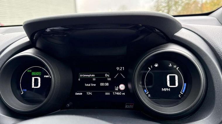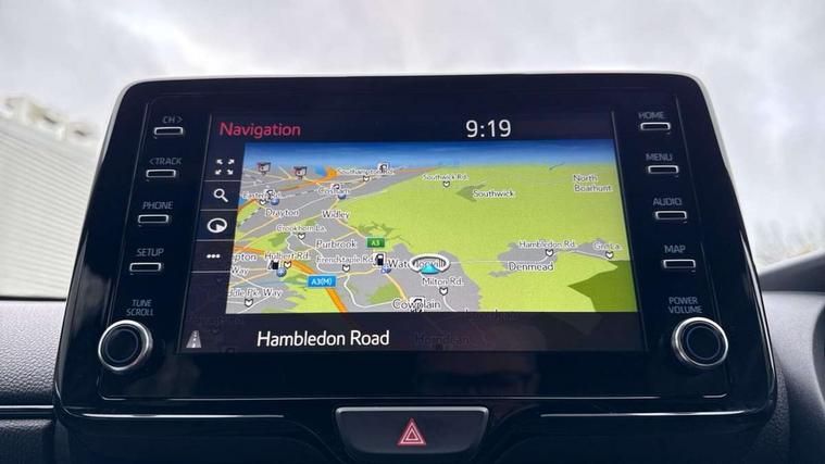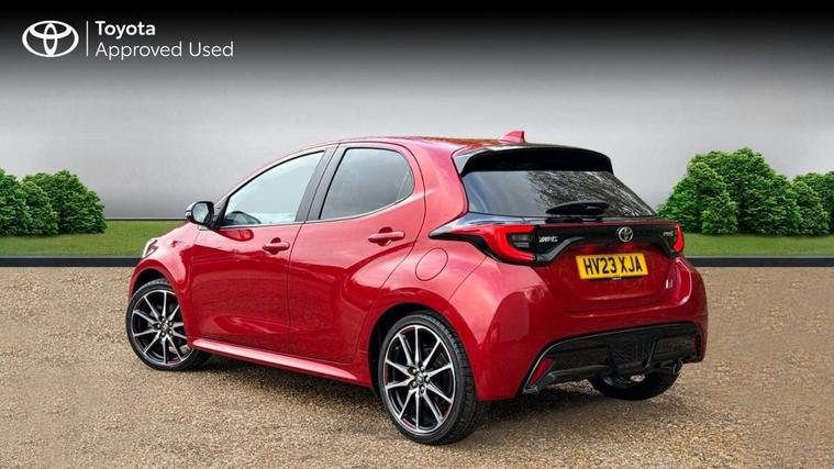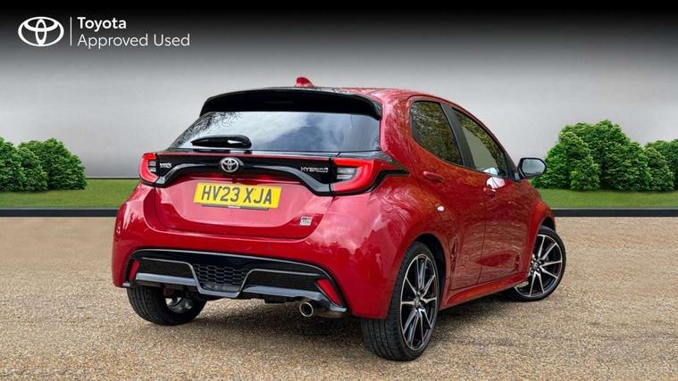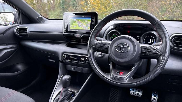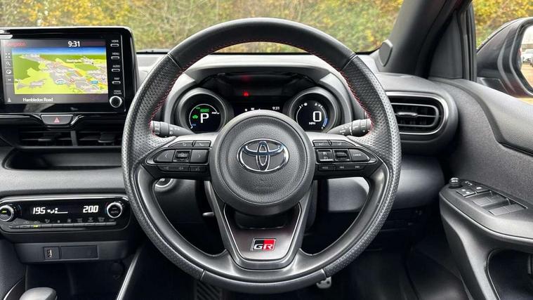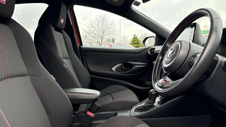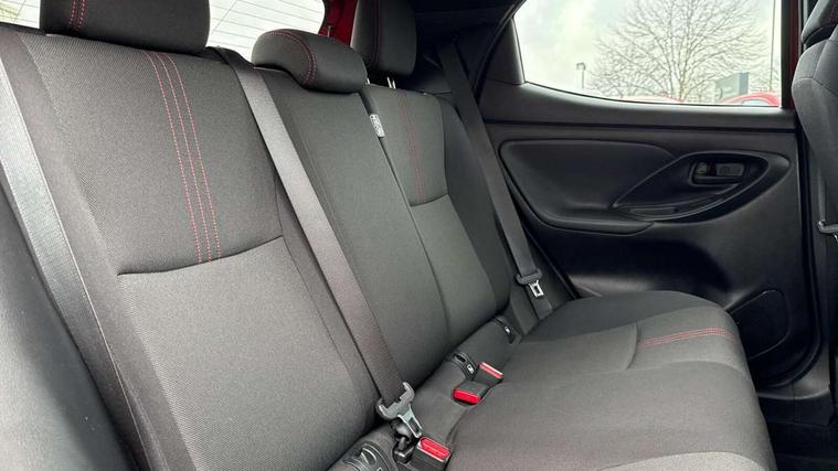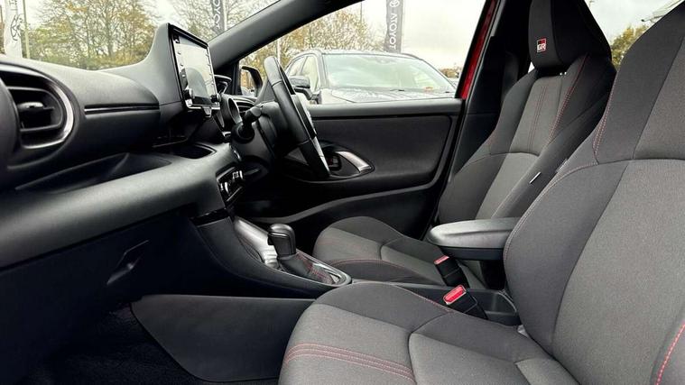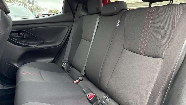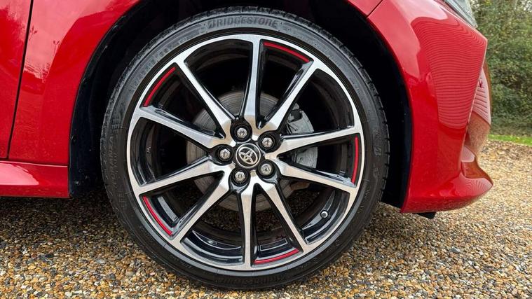 Adaptive cruise control, Adjustable speed limit with speed warning, Bluetooth connectivity, Colour binocular inspired displays with digital speedometer, E-call, Electric power steering, Hybrid energy display, Multi information display switches on steering wheel, Reversing camera, Smartphone integration with Apple CarPlay and Android auto, Tailgate, Voice recognition, Vehicle Stability Control (VSC), 6 speakers, 8" Multimedia display touch screen, Toyota Touch 2 with DAB, USB connection, Acoustic windscreen glass, Auto windscreen wipers, Automatic headlights, Body coloured door mirrors, Dark chrome lower front grille, Electric adjustable heated door mirrors, Follow me home headlights, Front auto power windows with anti jam protection, Full LED rear lights, LED daytime running lights, LED front fog lights, LED front light guide, LED Headlights, LED High mounted stop lamp, LED Indicators, LED rear light guide, Manual headlight levelling, Painted chequered front grille with hot stamp in mesh design, Rain sensor, Rear auto power windows with anti jam protection, Rear privacy glass, Rear side wing doors, Rear spoiler, Rear wiper, Shark fin antenna, Turning signal integrated indicators in door mirrors, Variable front intermittent wipers, 3 adjustable rear headrests, 3 seat bench in 2nd row, 3 spoke leather steering wheel, 60/40 split folding rear seat, Active headrests, Adjustable boot height, Black roof lining, Coat hooks in rear grab handles, Cup holders (2 front & door), Data Communication Module (DCM) connected services, Dual zone automatic air conditioning, Fabric upholstery with red stitching, Front armrest, Front sport seats, Glovebox, Height adjustable driver's seat, Height adjustable passenger seat, Isofix seat fixing, Leather gearshift, Map pockets on the backs of the front seats, Pollen filter, Shopping bag hooks, Single front passenger seat, Tilt/telescopic steering column, 3 point seatbelts on all rear seats, ABS+EBD+Brake assist, Electronic parking brake, Emergency brake light system (EBS), Front passenger airbag on/off switch, Front seatbelt reminder, Hill start assist control (HAC), Rear child proof door locks, Rear seat belt reminder, Supplemental Restraint System (SRS) 8 airbags: Driver & passenger's airbags, dual side curtain airbags, side impact airbags, front centre airbag, Toyota Safety Sense 2, Precollison + Night time Pedestrian & Cyclist Detection, Lane Trace Assist, Auto High Beam, Intelligent ACC & Road Sign Assist, Tyre pressure warning system, 2x Master key, Alarm/immobiliser, Keyless smart entry with push button start, Remote AC via MyT, Remote locking via MyT, Remote powered central double locking doors, GR Sport interior styling with accents and exterior styling, Piano black interior trim, Soft touch instrument panel, 18" machined face alloy wheels with GR Sport red deco lines, Space saver spare wheel,