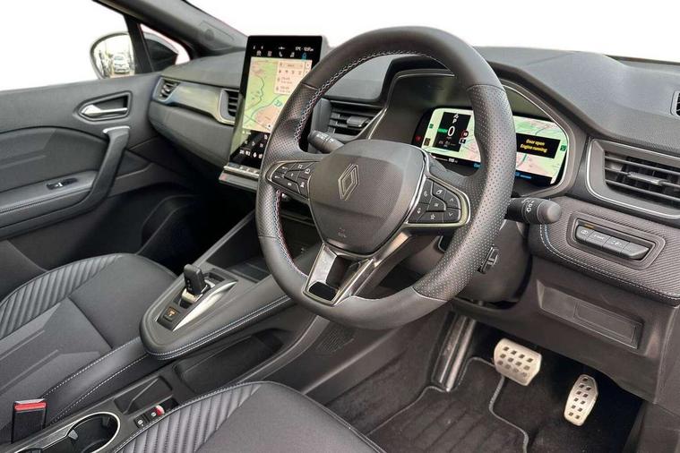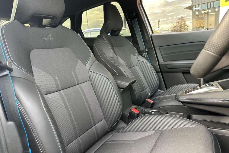 10.25" digital driver display, 10.4" OpenR link touchscreen with with built in Google Automotive Services and navigation, 2 front USB-C ports, 2 rear USB-C ports, Active driver assist including intelligent contextual adaptive cruise control + lane centering, Blind spot recognition and rear detection, Driver attention alert system, Driver drowsiness alert system, e-Call automatic emergency assist, Emergency lane keep assist including solid line, oncoming traffic and road edge detection, Engine start button, Front and rear parking distance sensors, Intelligent speed assistance include traffic sign recognition with speed alert, Lane departure warning system, Multisense with 4 driving modes and upto 48 ambient lighting colours, Navigation system with built in google maps, Outside temperature display, Performance mode selector - multisense 4 driving modes (sport, comfort, perso and eco), Power assisted steering, QR code fireman access for technical information, Rear cross traffic alert with rear active emergency braking system, Rear view camera, Safe stopping distance warning, Service interval indicator, Side parking sensors, Trip computer, Voice control for navigation system with built in google assistant, Wifi smartphone integration compatible with Apple CarPlay and Android Auto, Wireless phone charger, Speed limiter 111mph, 6 speakers inc 2 boomer + 2 tweeter + 2 bicone, DAB radio with Bluetooth, 2 reversing lights, Auto dimming rear view mirror with light and rain sensor - frameless, Automatic front wipers with rain sensors, Automatic headlights, Automatic high/low beam, Body colour door handles, Body coloured bumpers, Body coloured door mirrors, Chrome around front air deflectors, on front wing deco element and window lining, Dark tinted glass in rear windows and tailgate, Diamond black contrasting roof, Drivers one touch window with anti-pinch feature, Electrically folding door mirrors, Flush and longitudinal roof bars, Front and rear electric windows, Full LED front and signature rear lights, Gloss black window frame, Heated door mirrors, Heated rear windscreen, LED daytime running lights, LED high level brake lights, LED rear fog lights, LED turn indicators on door mirrors, Matt grey F1 blade, Radiator grille with 3D graphic black upper part with body tone graphics, Rear side wing doors, Rear wiper, Shark fin antenna, 12v power outlet - front, 2 front roof LED lights and central rear roof light with 3 reading LED lights, 3 bench rear seats in 2nd row, Aluminium sports pedals, Automatic air conditioning with one touch demist function and air quality regulator, Driver and front passenger seat with electric height adjustment, Esprit alpine interior styling, Flying console with central storage, sliding armrest and 2 rear air vents, Front head restraints, Glovebox, Heated front seats, Heated steering wheel, Heating system with pollen filter, Height/reach adjust steering wheel, ISOFIX child seat fixing points on rear outermost seats, Jacquard Madama fabric upholstery, Modular boot floor, Multifunctional steering wheel, Rear head restraints, Rear seats - 1/3:2/3 foldable sliding bench, Single front passenger seat, Sunvisor with mirror and light, Synthetic leather steering wheel, 3 rear seatbelts, ABS+EBA, Active emergency braking system - Urban, pedestrian/cyclist with junction function, Blue trim seatbelts on front seats and outermost rear, Collision avoidance braking, Distance warning alert, Driver and front passenger airbags, Driver and front passenger and 3 rear passengers seatbelt reminder, Driver height adjustable seat belt, Electric parking brake with auto hold function, Electronic stability control, Front dash warning indicator in case of heavy braking, Front driver and passenger side airbag deactivation, Hill start assist, My safety shield - ability to personalise ADAS features at press of a button, Occupant safe exit, Outer rear safety seat belts, Passenger airbag deactivation system, Rear door and window child locking function for rear door, Side airbags, Tyre pressure warning light, Vehicle sound for pedestrians, Alarm, Hands free keycard with Keyless access and start, Immobiliser, Locking fuel cap, Locking wheel nuts, RAID (Renault Anti-Intruder Device) automatic door locking, Remote central locking, Superlocking, Black soft touch dashboard, Brushed blue decorative upper strip, Lower textile strip on dashboard with red, white and blue flag, 19" esprit Alpine Elixir alloy wheels,