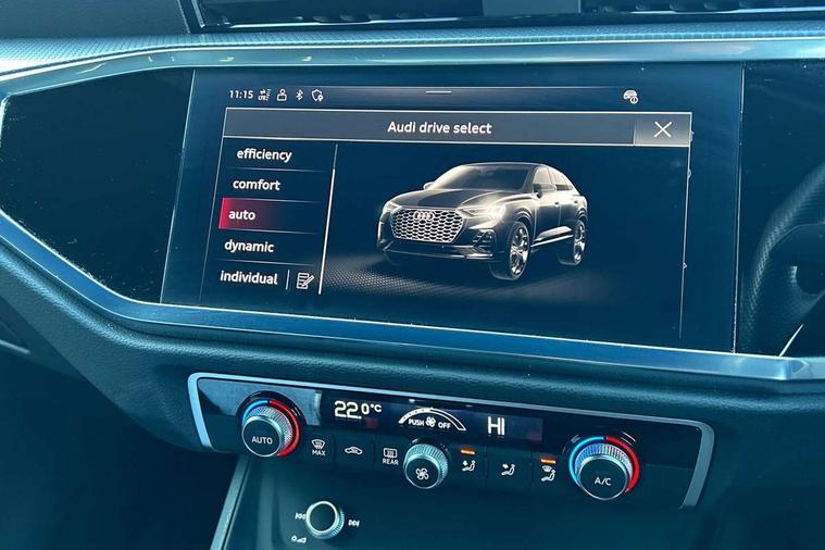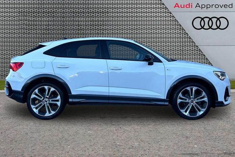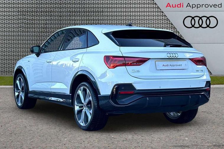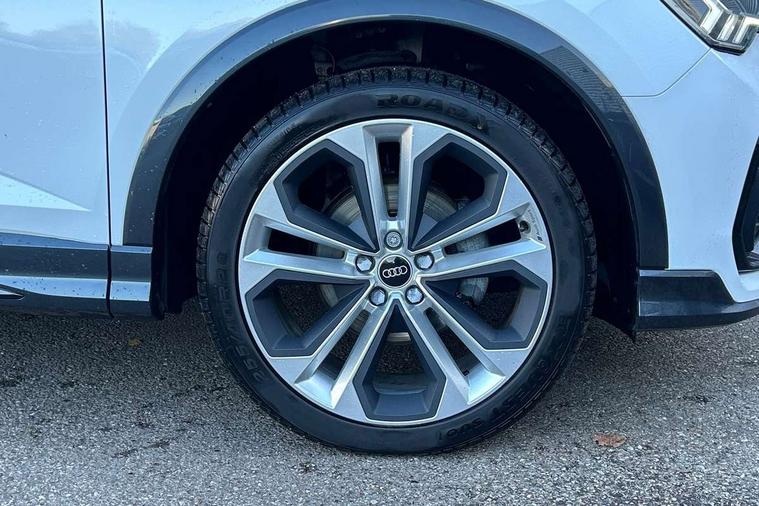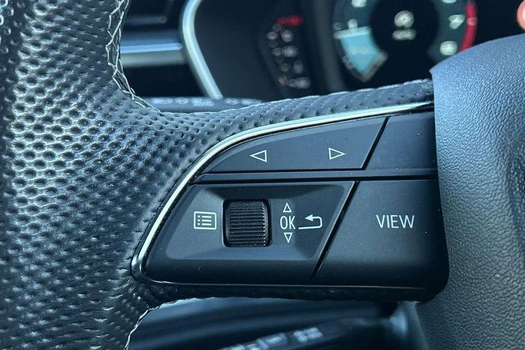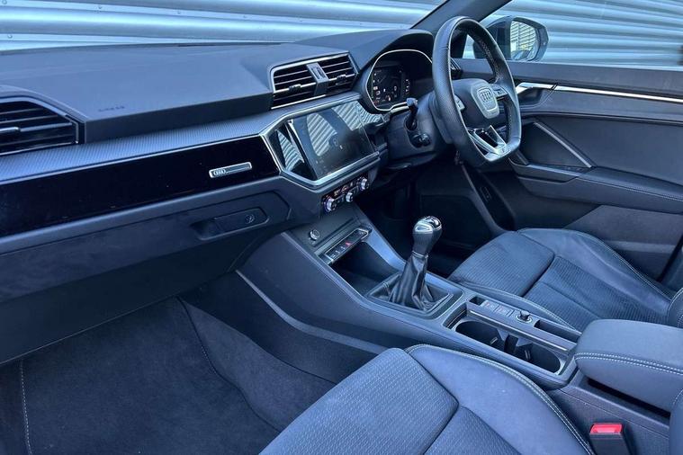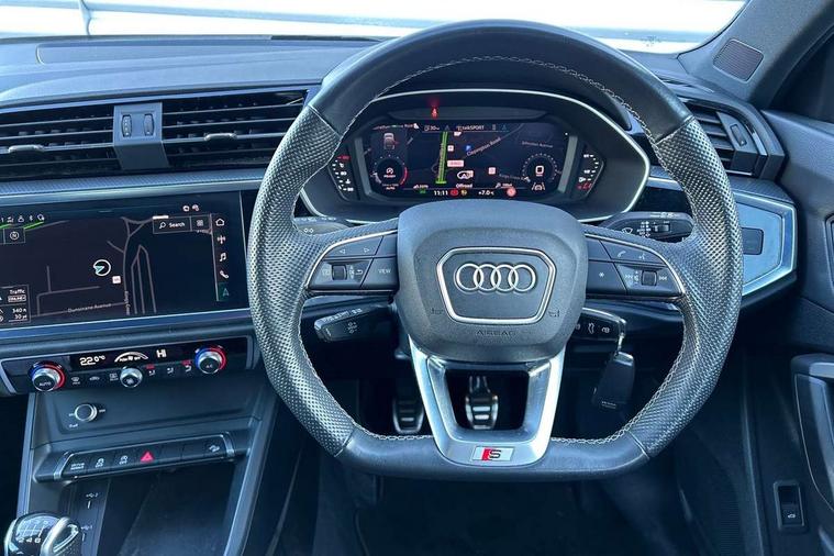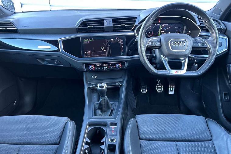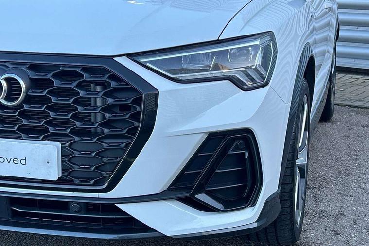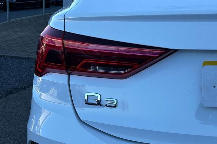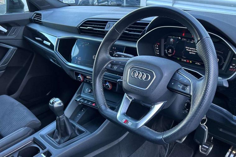 Amazon alexa Integration, Audi drive select, Audi lane departure warning, Audi Virtual Cockpit - 10.25" display, Bluetooth interface, Camera based traffic sign recognition, Cruise control + speed limiter, Legal emergency call, MMI Navigation Plus with high resolution 10.1 inch touchscreen colour display, Power operated tailgate, Progressive steering, Rear parking sensors, Service interval indicator, Smartphone interface includes wireless Apple carplay/Android Auto, Start stop system with recuperation, Voice control system with natural language interaction, Sports suspension, 2 USB-C ports with charge and data functions, 6 passive loudspeakers, DAB digital radio module, Acoustic windscreen, Auto dimming frameless rear view mirror, Black roof rails, Electrically folding, adjustable and heated door mirrors with integrated LED side indicators and kerb view function for passenger side, Front and rear electric windows, Front fog lights, Grille vertical bars in aluminium silver/Matt, High gloss black finish B and C pillars, LED Dynamic rear indicators, LED headlights with LED daytime running lights, LED rear lights, LED third brake light, Privacy glass dark tinted rear and rear-side windows (from B-pillar backwards), Rain and light sensors, Rear diffuser grille in grained matt black, Rear diffuser strip in matt anthracite black, Rear side wing doors, Rear wiper, S line bumpers in contrasting Manhattan grey, Variable front intermittent wipers, 12V socket in rear centre console, 3 seat bench in 2nd row, 3 spoke flat bottomed multi-function leather sport steering wheel, 40:20:40 folding with manual adjustment for 60:40 forwards/backwards position and backrest angle, Adjustable rear seat bench/backrest with centre armrest and cupholder, Black cloth headlining, Dual zone electronic climate control, Front and rear black floor mats with contrast stitching in rock grey, Front and rear headrests, Front and rear roof module including reading lights, Front centre armrest, Glove compartment lighting, Height and reach adjustable steering wheel, Illuminated door sill trims with S logo, ISOFIX child seat mounting for front passenger with airbag deactivation and outer rear seat including top tether attachment point for outer rear seats, Luggage compartment light, Manual front seats with height adjustment, Perforated leather gearknob, Single front passenger seat, Stainless steel luggage compartment sill finisher, Stainless steel pedals, Ambient lighting pack - Q3, Black styling pack - Q3, Non smoking pack - Q3, 3x3 point rear seatbelts, 6 airbags - Driver, front passenger, curtain and side windows, Audi pre-sense front with pedestrain and cyclist recognition, Electrically operated child locks on rear doors, Electromechanical parking brake, Electronic stabilisation control including ABS, ASR and EDL, Front seatbelt reminder, Hill descent control, Hill hold assist, Pre sense basic, Seatbelt monitoring, Tyre pressure warning, Warning triangle and first aid kit, Anti theft alarm, Anti theft wheel bolts, Immobiliser, Remote central locking, Aluminium look interior elements, Detail dashboard around MMI touch colour display in glass look, black with surround in aluminium look, Leatherette door armrest, Piano black inlay, 19" 5 twin arm design diamond cut audi sport alloy wheels in matt grey look,
