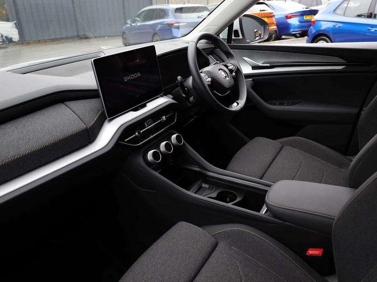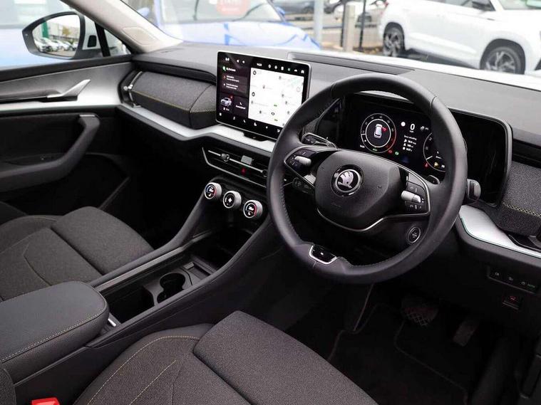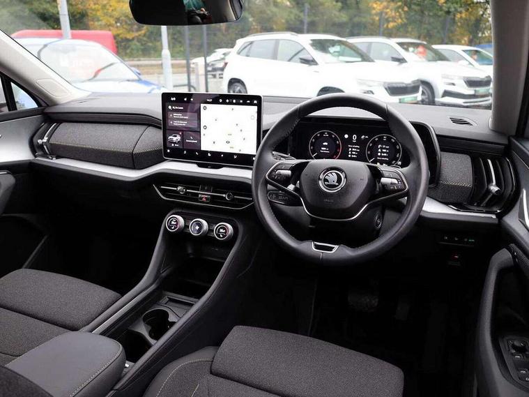 13" satellite navigation touchscreen display, Blind spot detection with door exit warning, Bluetooth system, ChatGPT functionality, Drive mode selector, Driver alert with fatigue sensor, Driver drowsiness alert system, Dry display cleaner, e call+, Front and rear parking sensors, Front cross traffic assist, Lane assist, PAS, Rear traffic assist, Rear view camera, Tailgate unlocking from outside, Traffic sign recognition, USB C Port x 2 in front centre console, Virtual Cockpit - 10.25" digital display, Voice control system, Wireless charging for two smartphones (15W) with cooling function, Wireless SmartLink for Apple CarPlay and Android Auto, Stop/start function, 2x USB-C in the rear, DAB Digital radio, Aero front windscreen wipers with intermittent function, All weather light, Auto dimming rear view mirror, Black wheel arch surrounds, Body colour bumpers, Body colour door mirrors and handles, Cornering light and poor weather light, Electric folding /adjustable/separted heated/folding door mirrors, auto dimming with boarding sports and memory function, Electric front and rear windows, Heat insulating glass in windshield, Heated rear window, Ice scraper in fuel tank cap, Invisible tailpipe, LED daytime running lights, LED rear fog light, LED third brake light in rear spoiler, Light assistant with automatic headlight control and coming home feature, Logo projection in door mirrors, Rear side wing doors, Rear spoiler, Rear window wiper, Safety reflectors on front and rear doors, Window control switches with black trim, Windscreen wipers with rain sensor, Without engine designation, 1.5l bottle holder points in all door, 12V socket in boot, 1x centre rear reading light, 2 seat bench in 3rd row, 3 configurable smart dials with 32mm coloured display, 3 seat bench in 2nd row, 4 foldable roof handles with rear coat hooks, Ambient interior lighting - Dashboard, front-door stowage compartments, front and rear door panels and footwell lighting, Automatic gear selector on steering wheel, Chrome interior door handles, Driver/front passenger reading lights, Fabric headlining, Fixed bench 40:60:40 split folding backrests, Front and rear floor mats, Front centre armrest with jumbo box storage compartment, cup holder and 12V socket, Front courtesy lights, Height adjustable front headrests, Isofix child seat fittings in outer rear seats and front passenger with top tether, Manually adjustable steering column, Pollen filter, Rear centre armrest with cupholders, Rear seat boot backrest release, Retractable luggage compartment cover, Single front passenger seat, Sliding trunk cover, Small Bags on the inner sides of the front backrests, Storage pocket including mobile phone pockets on the backs of the front seats, Sunvisors with illuminated vanity mirrors, Three rear height adjustable headrests, Ticket holder on A Pillar, Tri zone climate control, Umbrella in door panel x1 made from sustainable materials, Upper and lower glovebox with card holder and coin compartment, USB C port by rear view mirror for charging only (15W), Auto door release and activation of warning lights in the event of an accident, Driver and front passenger airbag with knee airbag and front passenger airbag deactivation, Electric child locks, Electronic parking brake, ESC (incl. ABS+EMD+MSR+ASR+EDL+HBA+DSR+RBS+ESBS+MCB+TSA+XDS), Front assist with braking reaction to vehicles, pedestrians and cyclists, Front disc brakes, Fuel cut off safety device, Height adjustable front 3 point seatbelts + pretensioners, Hill hold control, Junction assist with automatic emergency braking, Rear disc brakes, Safety vest holder in door, Seat belt reminder for all seats, Three point rear seat belts, Two tone horn, Tyre pressure monitor, Alarm with interior monitoring and tilt sensor with safe function, Anti-theft wheel bolts, Immobiliser, Remote central locking with 2 keys, Black decorative trims, Breakdown kit,
