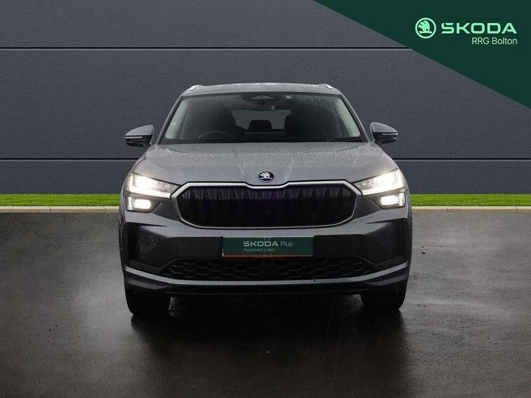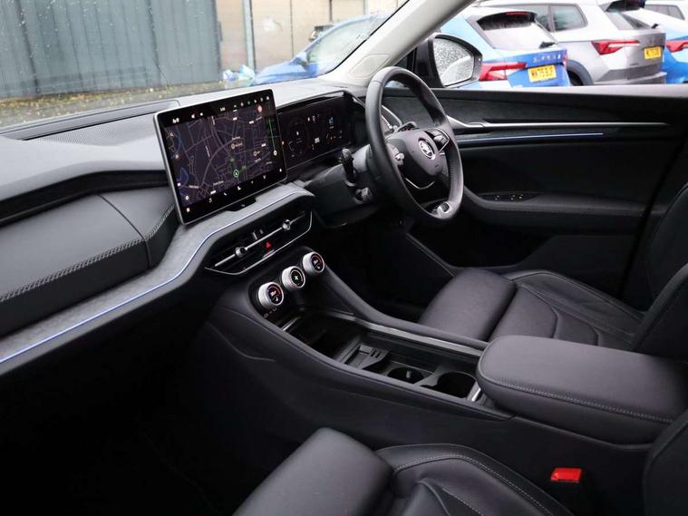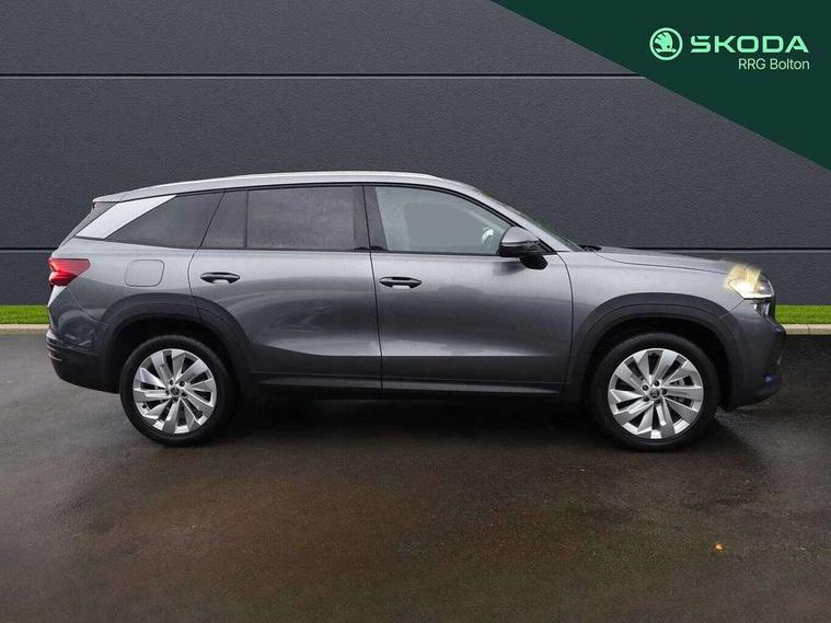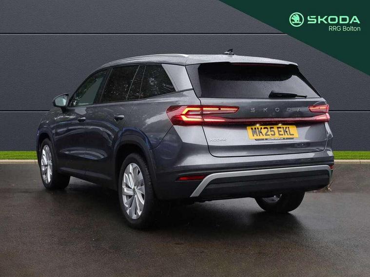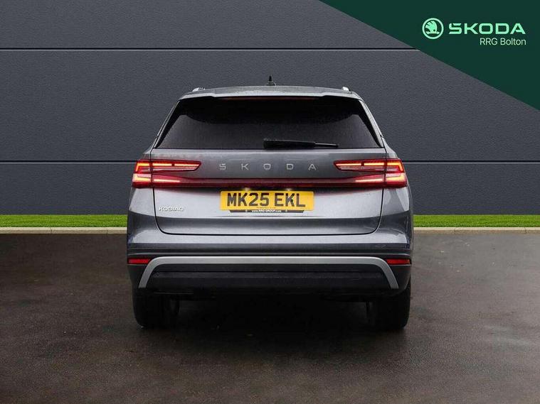 13" satellite navigation touchscreen display, Blind spot detection with door exit warning, Bluetooth system, ChatGPT functionality, Driver alert - Fatigue and drowsiness monitor, Dry display cleaner, Emergency call, Front and rear parking sensors, Front cross traffic assist, Lane assist, PAS, Rear traffic assist, Tailgate unlocking from outside, Traffic sign recognition, USB C Port x 2 in front centre console, Virtual Cockpit - 10.25" digital display, Voice control system, Wireless charging for two smartphones (15W) with cooling function, Wireless SmartLink for Apple CarPlay and Android Auto, Stop/start function, 2x USB-C in the rear, DAB Digital radio, Aero front windscreen wipers with intermittent function, Auto dimming rear view mirror, AWL (all weather lighting) and all weather light with cornering function, Black wheel arch surrounds, Body colour bumpers, Body colour door mirrors and handles, Cornering light and poor weather light, Electric folding /adjustable/separted heated/folding door mirrors, auto dimming with boarding sports and memory function, Electric front and rear windows, Exterior black decorative trims, Heat insulating glass in windshield, Heated rear window, Ice scraper in fuel tank cap, Invisible tailpipe, LED daytime running lights, LED third brake light in rear spoiler, Light assistant with automatic headlight control and coming home feature, Logo projection in door mirrors, Privacy glass, Rear roof spoiler, Rear side wing doors, Rear window wiper, Red decorative strip between rear LED lights, Safety reflectors on front and rear doors, Unique dark chrome design logo on alloy wheels, Window control switches with black trim, Windscreen wipers with rain sensor, Without engine designation, 1.5l bottle holder points in all door, 1x centre rear reading light, 2 seat bench in 3rd row, 3 configurable smart dials with 32mm coloured display, 3 seat bench in 2nd row, 4 foldable roof handles with rear coat hooks, Ambient interior lighting - Dashboard, front-door stowage compartments, front and rear door panels and footwell lighting, Automatic gear selector on steering column, Chrome interior door handles, Driver/front passenger reading lights, Fabric headlining, Fixed bench 40:60:40 split folding backrests, Front and rear floor mats, Front centre armrest with jumbo box storage compartment, cup holder and 12V socket, Height adjustable front headrests, Isofix child seat fittings in outer middle row rear seats and front passenger with top tether, Manually adjustable steering column, Pollen filter, Rear centre armrest with cupholders, Rear seat boot backrest release, Single front passenger seat, Skoda lettering on steering wheel, Storage pocket including mobile phone pockets on the backs of the front seats, Sunvisors with illuminated vanity mirrors, Three rear height adjustable headrests, Ticket holder on A Pillar, Tri zone climate control, Umbrella in door panel x1 made from sustainable materials, Upper and lower glovebox with card holder and coin compartment, USB C port by rear view mirror for charging only (15W), Exterior styling pack - Kodiaq, Auto door release and activation of warning lights in the event of an accident, Driver and front passenger airbag with knee airbag and front passenger airbag deactivation, Electric child locks, Electronic parking brake, ESC (incl. ABS+EMD+MSR+ASR+EDL+HBA+DSR+RBS+ESBS+MCB+TSA+XDS), Front assist with braking reaction to vehicles, pedestrians and cyclists, Front disc brakes, Fuel cut off safety device, Height adjustable front 3 point seatbelts + pretensioners, Hill hold assist, Junction assist with automatic emergency braking, Rear disc brakes, Safety vest holder in door, Seat belt reminder for all seats, Three point rear seat belts, Two tone horn, Tyre pressure monitor, Anti-theft wheel bolts, Immobiliser, Remote central locking with 2 keys,