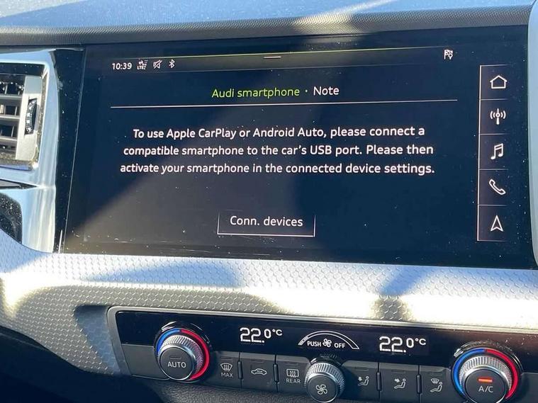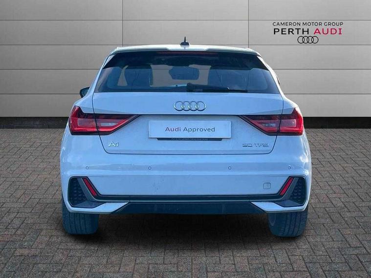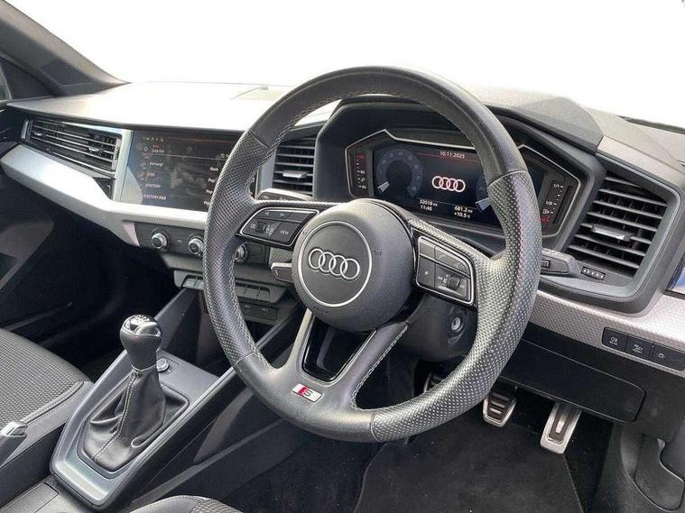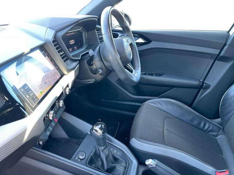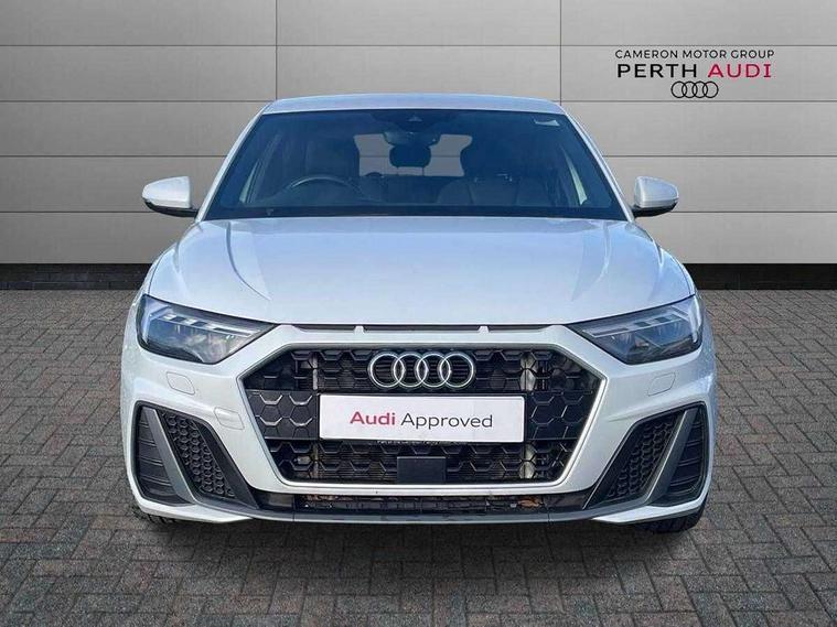 10.25" Digital instrument cluster display screen, Audi connect safety emergency and service including E-call, Audi drive select, Audi smartphone interface, Automatic start/stop system, Bluetooth interface, Driver's information system, Electromechanical power steering, Lane departure warning system, Service interval indicator, Speed limiter, Voice control system, Washer fluid level indicator, Sports suspension, 1 x SDXC card reader, 1 x USB type C and 1 USB type A charging points, Audi music interface, Bluetooth audio streaming, DAB Digital radio, MMI radio plus with 8.8" colour MMI display screen and MMI touch, Auto dimming rear view mirror, Body colour side sill mouldings, Body coloured bumpers, Body coloured door mirrors, Door sills with aluminium inlays and S Line logo, Electric front and rear windows, Front side air inlets in grained matt black and C frame in titanium black, Heat insulating glass windscreen and side windows, Heated rear windscreen, LED headlights with LED rear lights + dynamic rear indicators, Matt aluminium silver tailpipe trim, Matt black radiator grille frame, Matt platinum grey in front spoiler clip and rear diffuser clip, Rain and light sensors, Rear fog lights, Rear wiper, S line badges on front wings, S line exterior bumpers, S line roof spoiler, Side air inlet frames titanium black, Side front spoiler lips in grained matt black, 12V socket in centre console with two cup holders, 3 rear seats, Black cloth headlining, Driver and passenger seat with manual height adjust with forward and backwards adjustment, Front and rear black floor mats with contrast stitching in fine silver, Front head restraints, Height and reach adjustable steering wheel, ISOFIX child seat mounting in front passenger and rear outer seats, Leather gear knob with aluminium trim, Leatherette handbrake grip, Luggage compartment light with front and rear reading lights, Lumbar adjustment for front seats, Rear head restraints, Split folding rear seats, Stainless steel pedals, 3x3 point rear seatbelts, Audi pre-sense front with pedestrain and cyclist recognition, Brake assist function, Driver and front passenger airbag with front side and head airbags, Electronic Stability Control including ABS, EBD, ASR and EDL, Front and rear seatbelt reminder, Front passenger airbag deactivation switch, Hill hold assist, Seatbelt height adjustment for front seats, Seatbelt monitoring, Tyre pressure warning light, Warning triangle and first aid kit, Anti theft alarm, Anti theft wheel bolts and loose wheel warning, Immobiliser, Remote central locking with 2 remote folding keys, Aluminium trim for control switches, air vents and digital instrument cluster, Silver grey inlays polygon structure in diamond paint finish, Structured grey accent areas including air vents, door handle recesses and centre console in quartz paint finish,