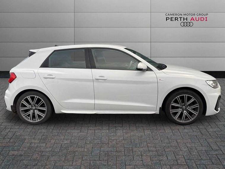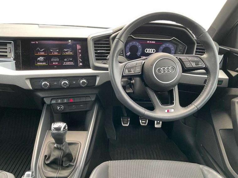 10.25" Digital instrument cluster display classis style instrument dials + speed, odometer, time, outside temperature, telephone menu + fuel level warning, Audi connect safety emergency and service including E-call, Audi drive select - power steering assistance + engine, Audi smartphone interface with connect compatible smartphone via USB directly MMI display + Nav, music, third party apps controlled via MMI controller, Automatic start/stop system, Bluetooth interface, Cruise control, Driver's information system, Electromechanical power steering, Lane departure warning system, Rear parking sensor, Service interval indicator, Speed limiter, Voice control system, Washer fluid level indicator, Sports suspension, 1 x SDXC card reader, 1 x USB type C and 1 USB type A charging points, DAB Digital radio, MMI radio plus with 8.8" colour MMI display screen and MMI touch, Auto dimming rear view mirror, Body coloured door mirrors, Door sills with aluminium inlays and S Line logo, Electric front and rear windows, Electrically adjustable, heated, folding door mirrors with integrated LED side indicator, Front side air inlets in grained matt black and C frame in titanium black, Heat insulating glass windscreen and side windows, Heated rear windscreen, LED headlights with LED rear lights + dynamic rear indicators + headlight adjustment and high beam, turning light + LED daytime running lights, Radiator grille and rear diffuser in matt titanium black, Radiator protective grille frame in matt aluminium silver, Rain and light sensors, Rear fog lights, Rear wiper, S line badges on front wings, Side front spoiler lips in grained matt black, 12V socket in centre console with two cup holders, 3 rear seats with headrests, 40:60 Split folding rear seat or folded fully, Black cloth headlining, Driver and passenger seat with manual height adjust with forward and backwards adjustment, Front and rear black floor mats with contrast stitching in fine silver, Front head restraints, Height and reach adjustable steering wheel, ISOFIX child seat mounting for front passenger and outer rear seats including top tether attachment point of outer rear seats, Leather gear knob with aluminium trim, Luggage compartment light with front and rear reading lights, Manually adjustable lumbar support in front seats, Stainless steel pedals, LED interior lighting pack - A1, Luggage compartment pack - A1, S line exterior styling pack - A1 Sportback, 3x3 point rear seatbelts, Audi pre-sense front with pedestrain and cyclist recognition, Brake assist function, Driver and front passenger airbag with front side and head airbags, Electronic Stability Control including ABS, EBD, ASR and EDL, Front and rear seatbelt reminder, Front passenger airbag deactivation switch, Hill hold assist, Seatbelt height adjustment for front seats, Seatbelt monitoring, Tyre pressure warning light, Warning triangle and first aid kit, Anti theft alarm, Anti theft wheel bolts and loose wheel warning, Immobiliser, Remote central locking with 2 foldaway keys, Aluminium trim for control switches, air vents and digital instrument cluster, Silver grey inlays polygon structure in diamond paint finish, Structured grey accent areas including air vents, door handle recesses and centre console in quartz paint finish,